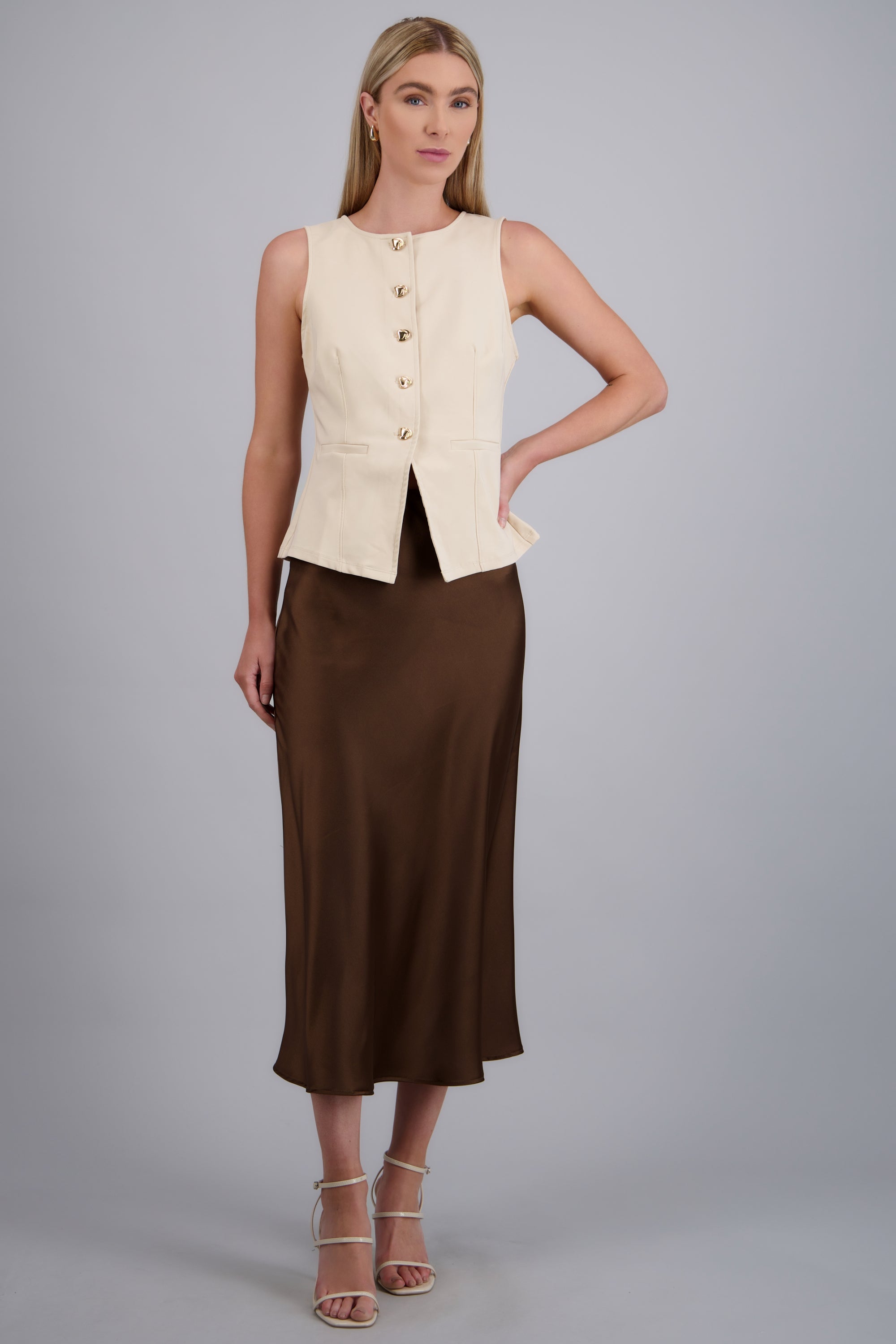 Falda midi satinada lisa