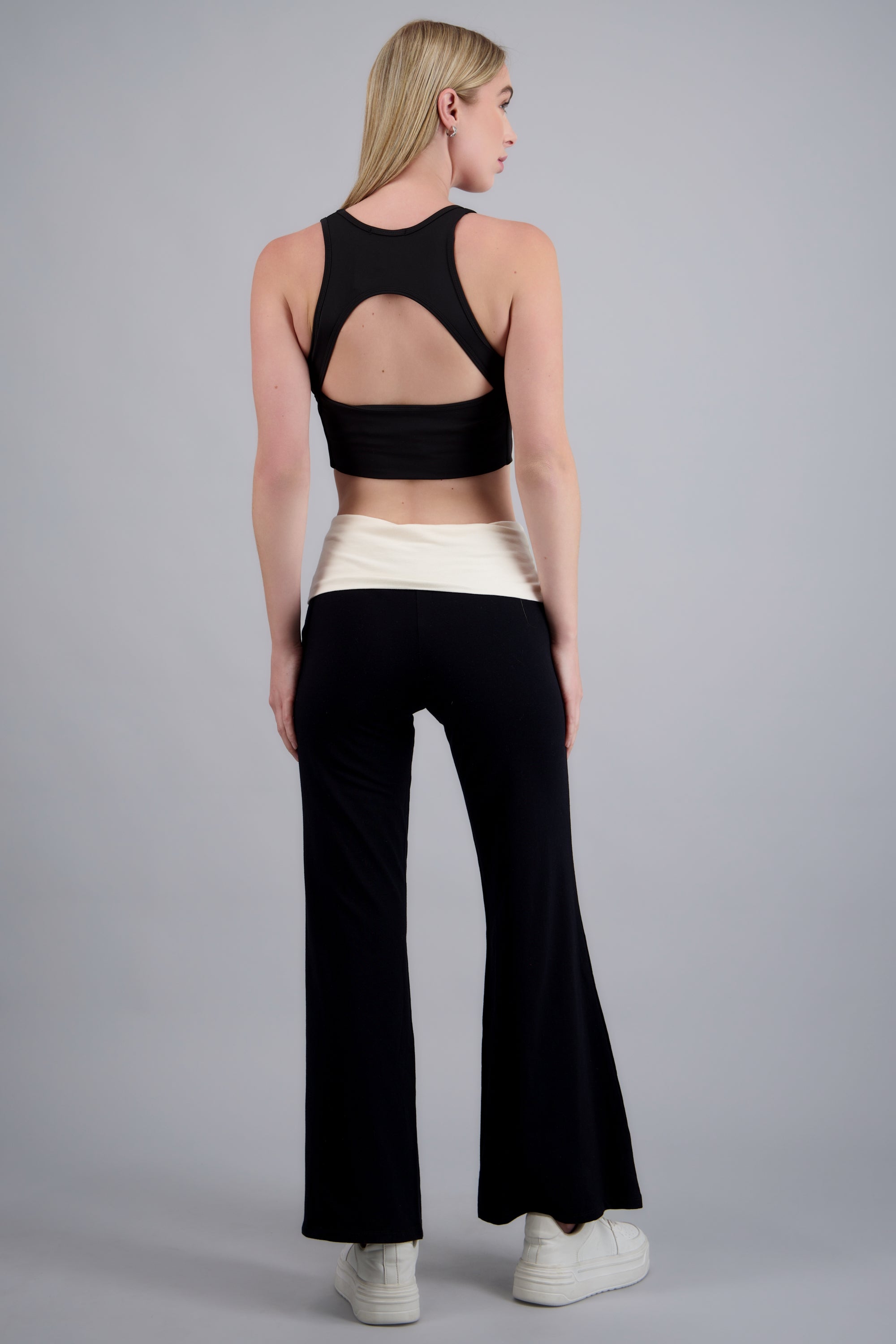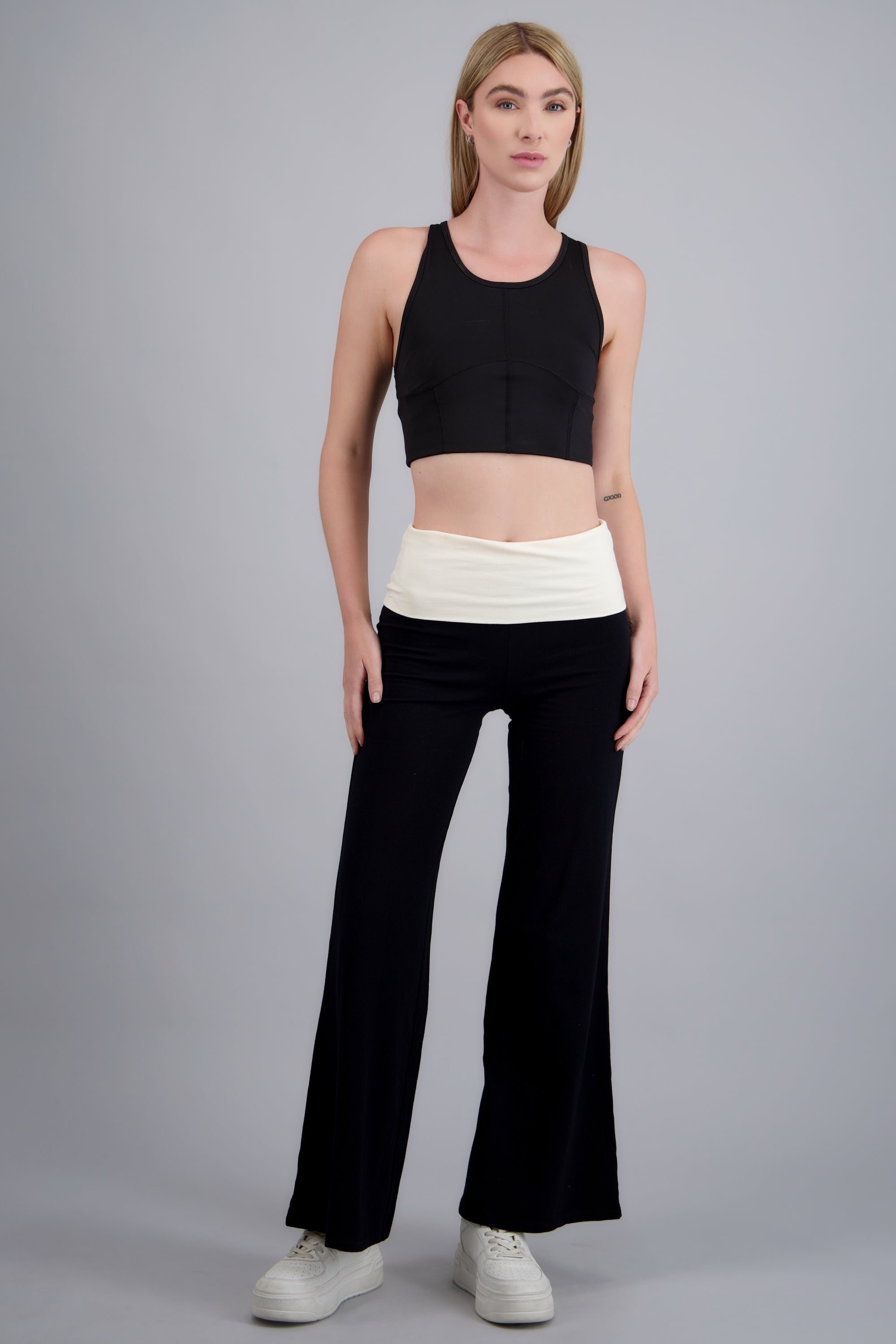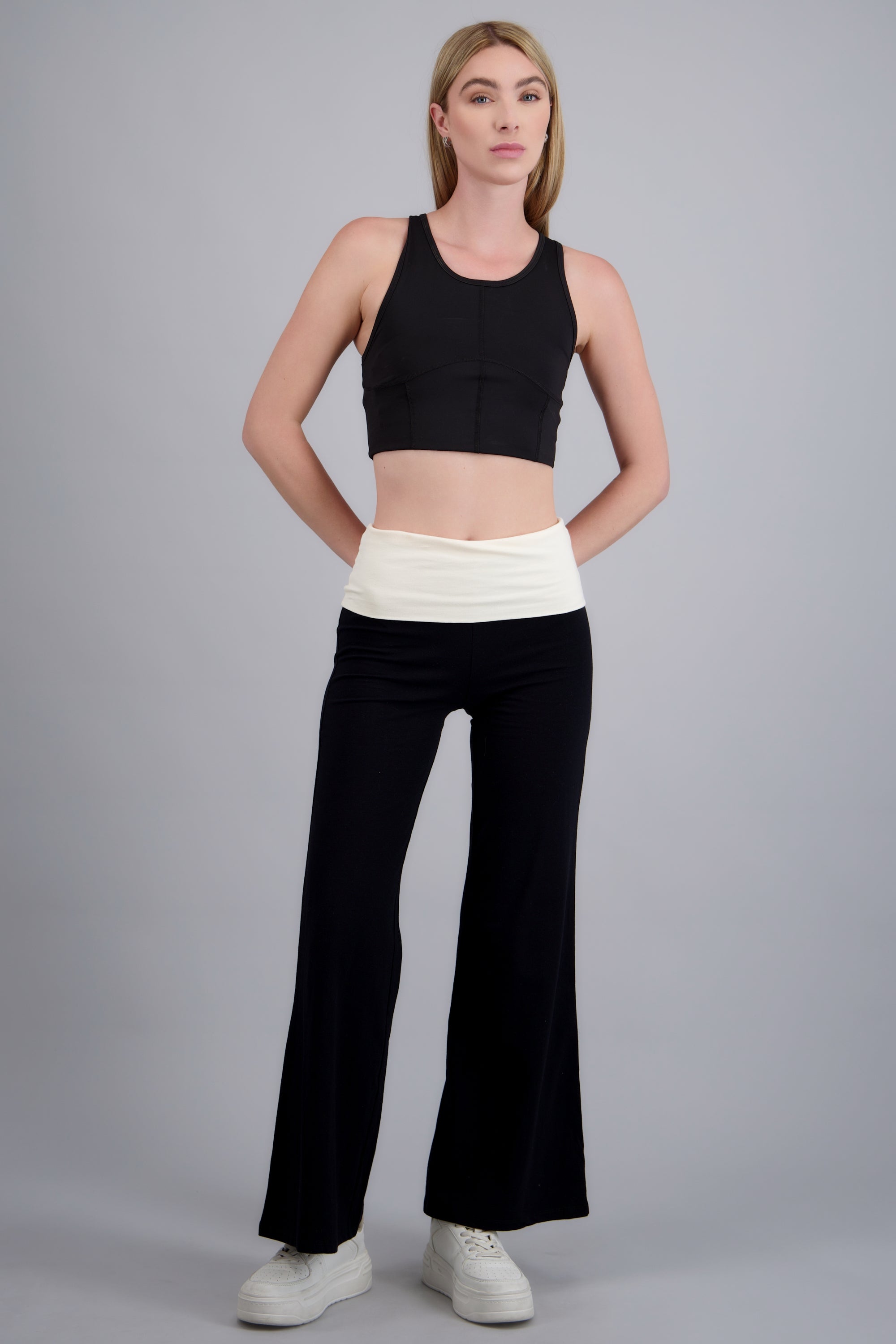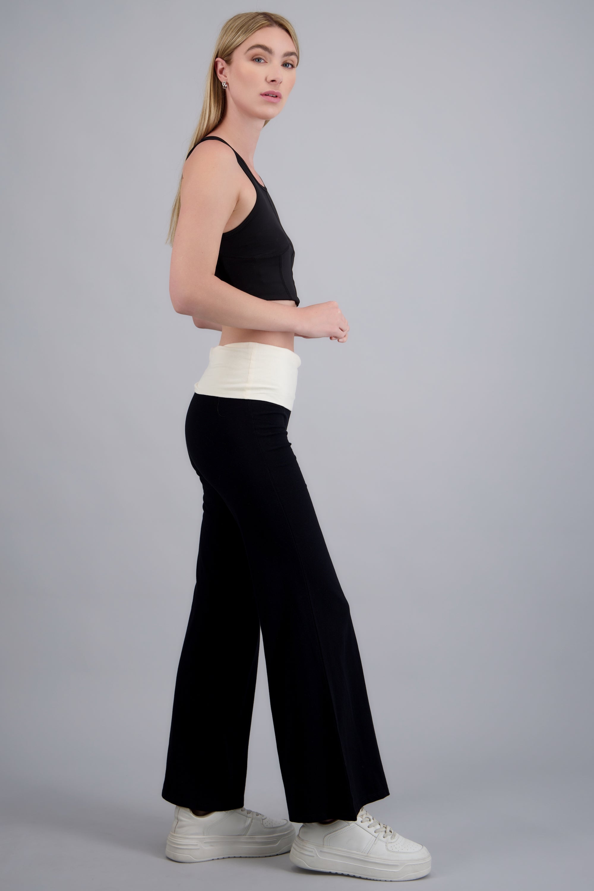Leggings con corte ajustado, detalle de contraste en la pretina. Cintura elástica, sin cierre.