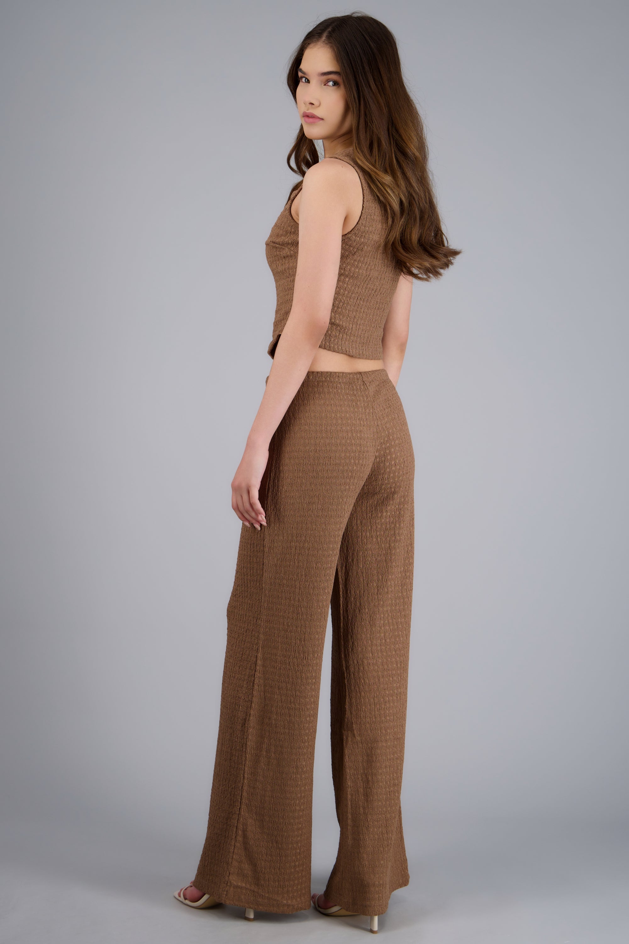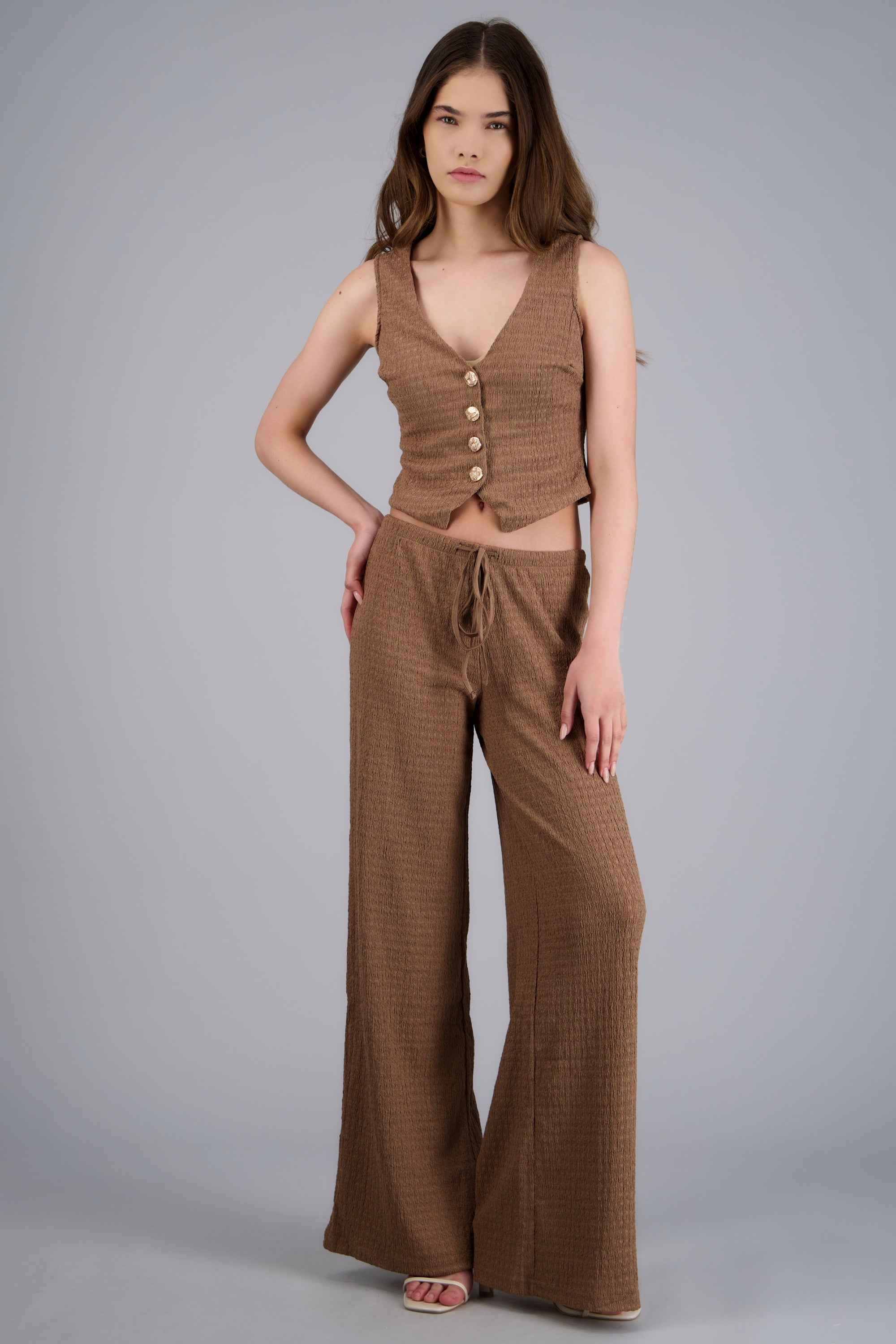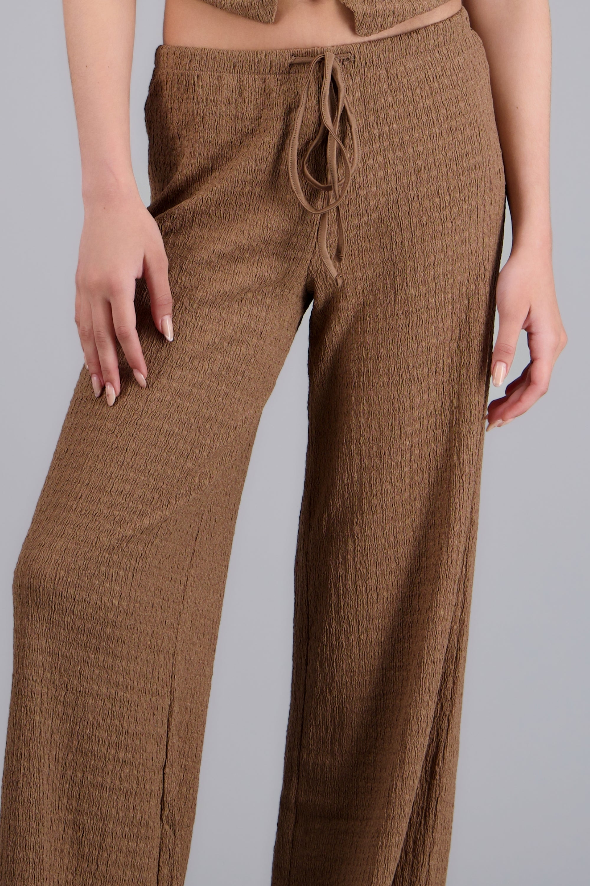 Pantalón con jareta ajustable, corte recto y detalle de textura.