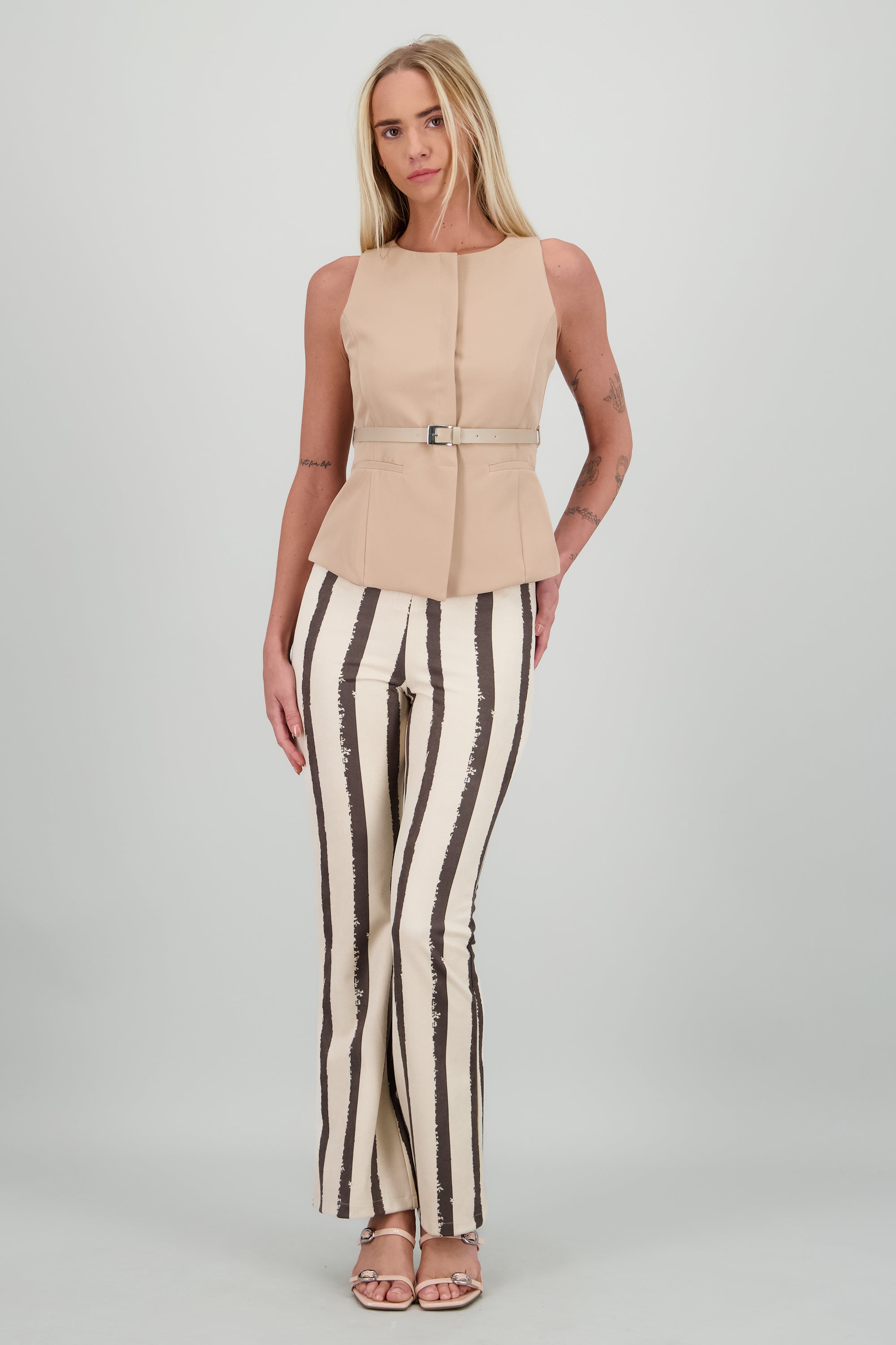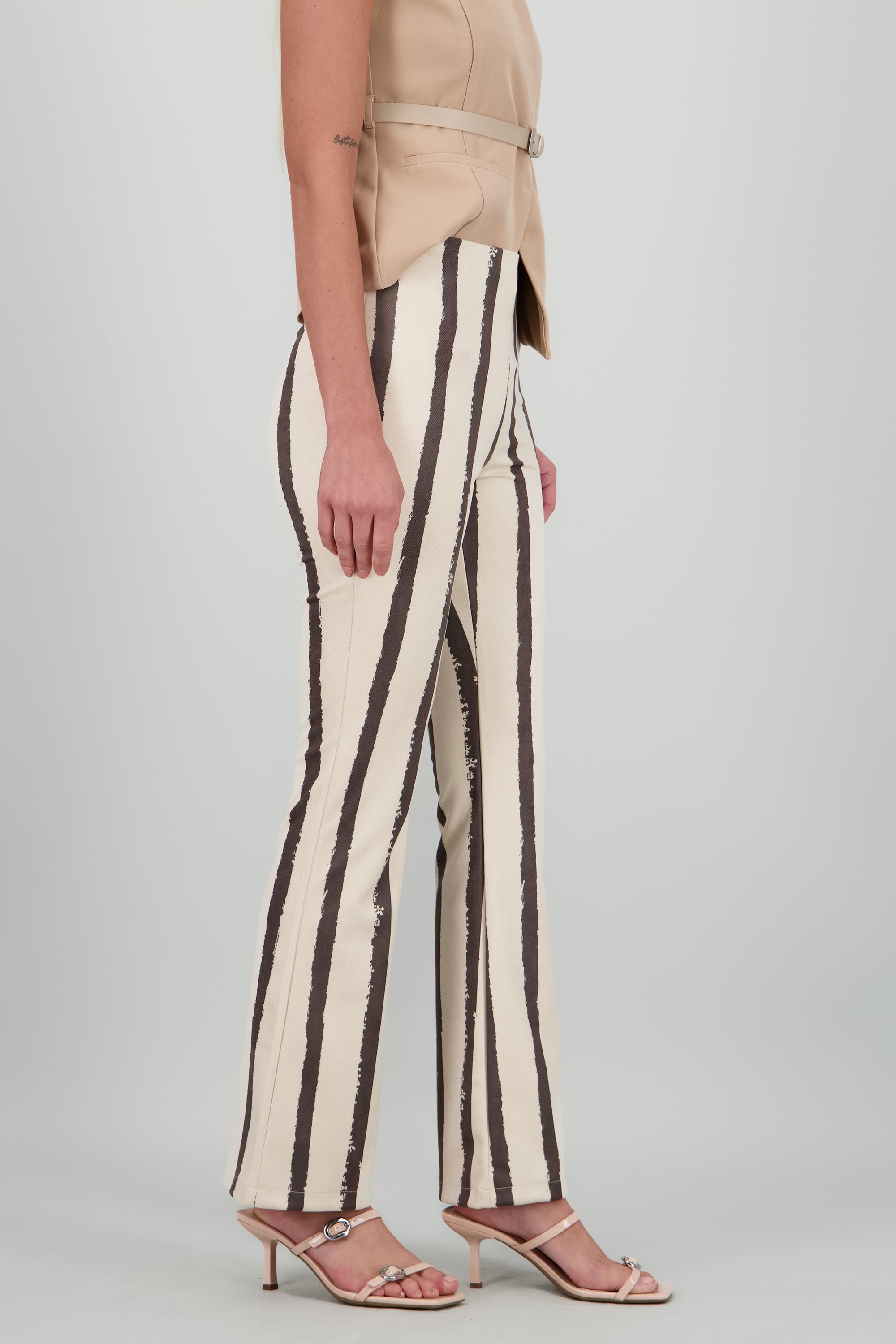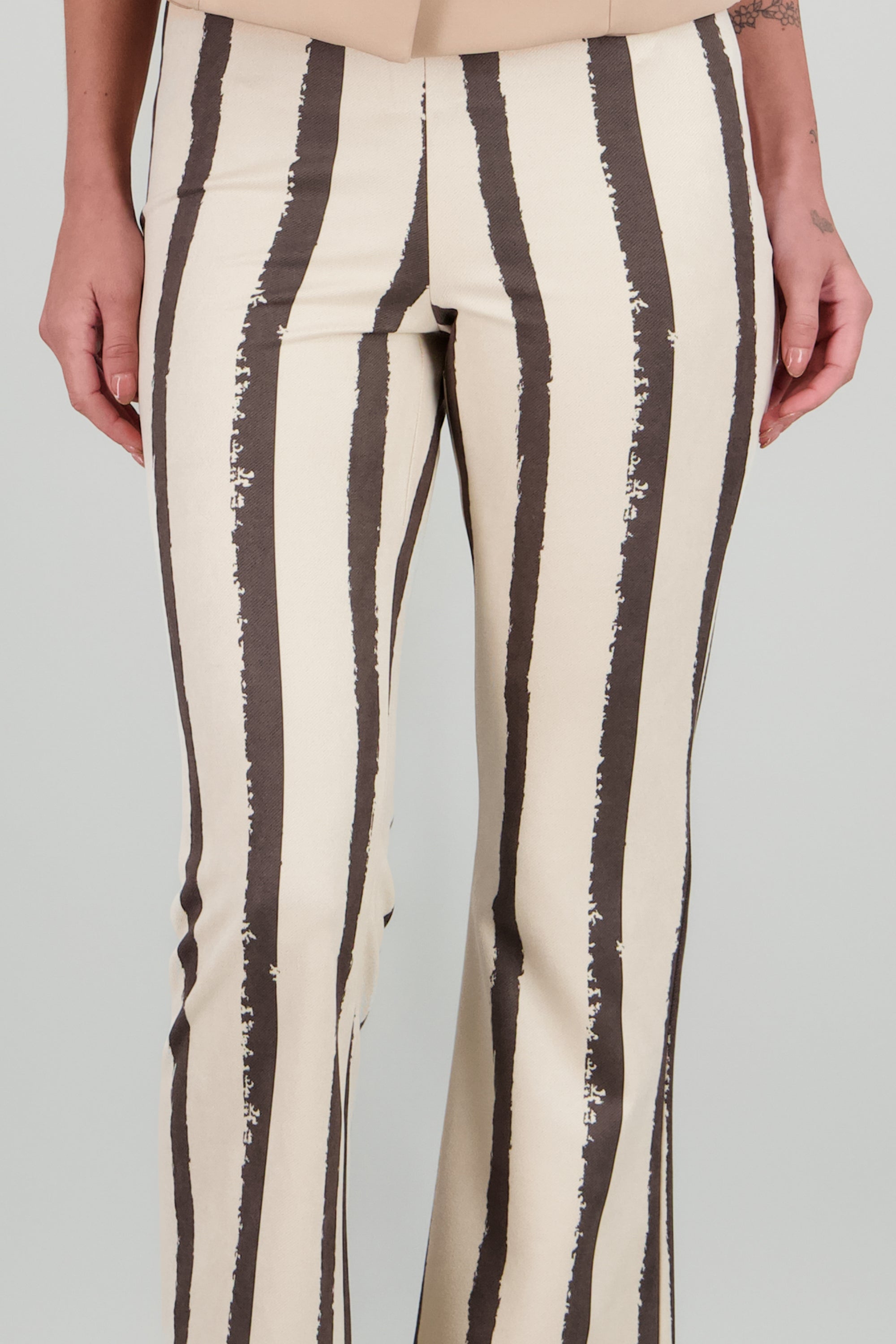 Trousers with a striped print, flared cut, mid-rise and fitted waist.