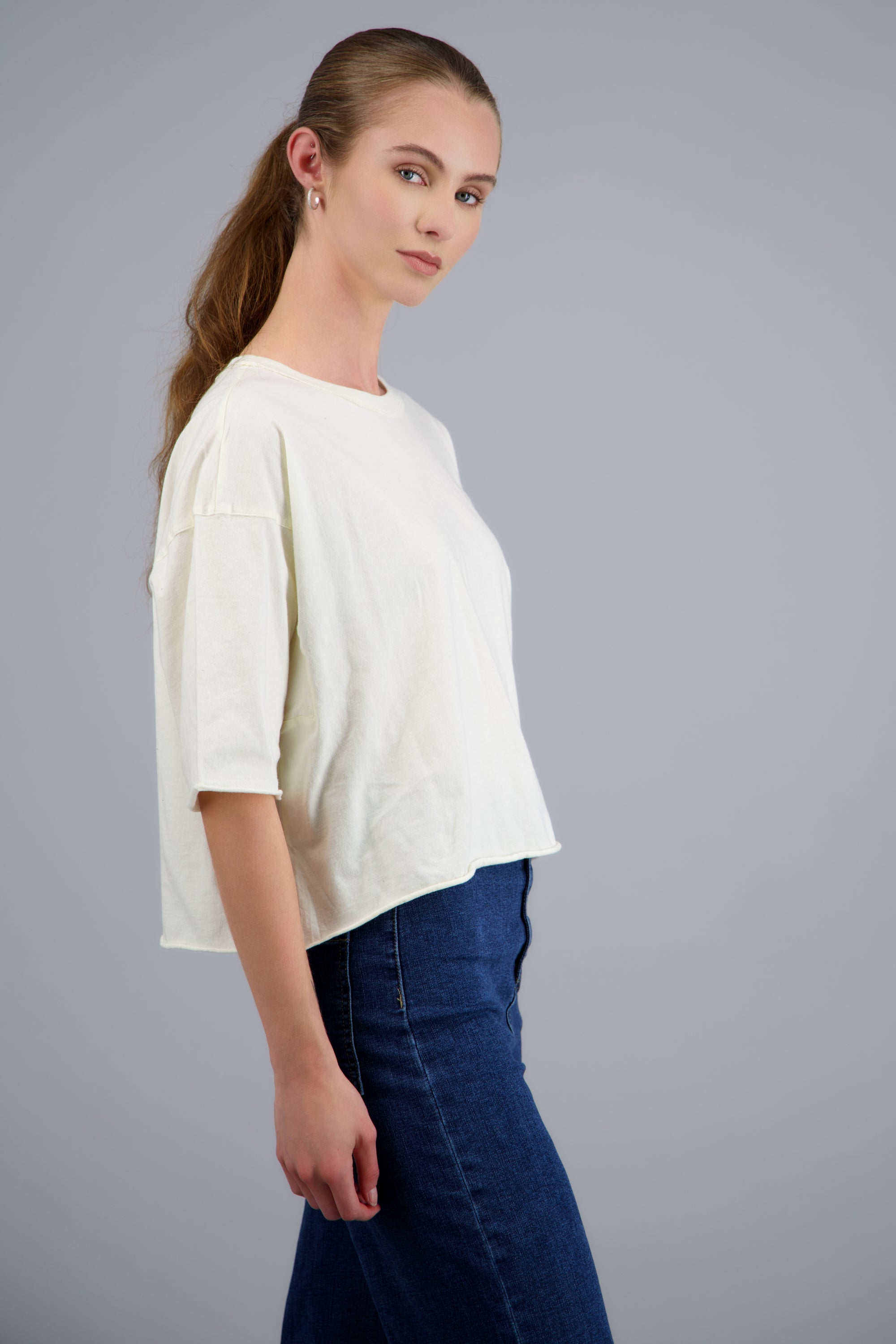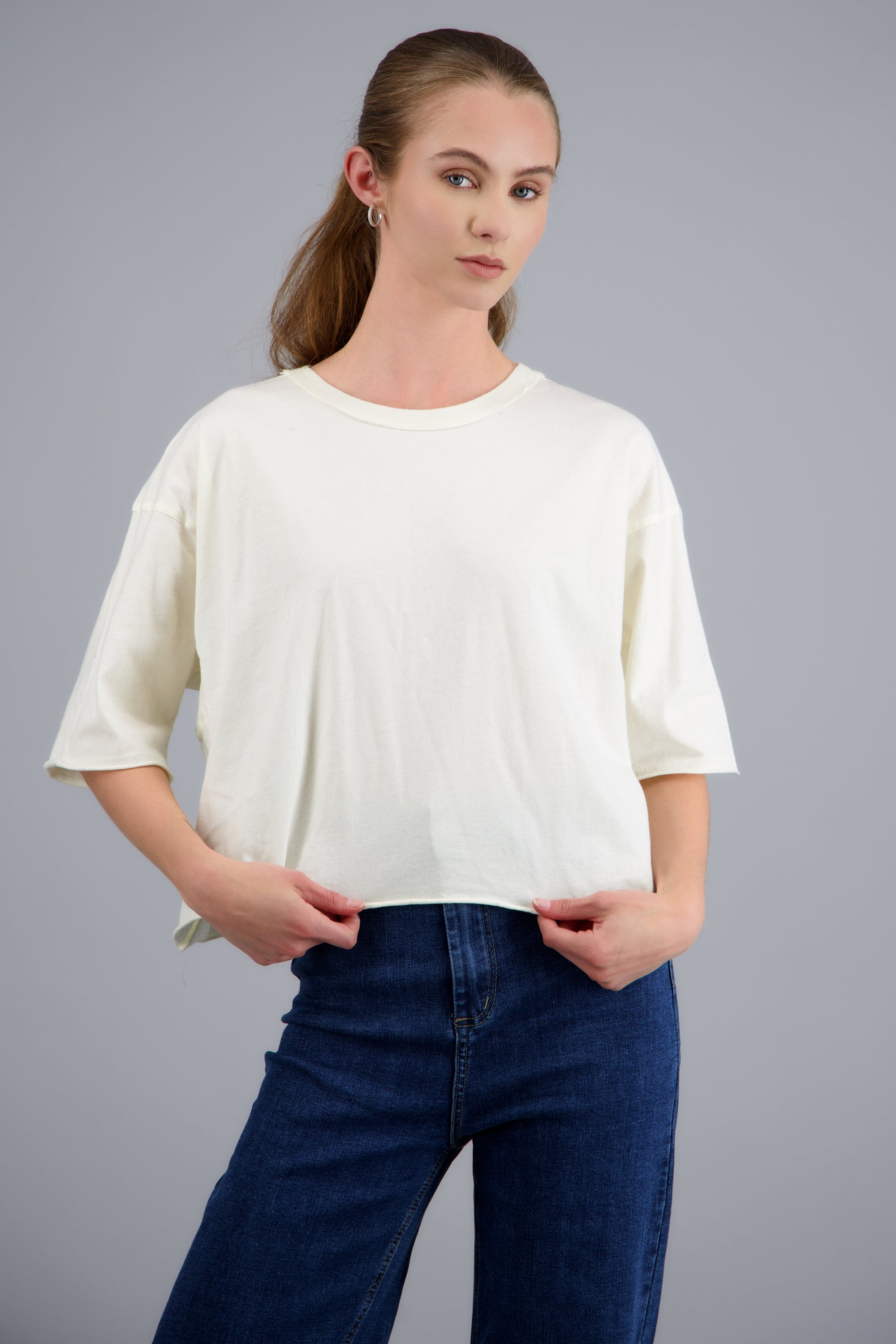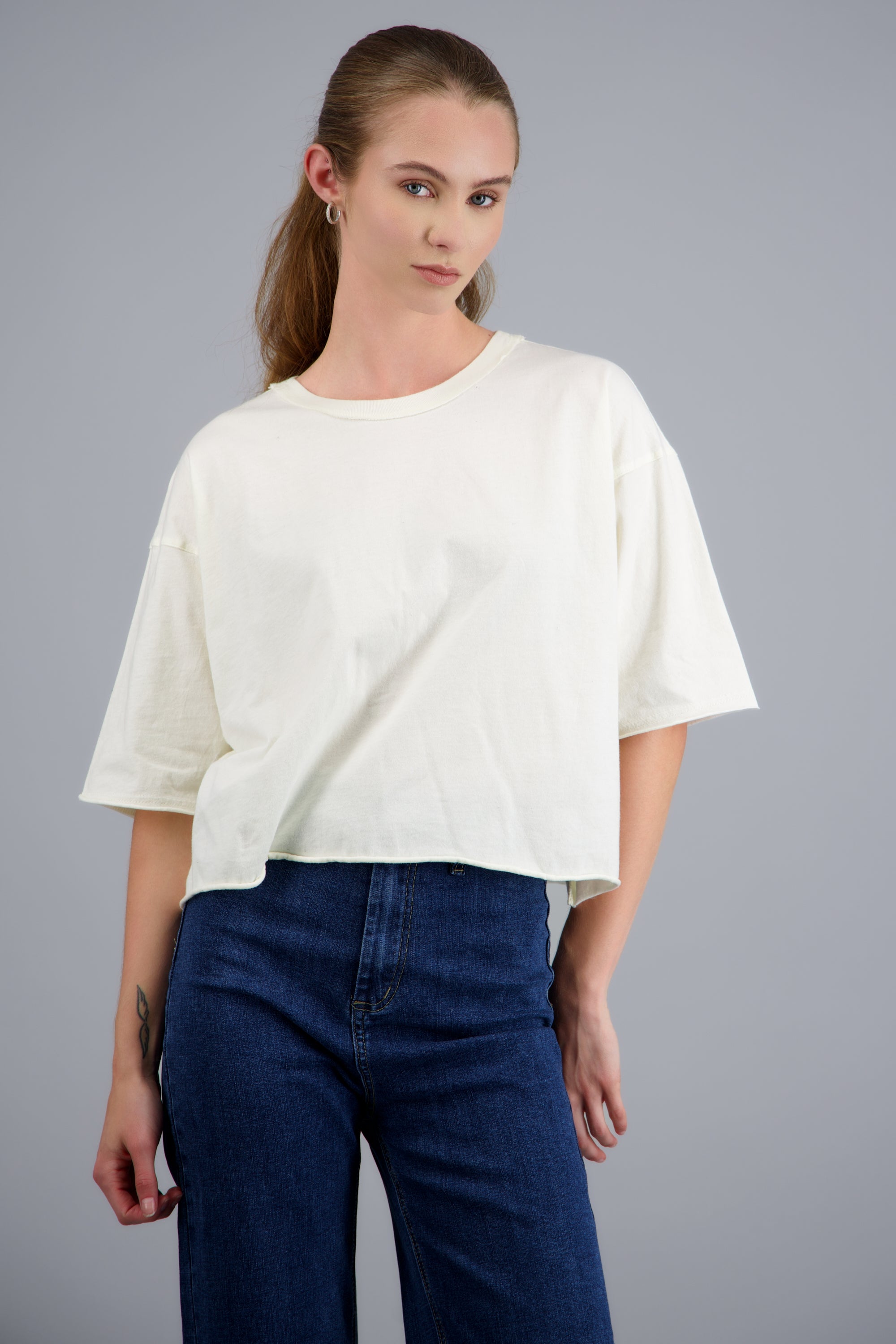 Playera crop de corte recto y manga corta. Diseño minimalista y escote redondo.