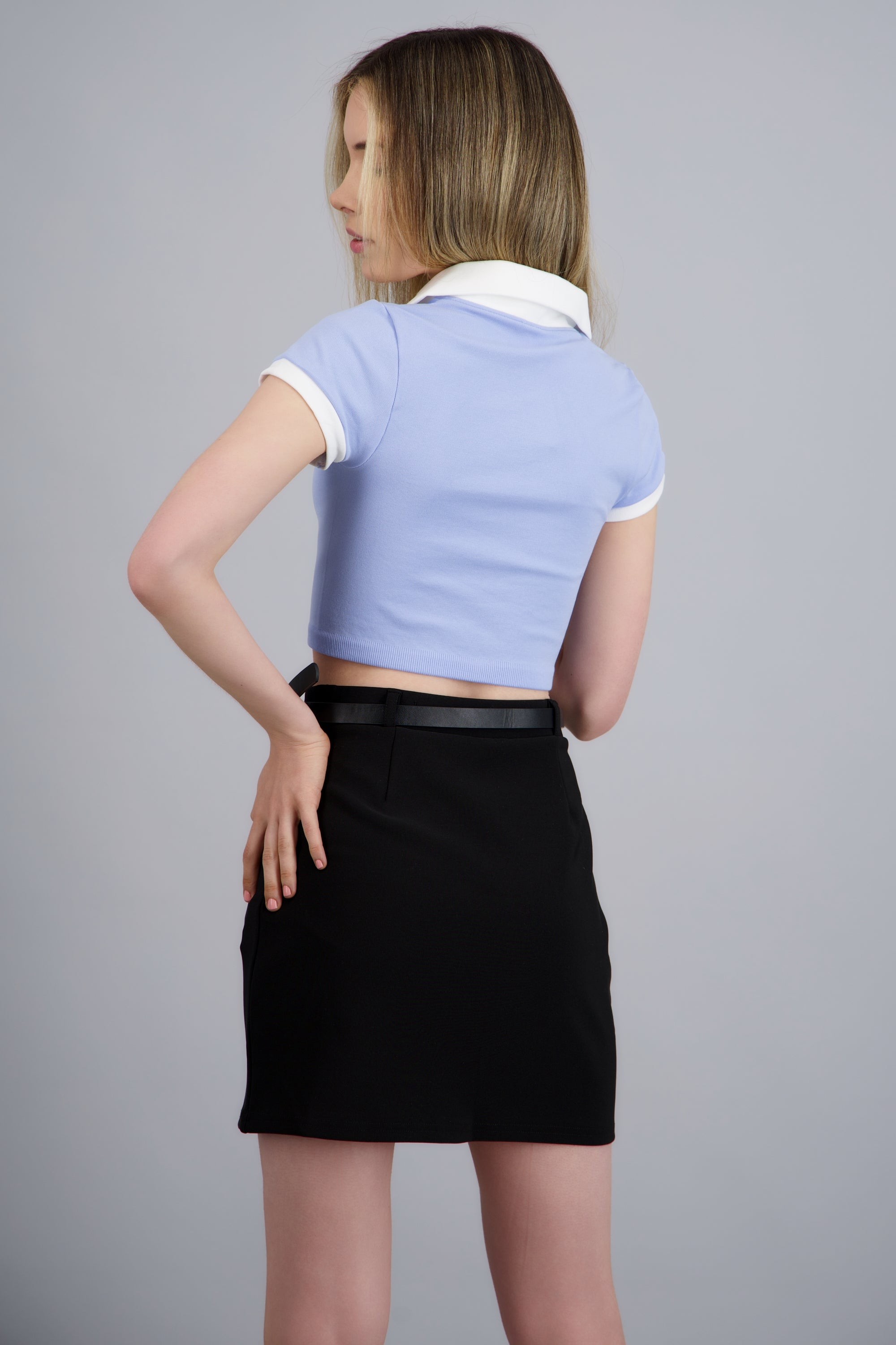 Top polo con detalles en contraste, corte ajustado. Diseño en tejido y manga corta.
