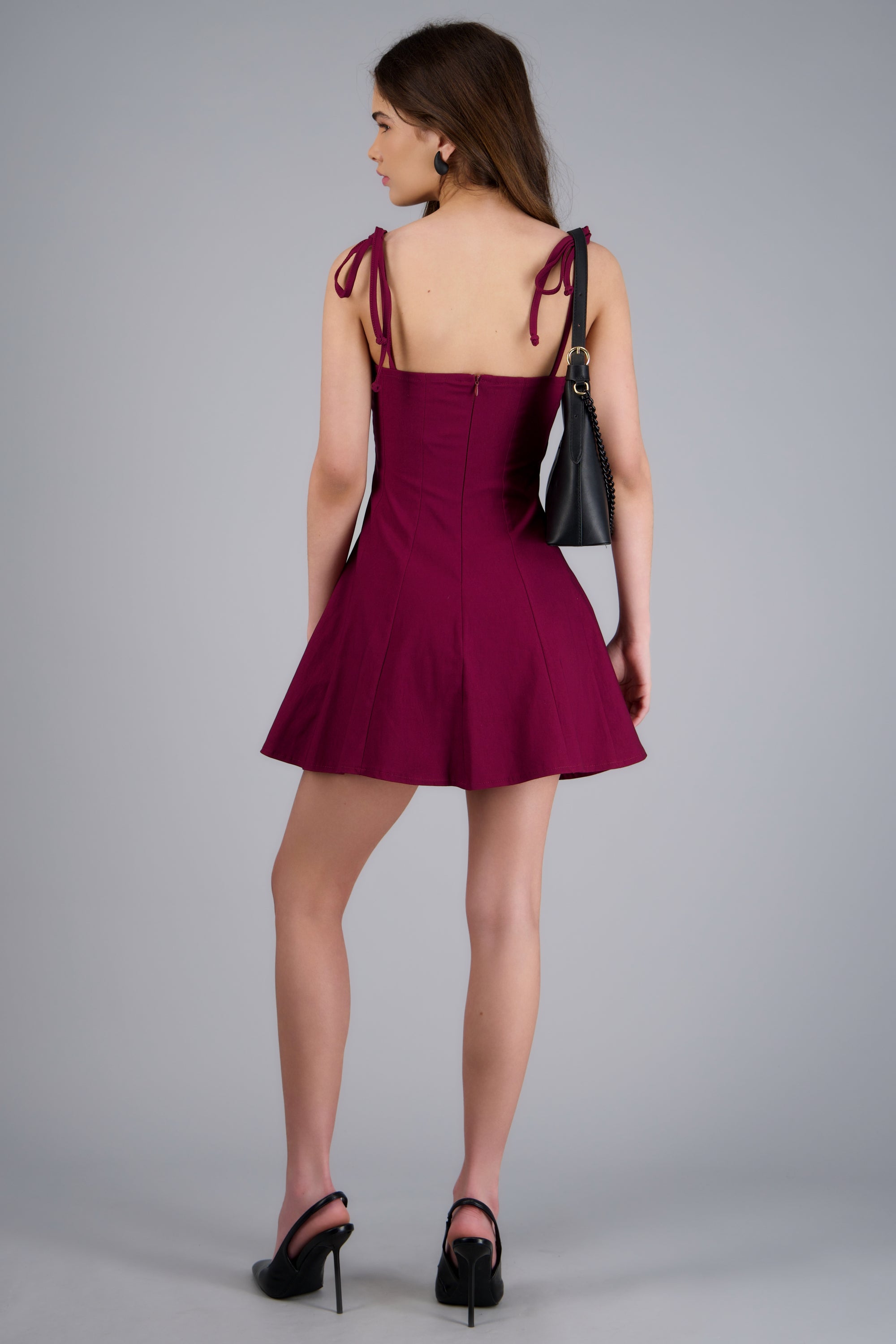 Vestido estilo corset con diseño tableado, corte ajustado y tirantes delgados.
