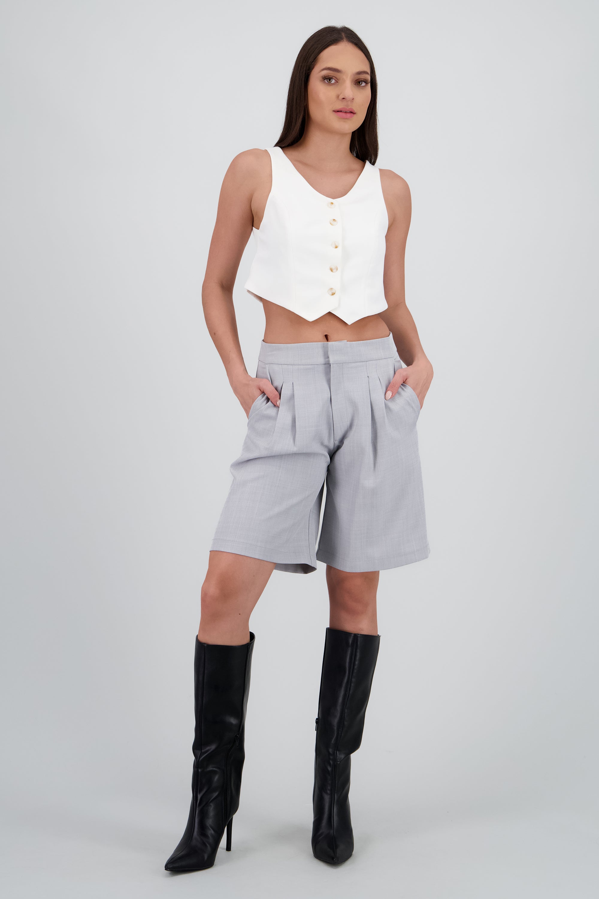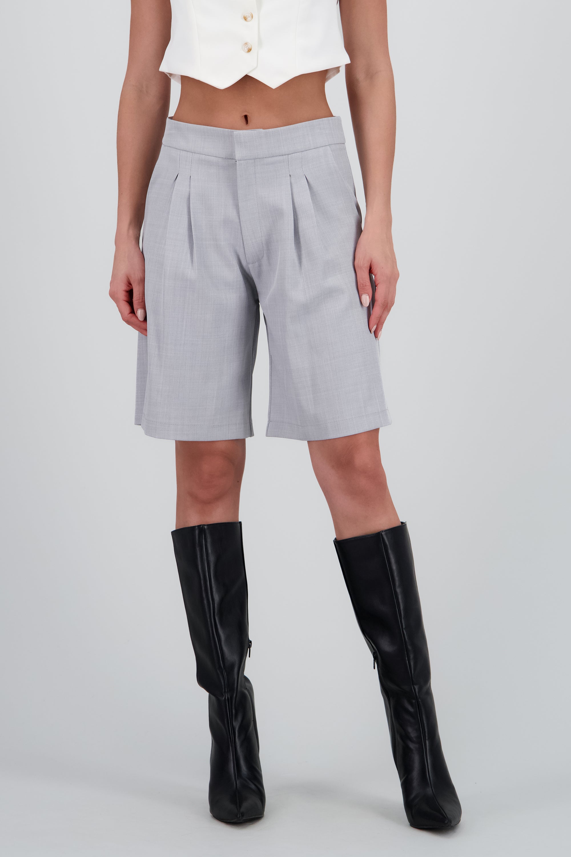 Bermudas low rise de corte recto, pinzas frontales, detalle de costura y bolsas delanteras.