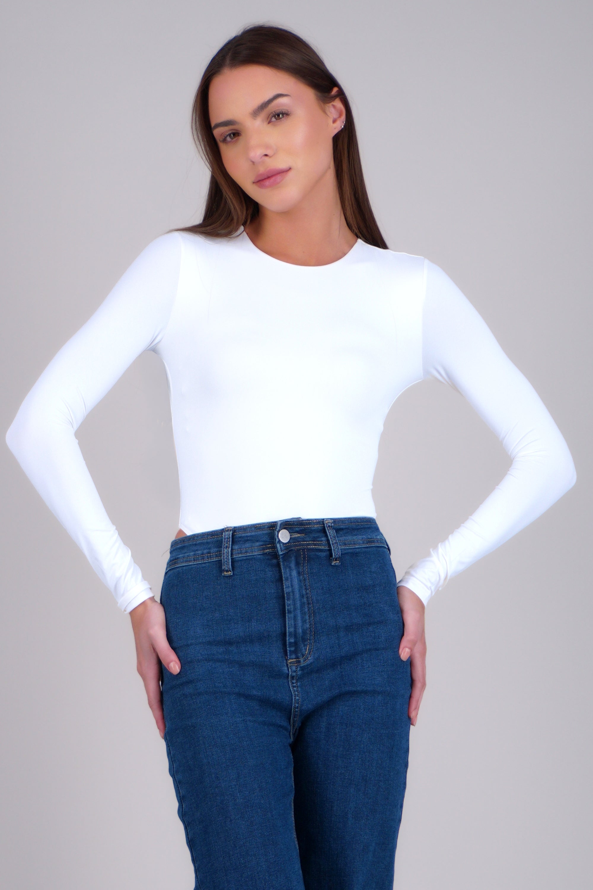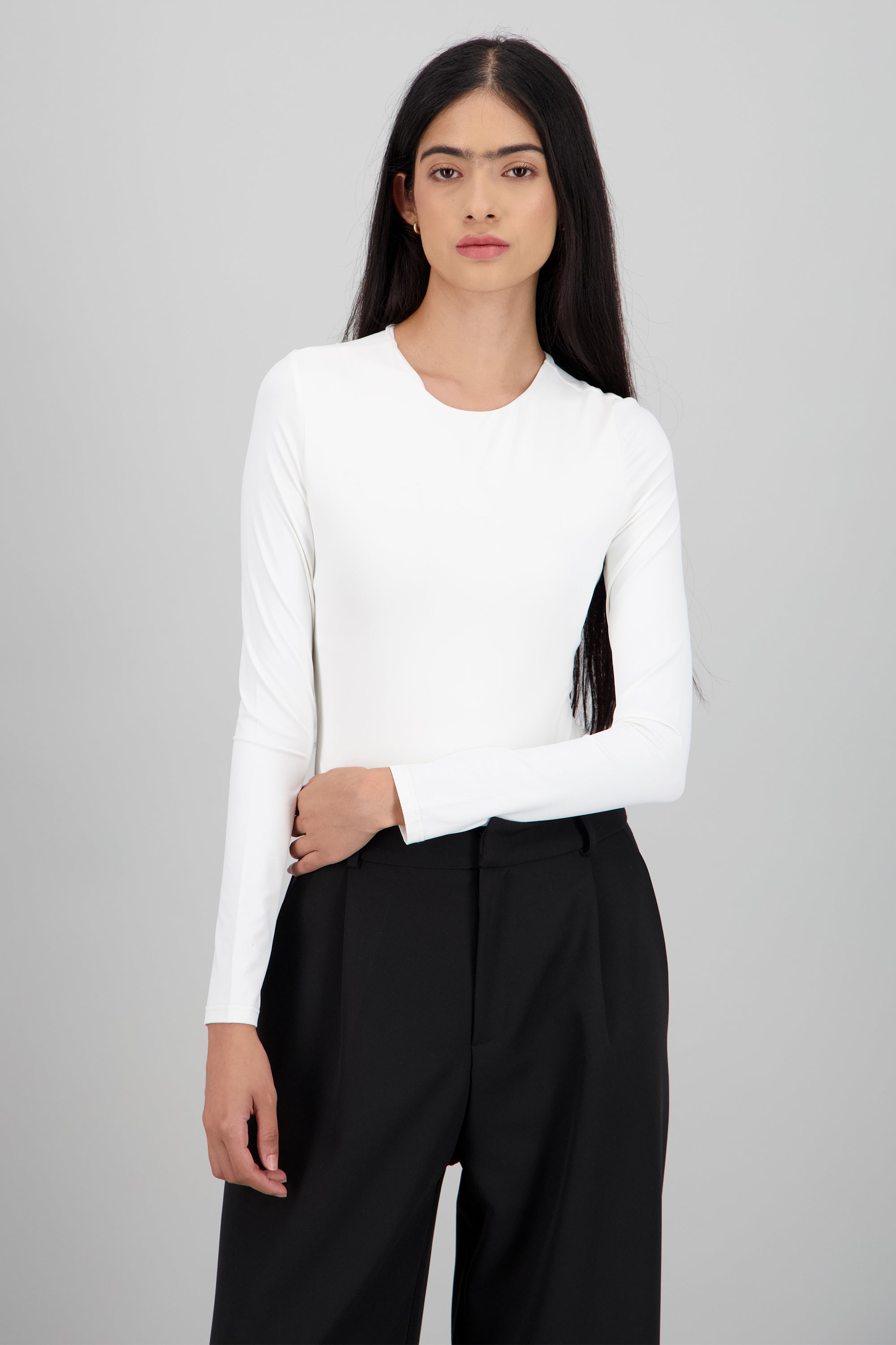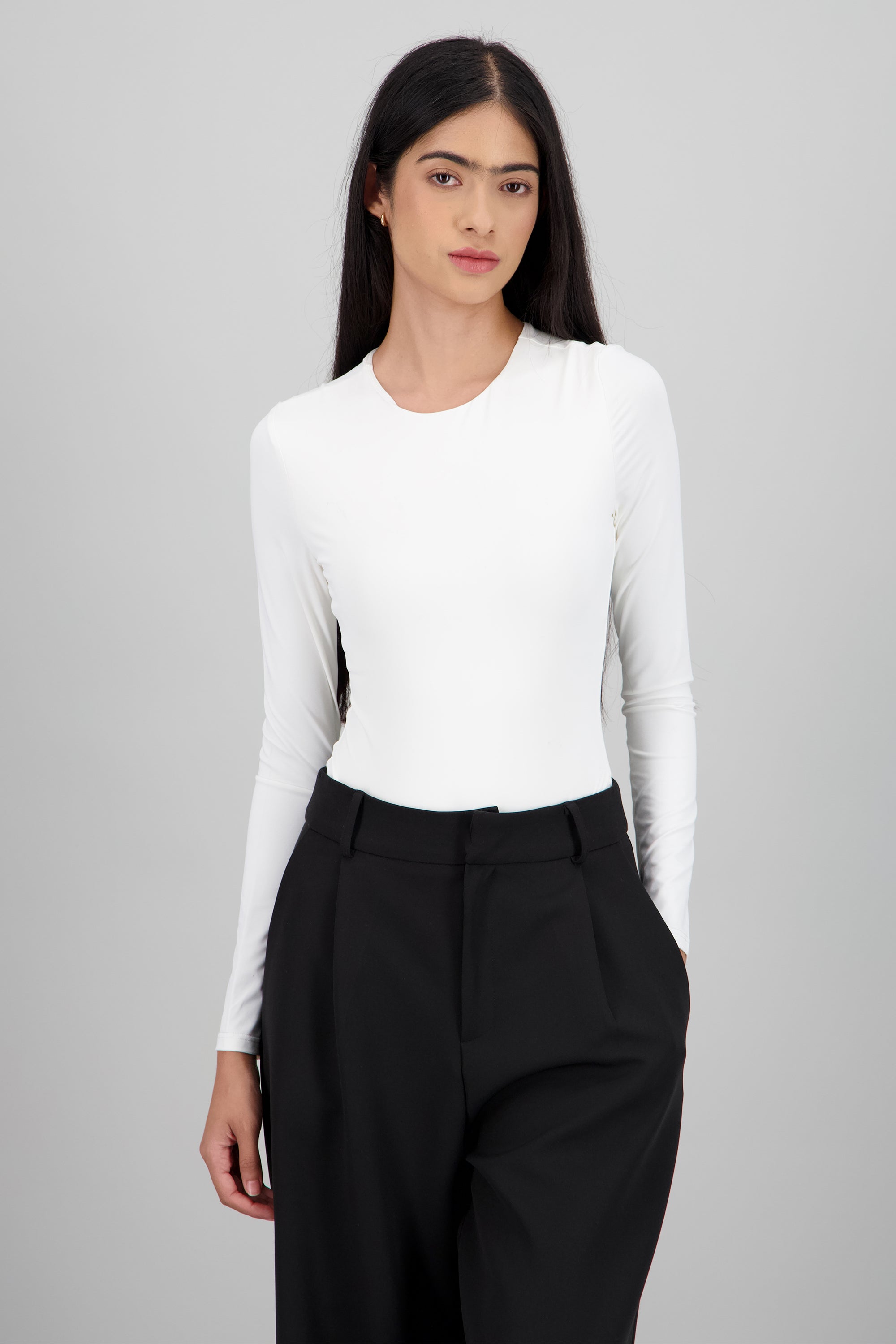 Bodysuit de manga larga, corte ajustado y cuello redondo.