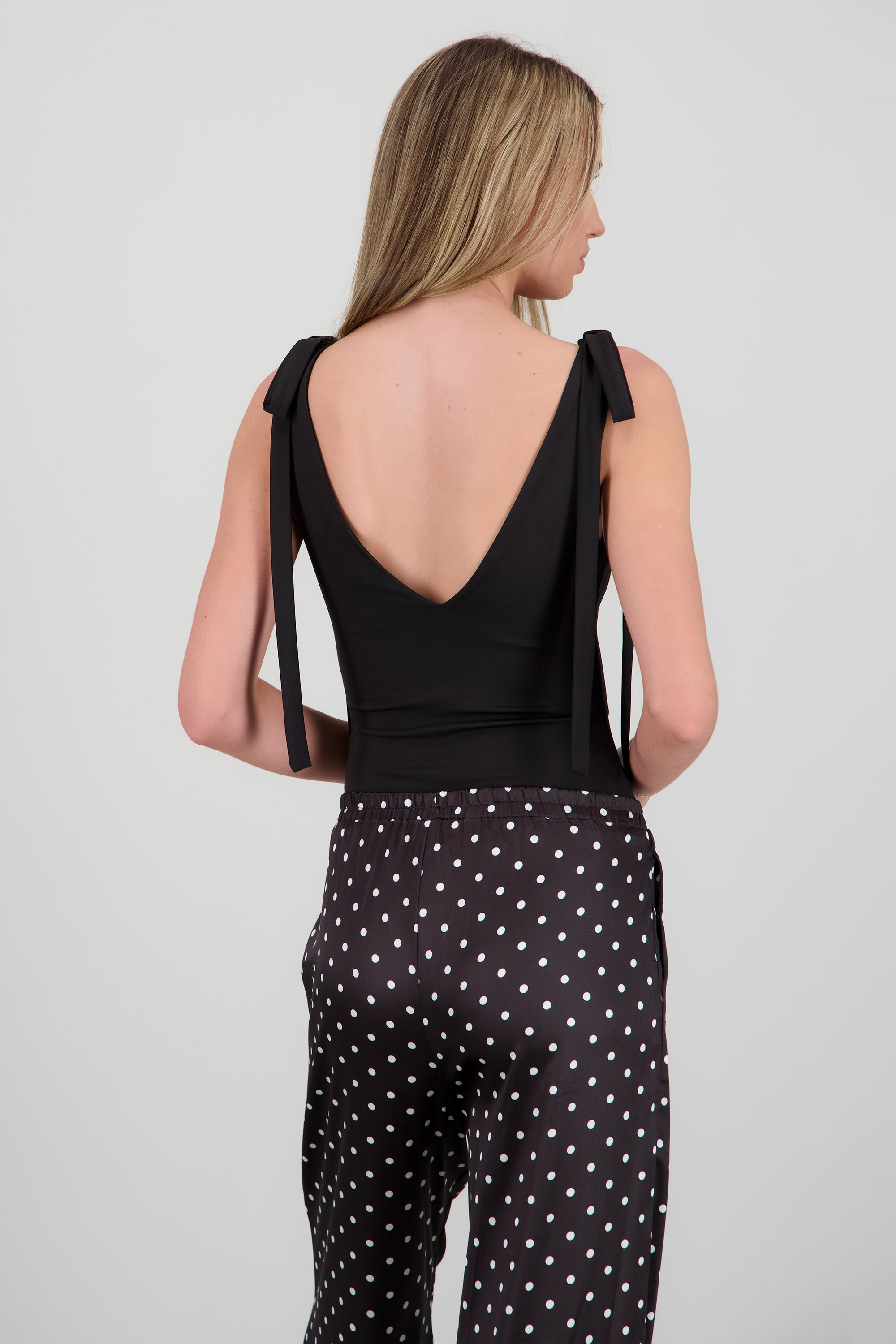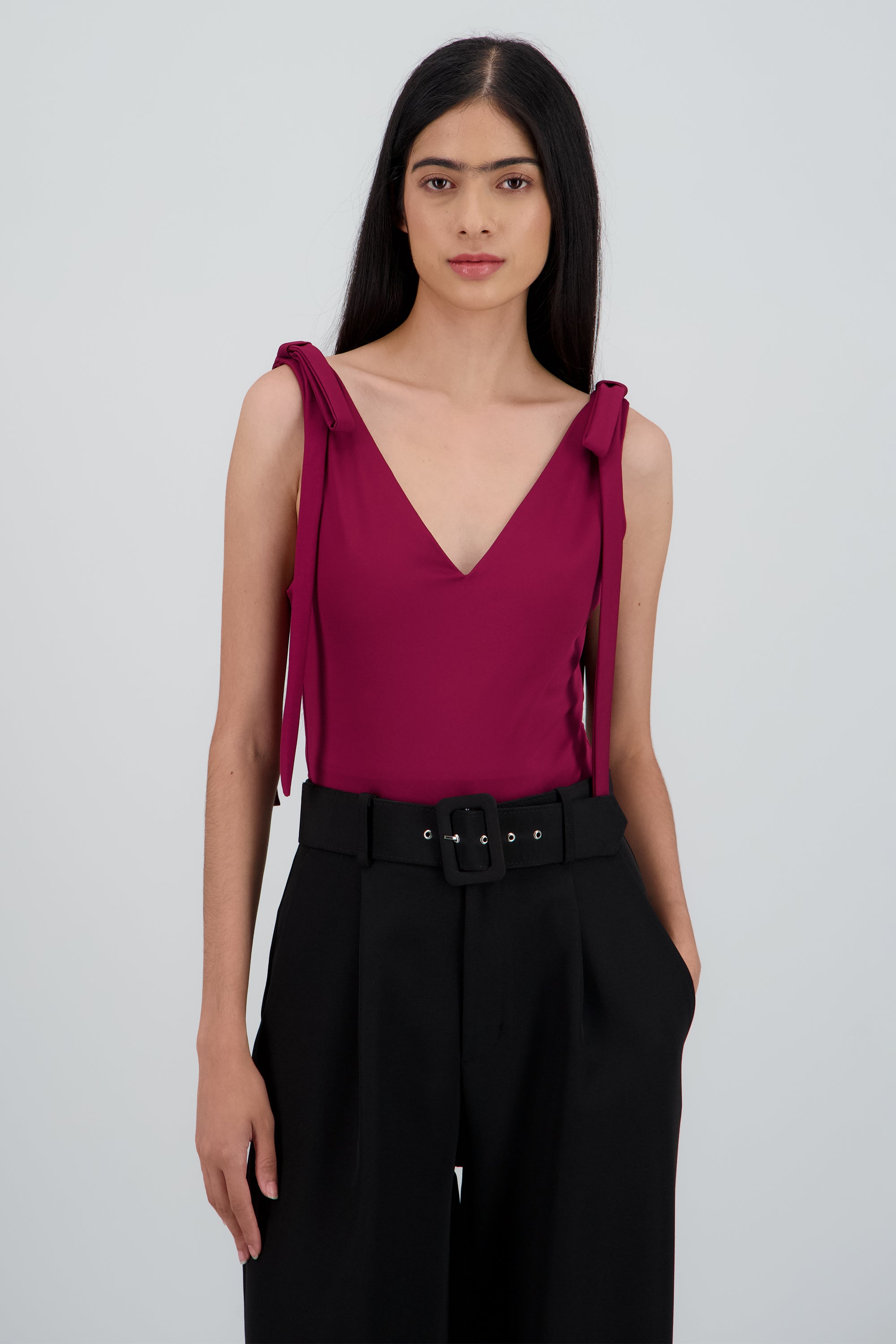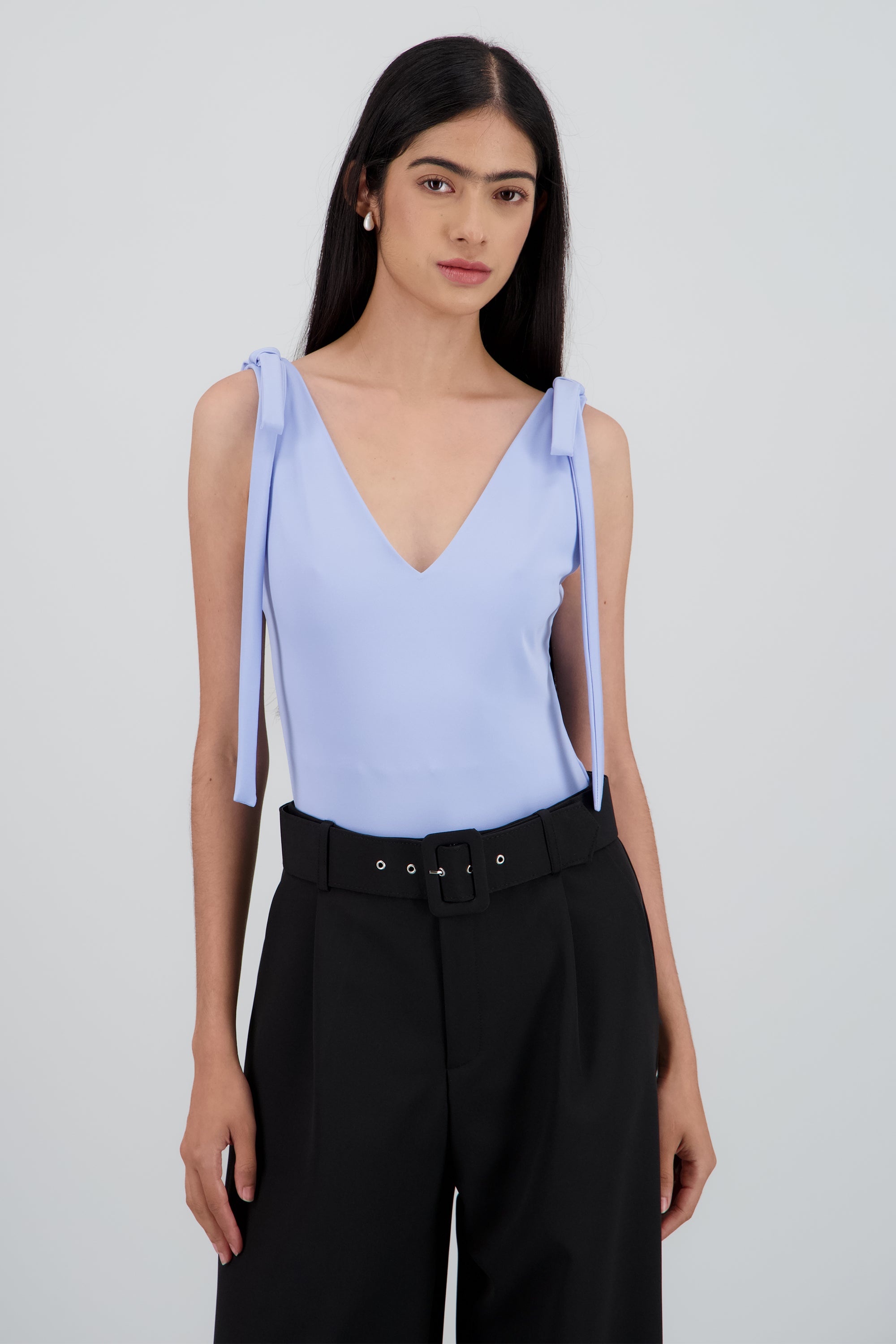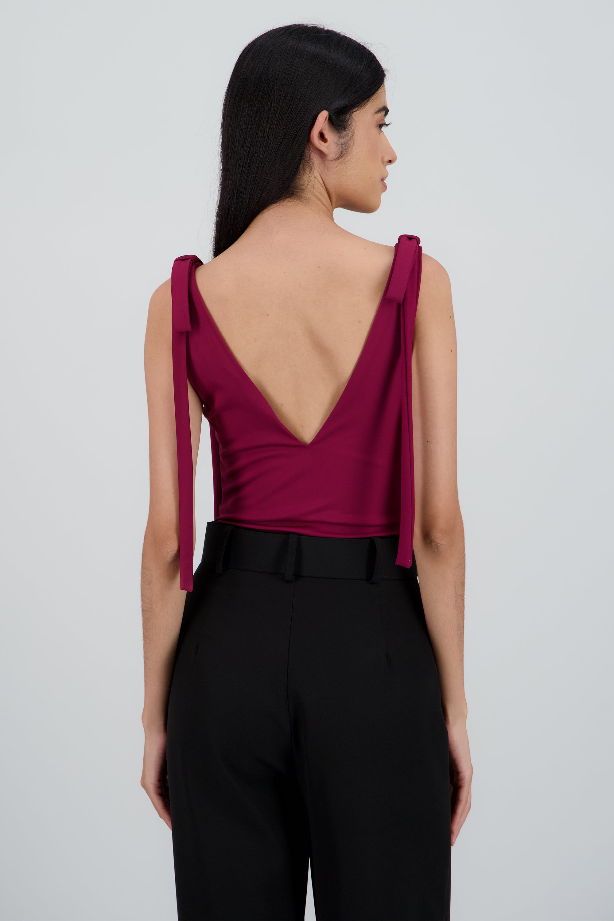Bodysuit de ajuste ceñido con detalle de moños, escote en V y diseño sin mangas.