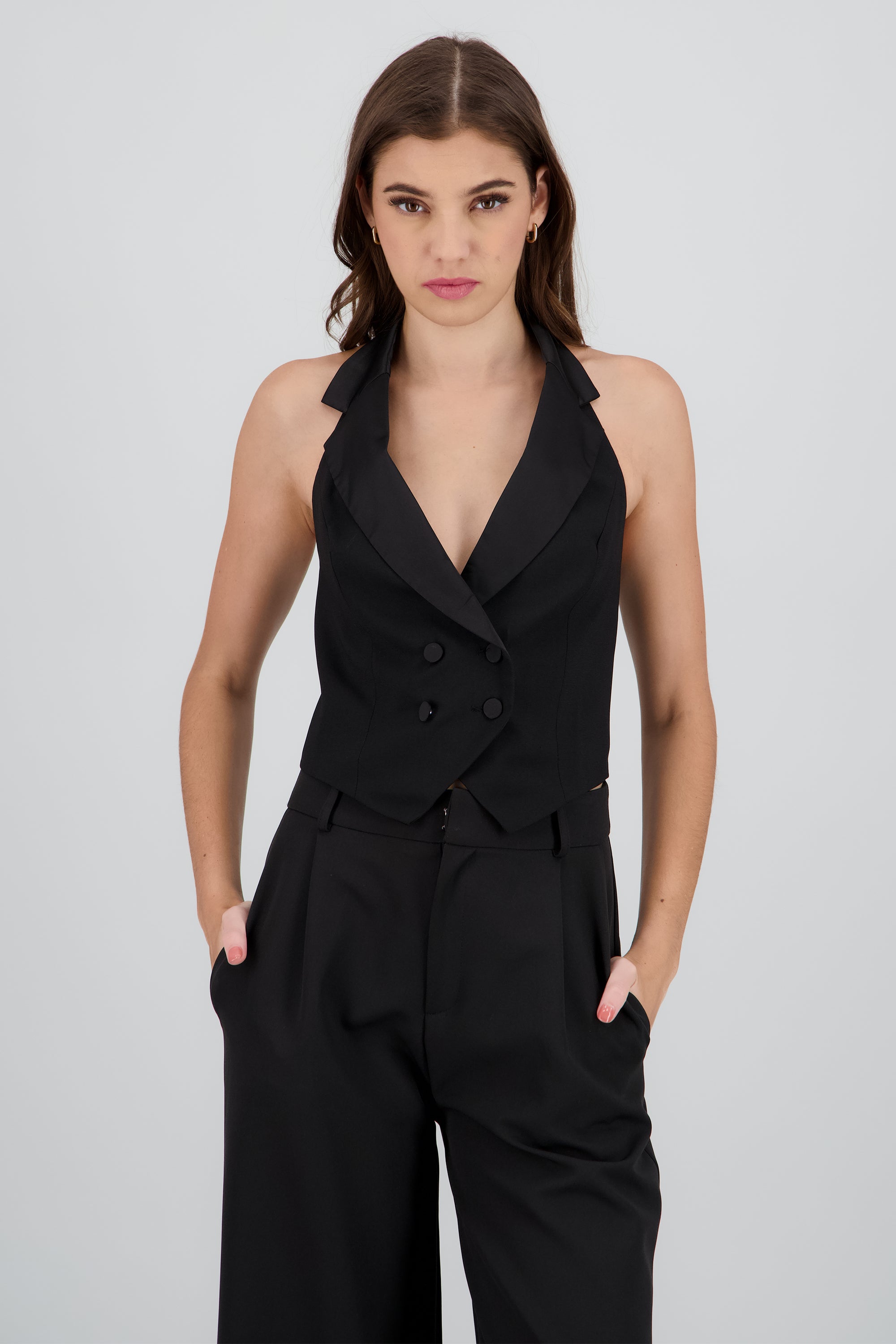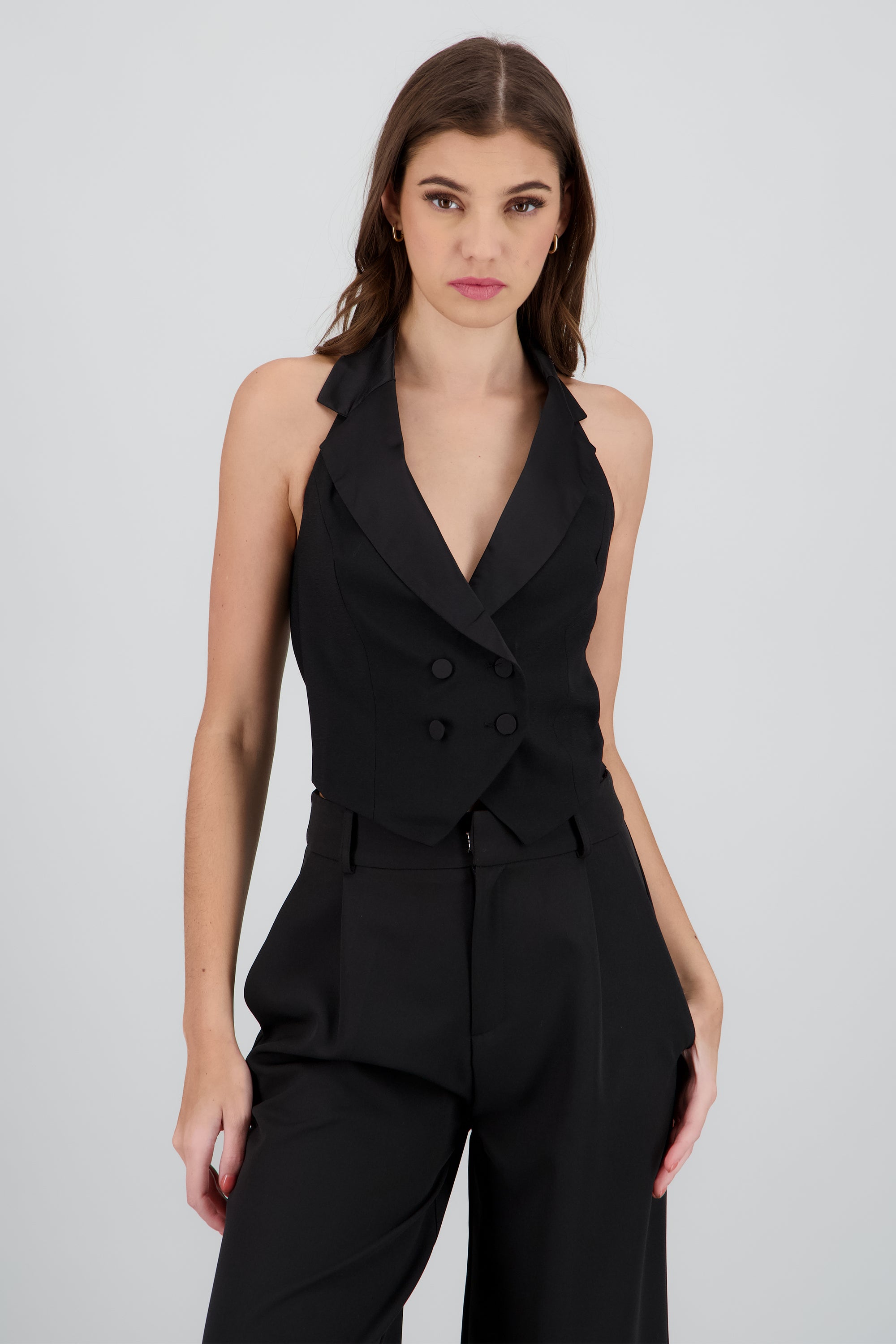 Chaleco halter detalle satin