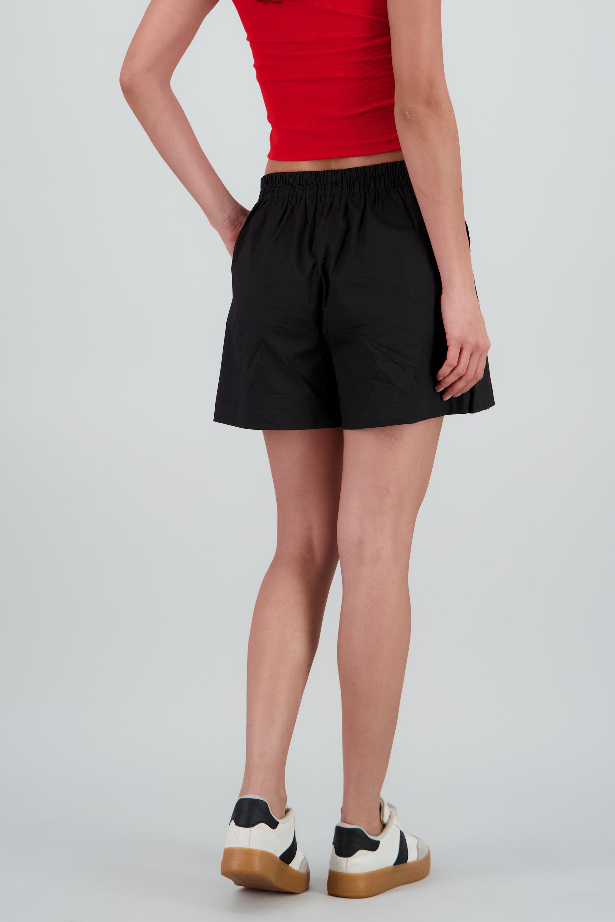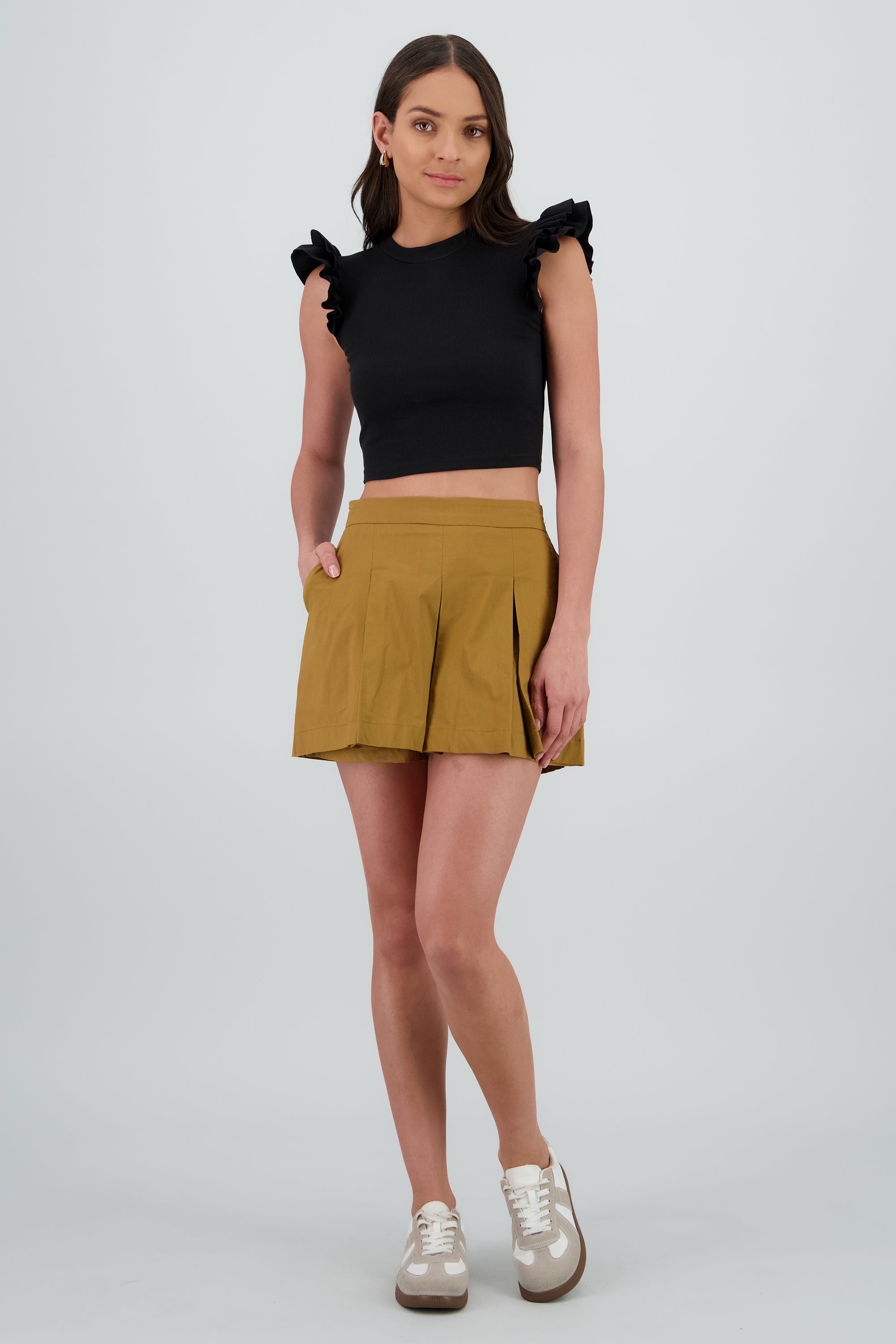 Falda con pliegues clásicos, short interno, cintura elástica y alta.