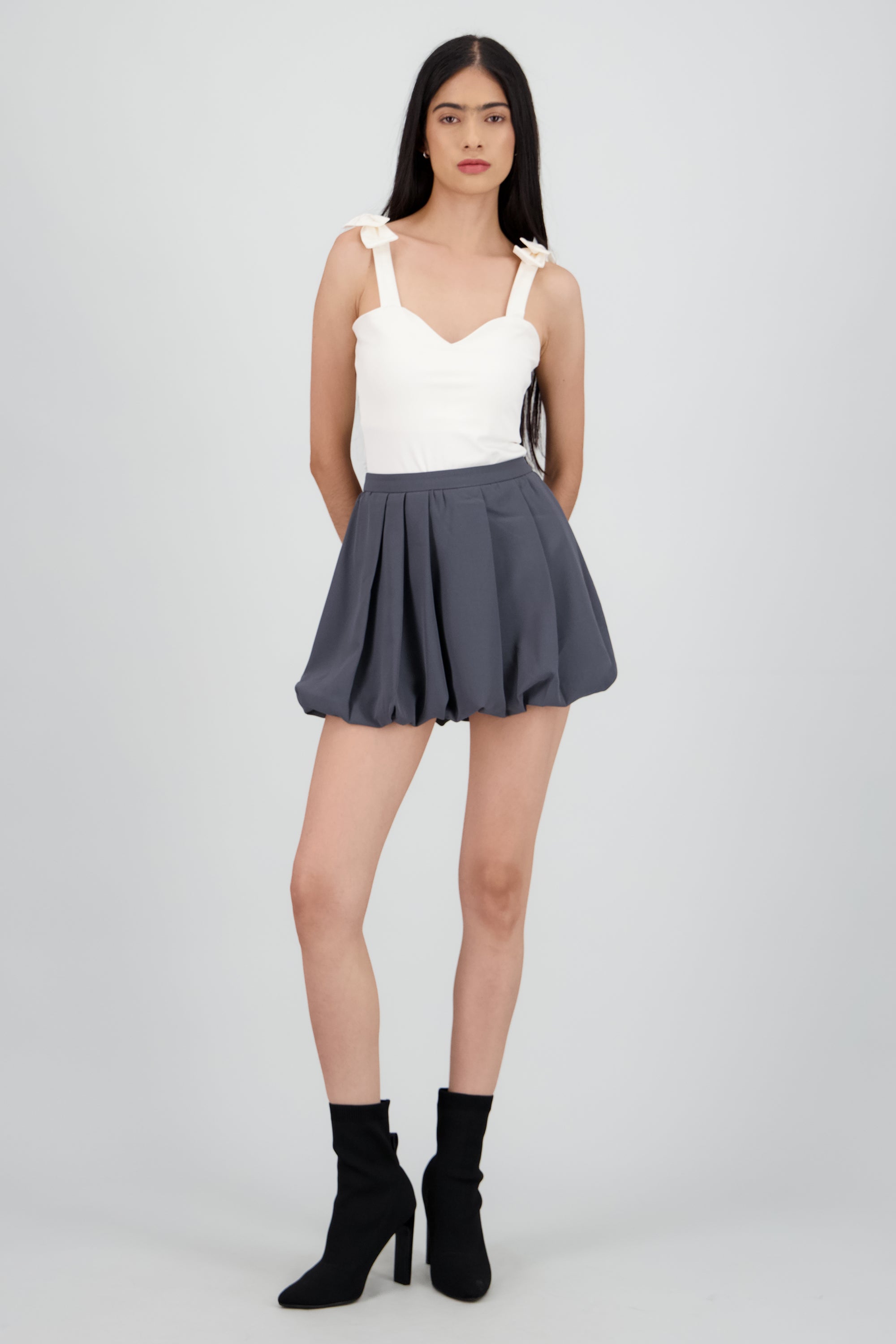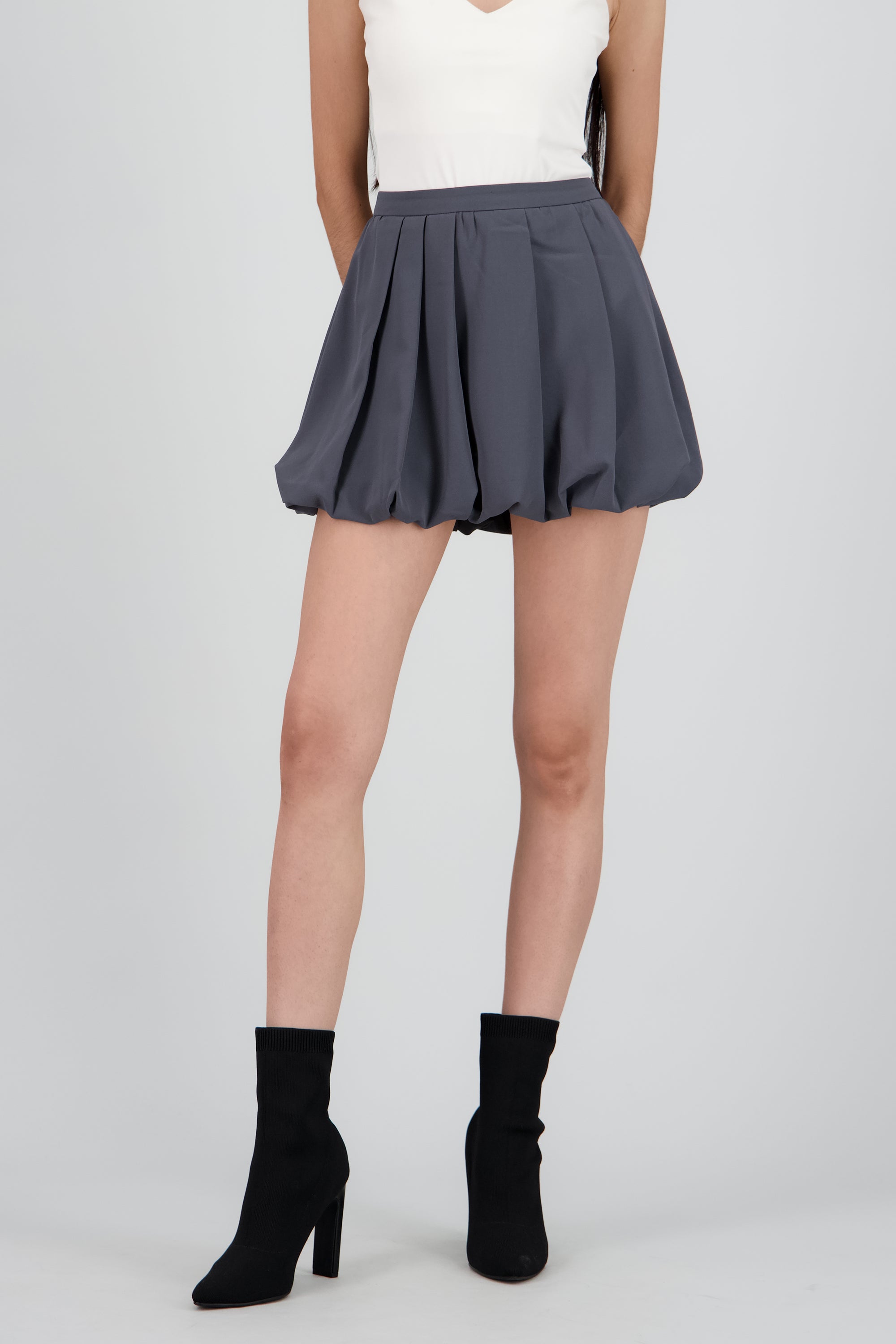 Falda tipo burbuja con corte tableado. Diseño con cintura elástica y cierre lateral.