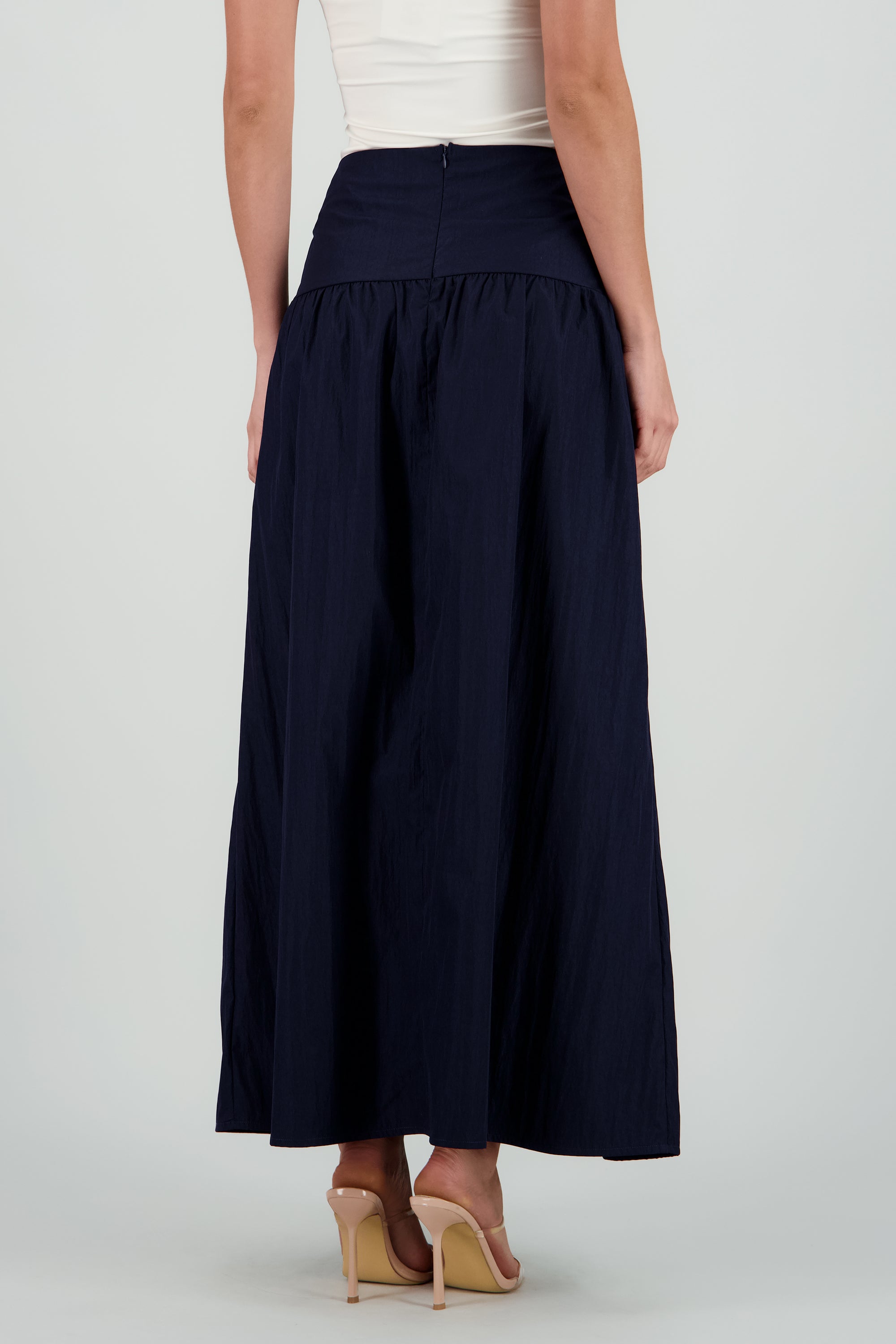 Falda de diseño drop waist, corte amplio y diseño minimalista.
