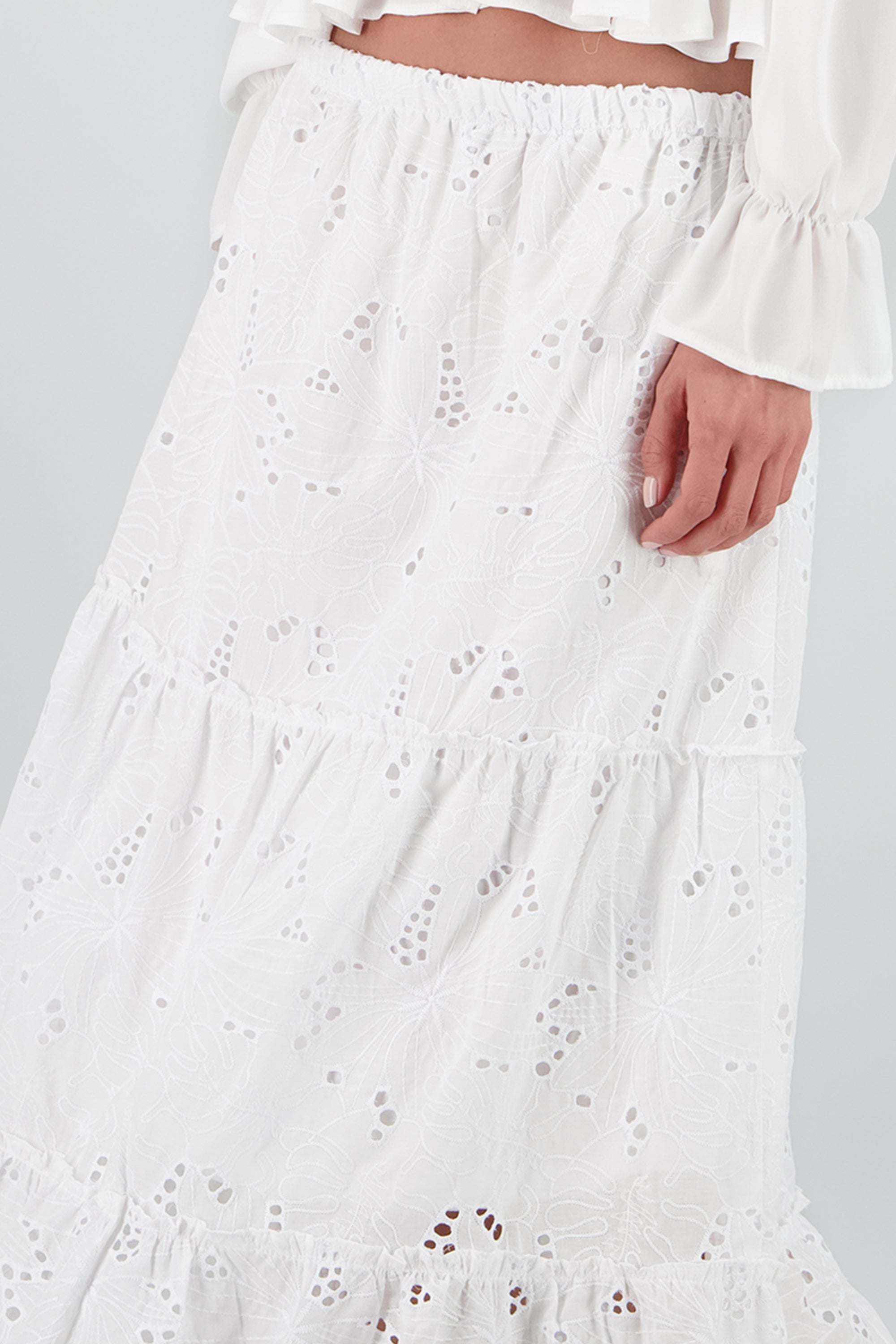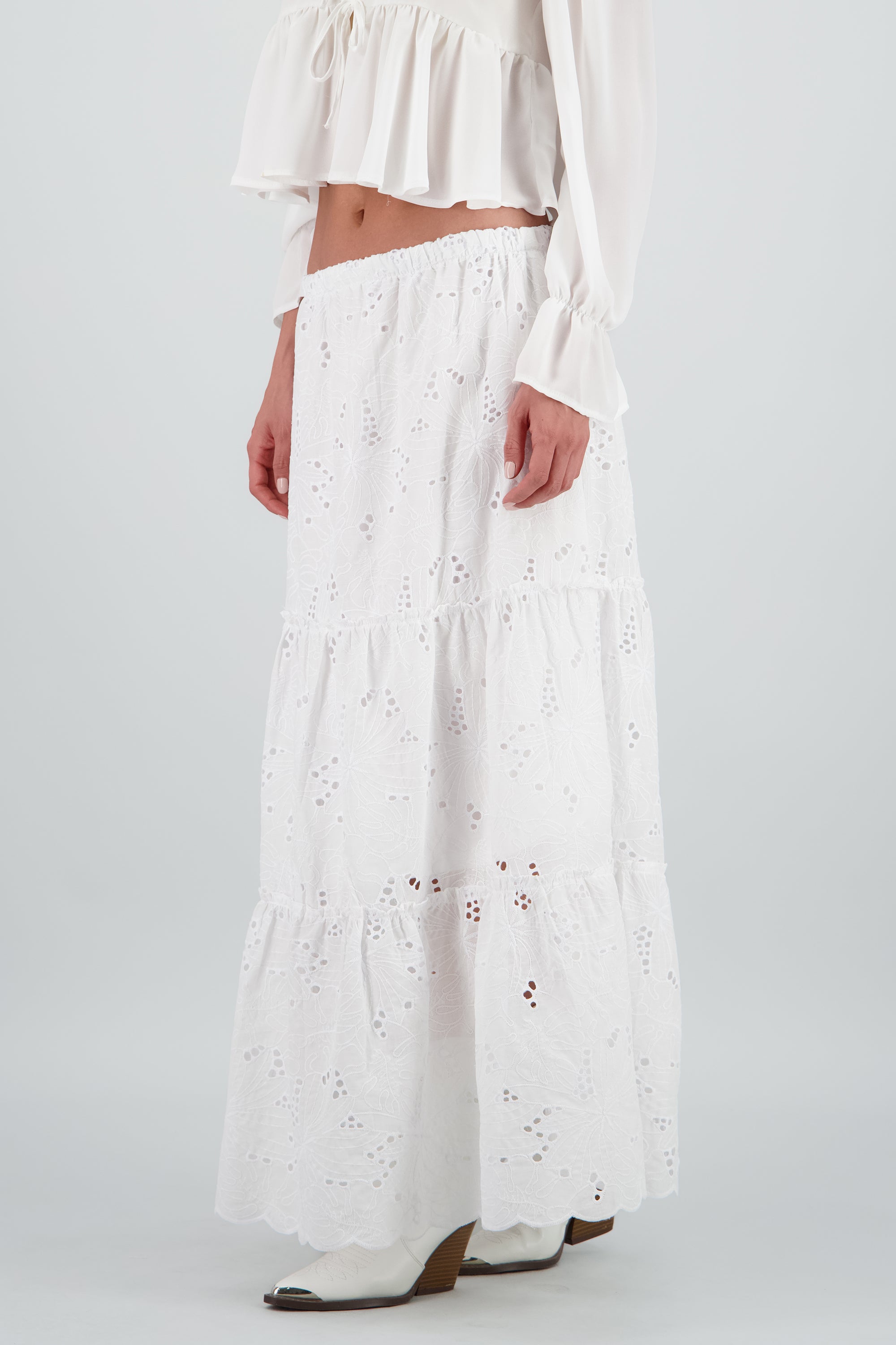 Diseño con bordados calados, caída fluida, volantes que aportan movimiento y estilo único.