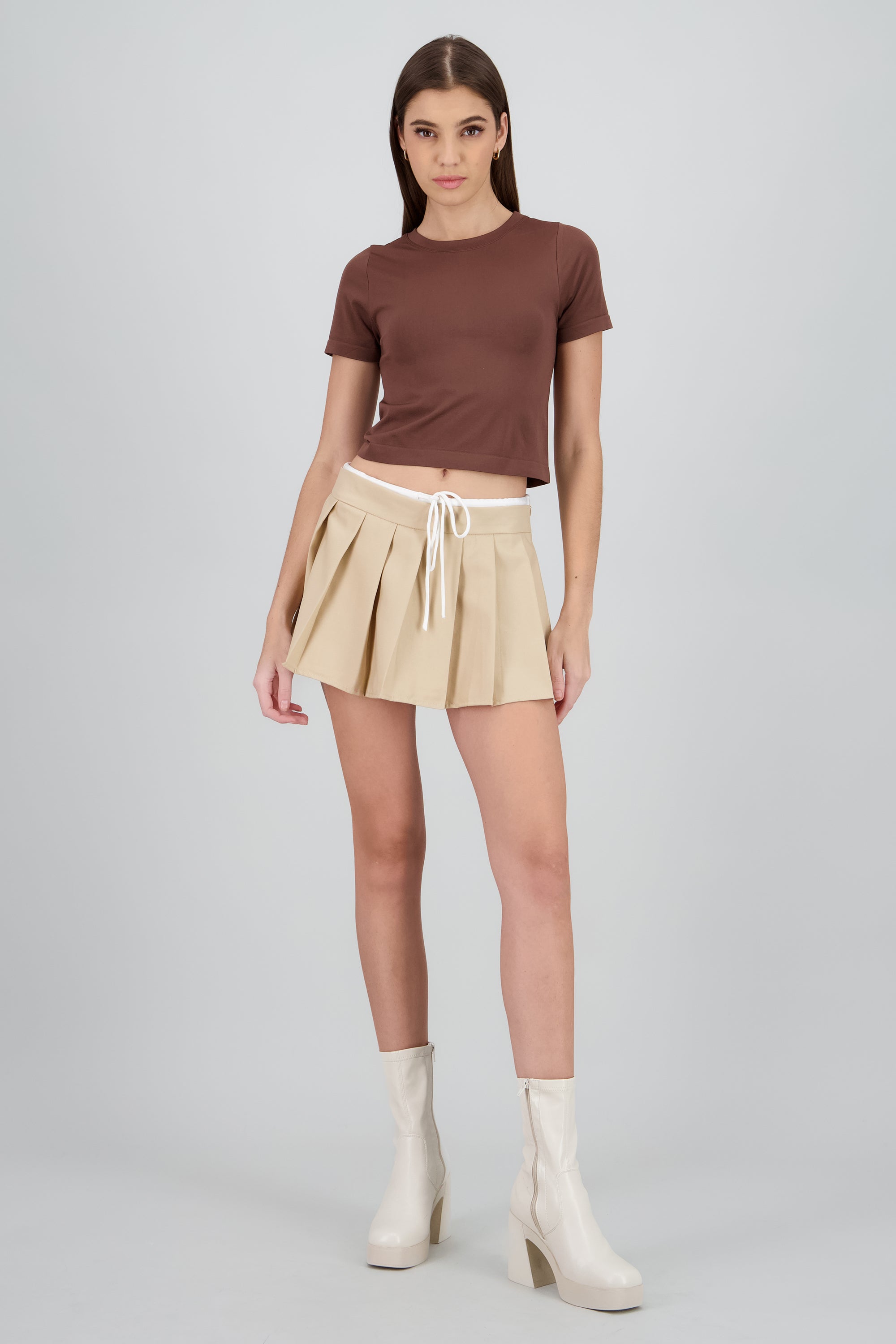 Falda tableada con pretina de contraste. Corte midi, diseño con pliegues y cintura ajustable.