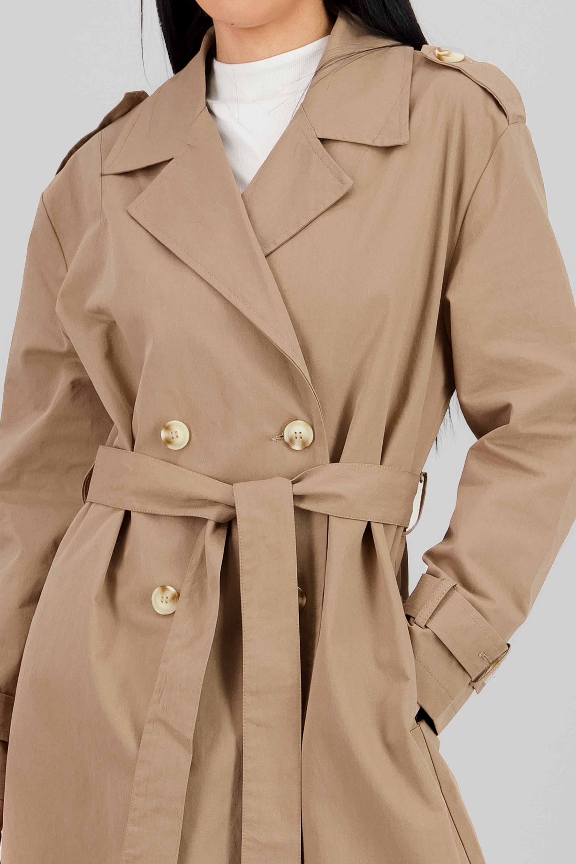 Descubre la prenda perfecta para elevar tu look cotidiano. Esta gabardina lisa es el toque chic que necesitas en tu armario.