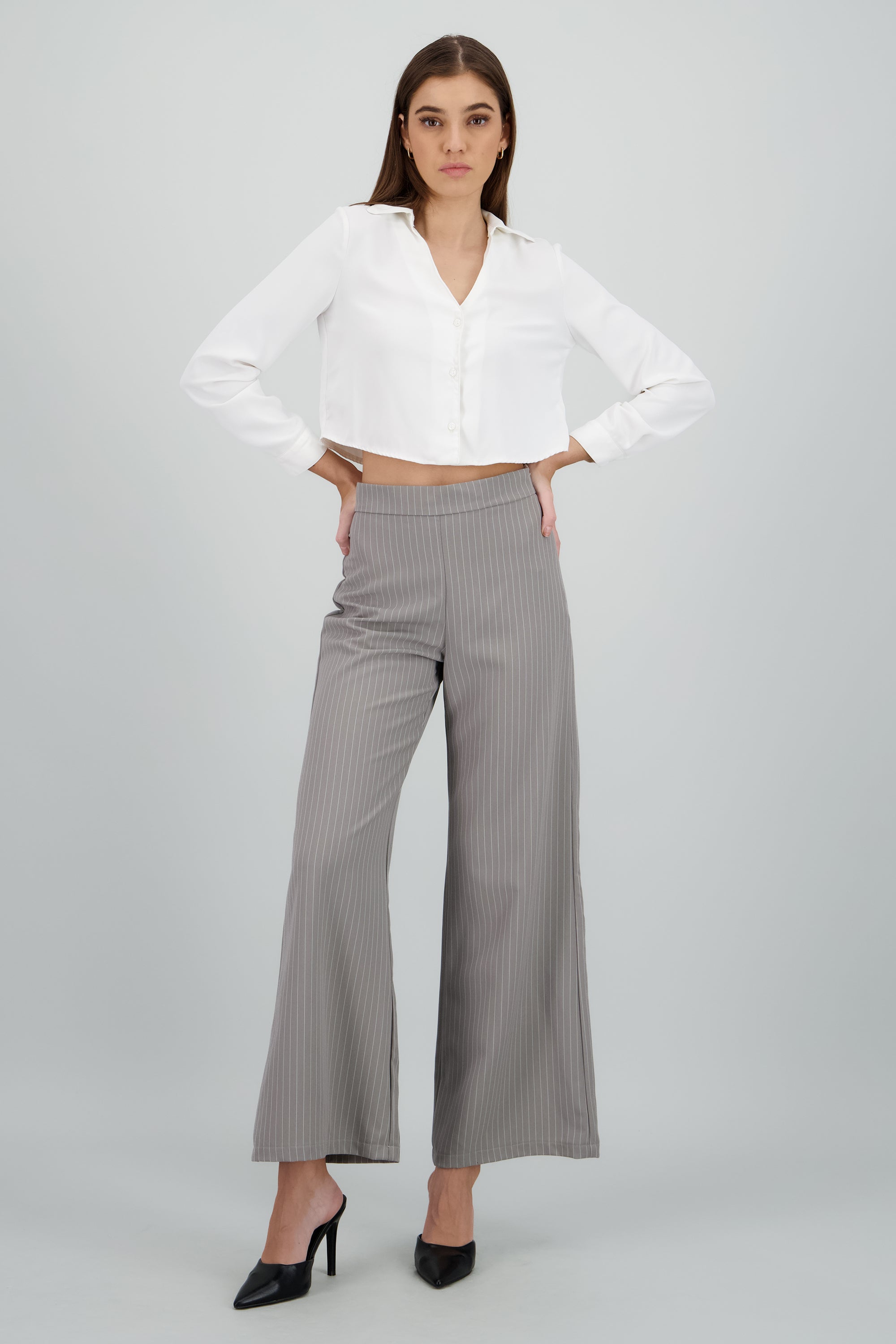Pantalon amplio high waisted con pretina lisa
