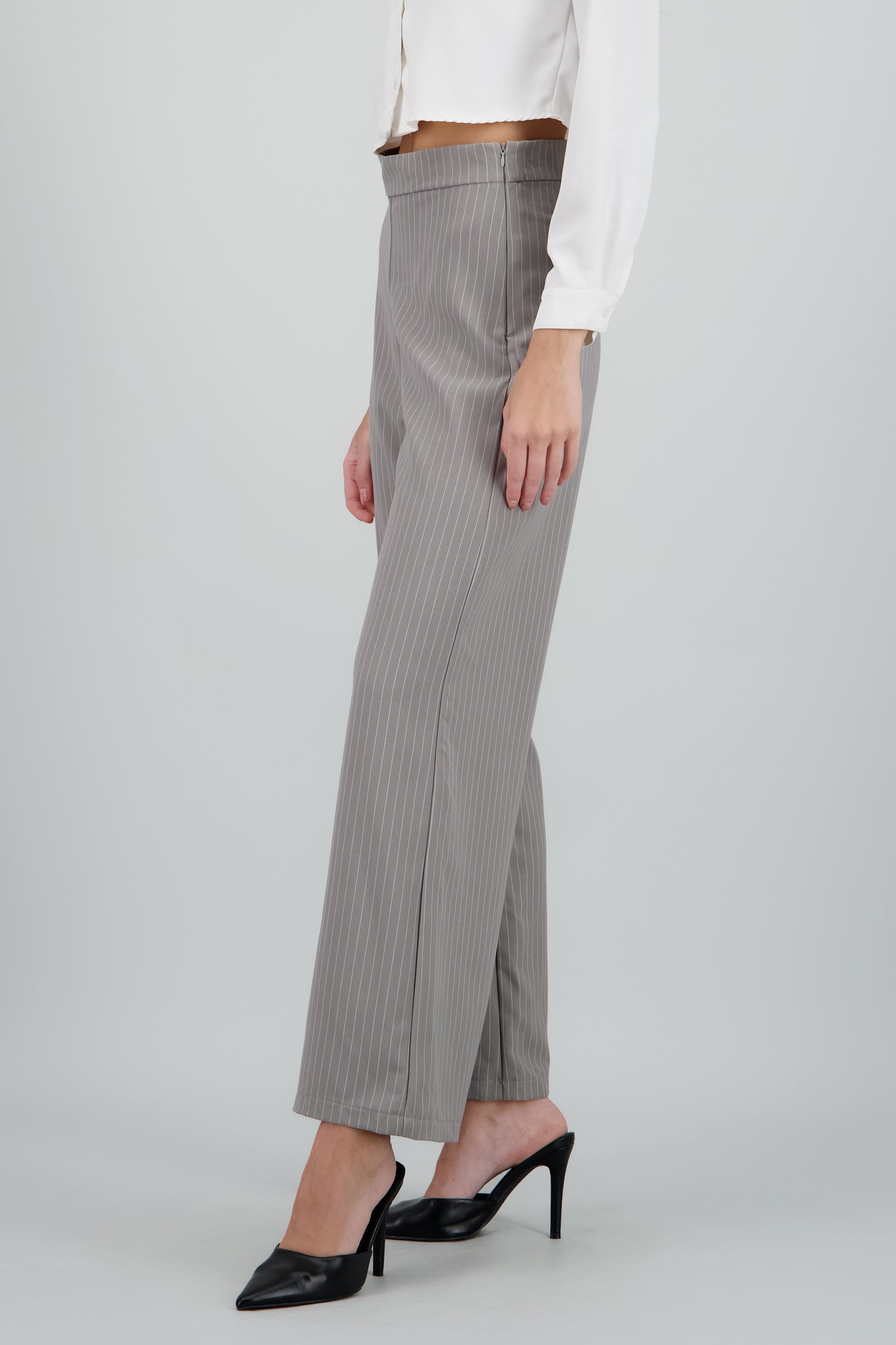 Pantalón amplio high waisted, cintura alta con pretina lisa, corte fluido. Cierre lateral con cremallera.