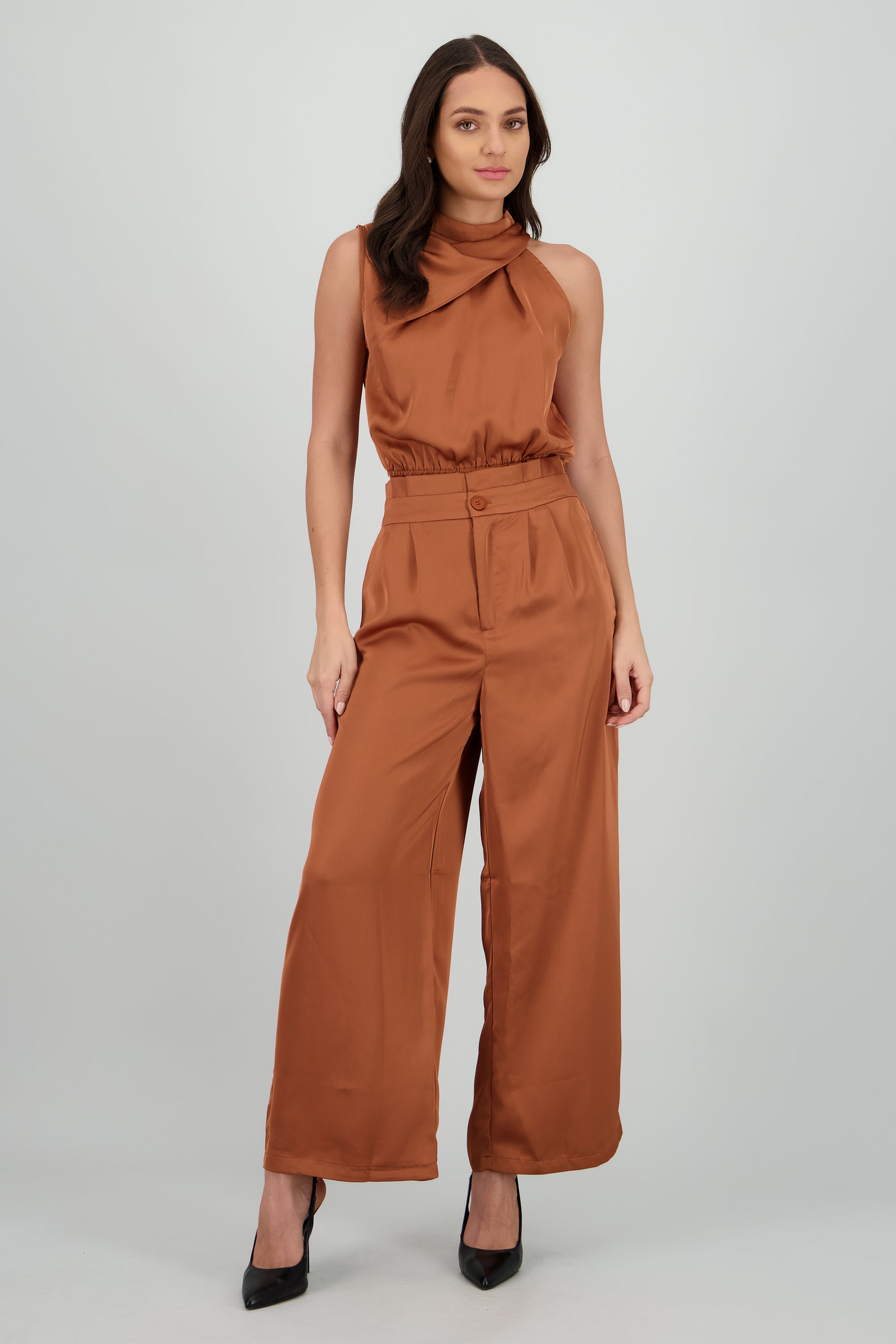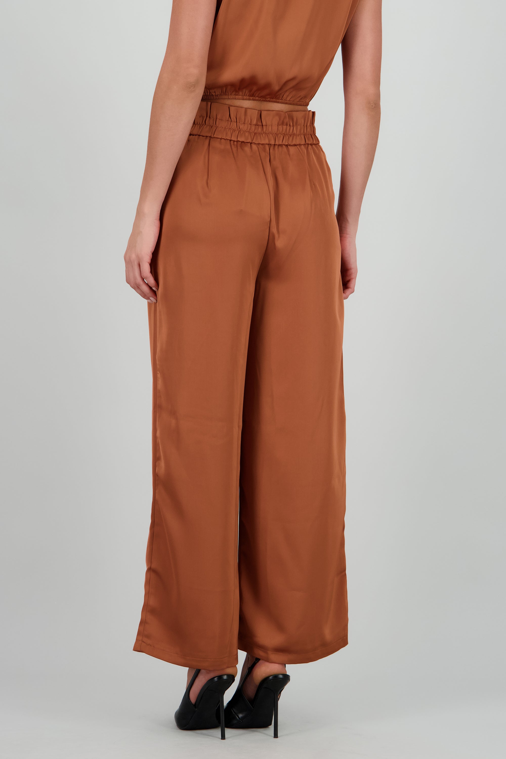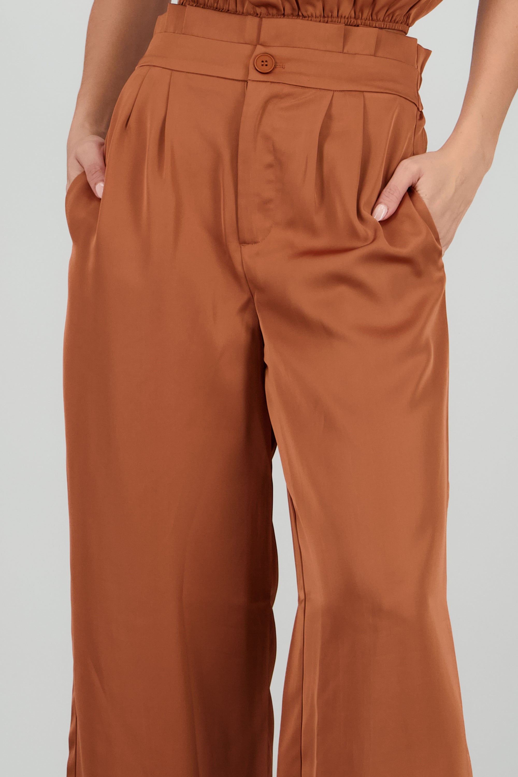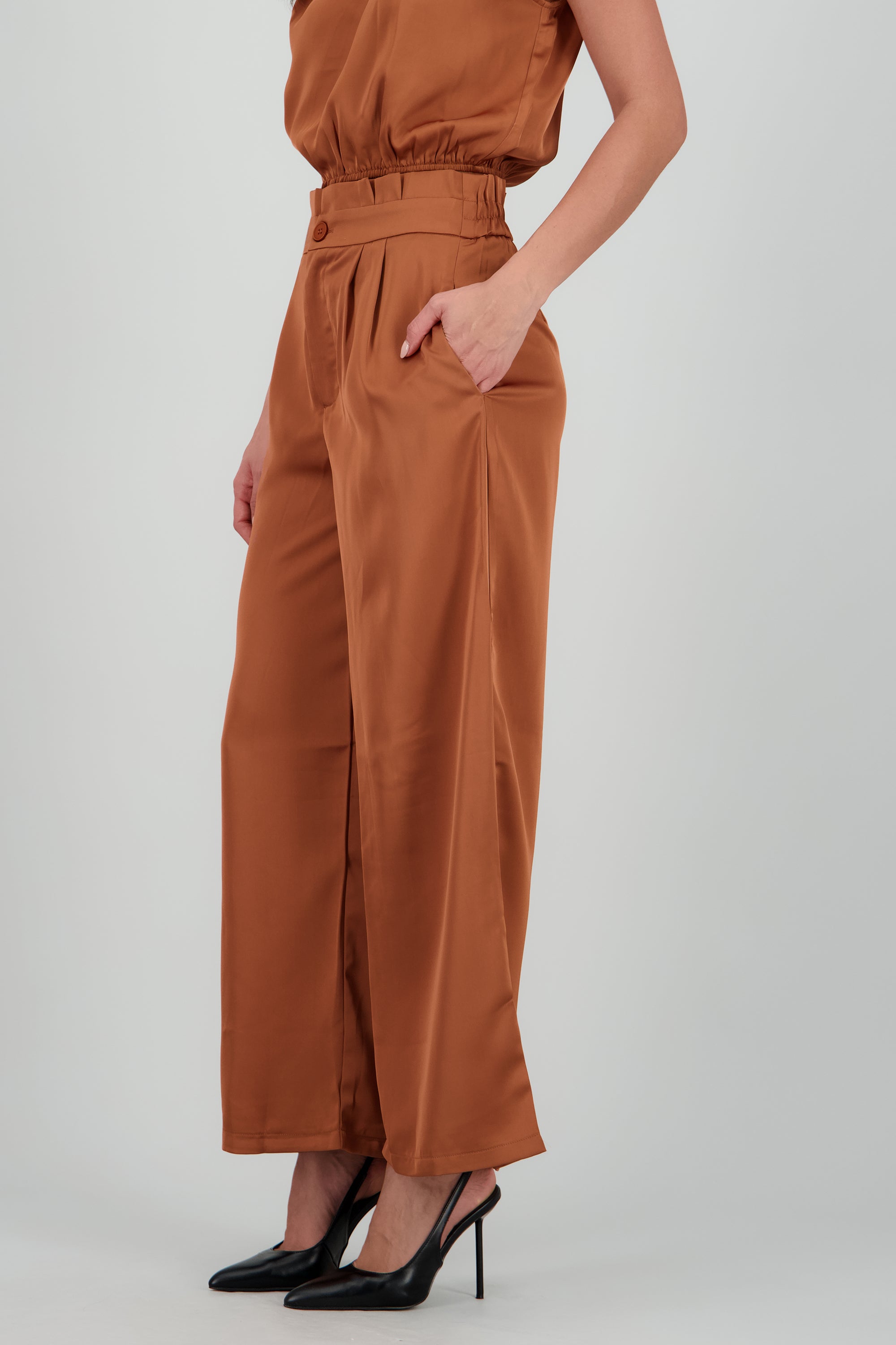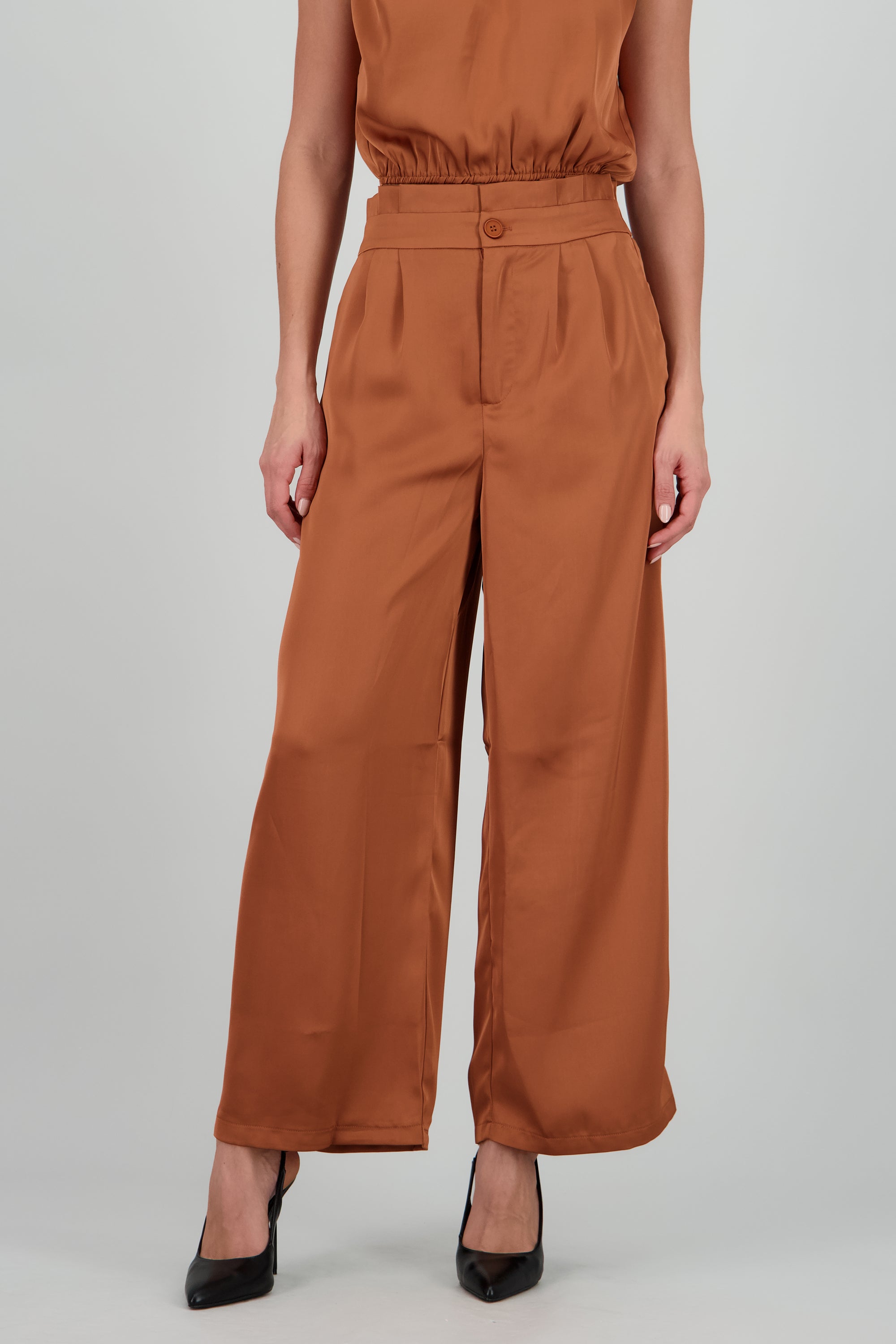 Pantalón high waisted de corte amplio y ligero. Cintura alta, pierna ancha y cierre de cremallera.