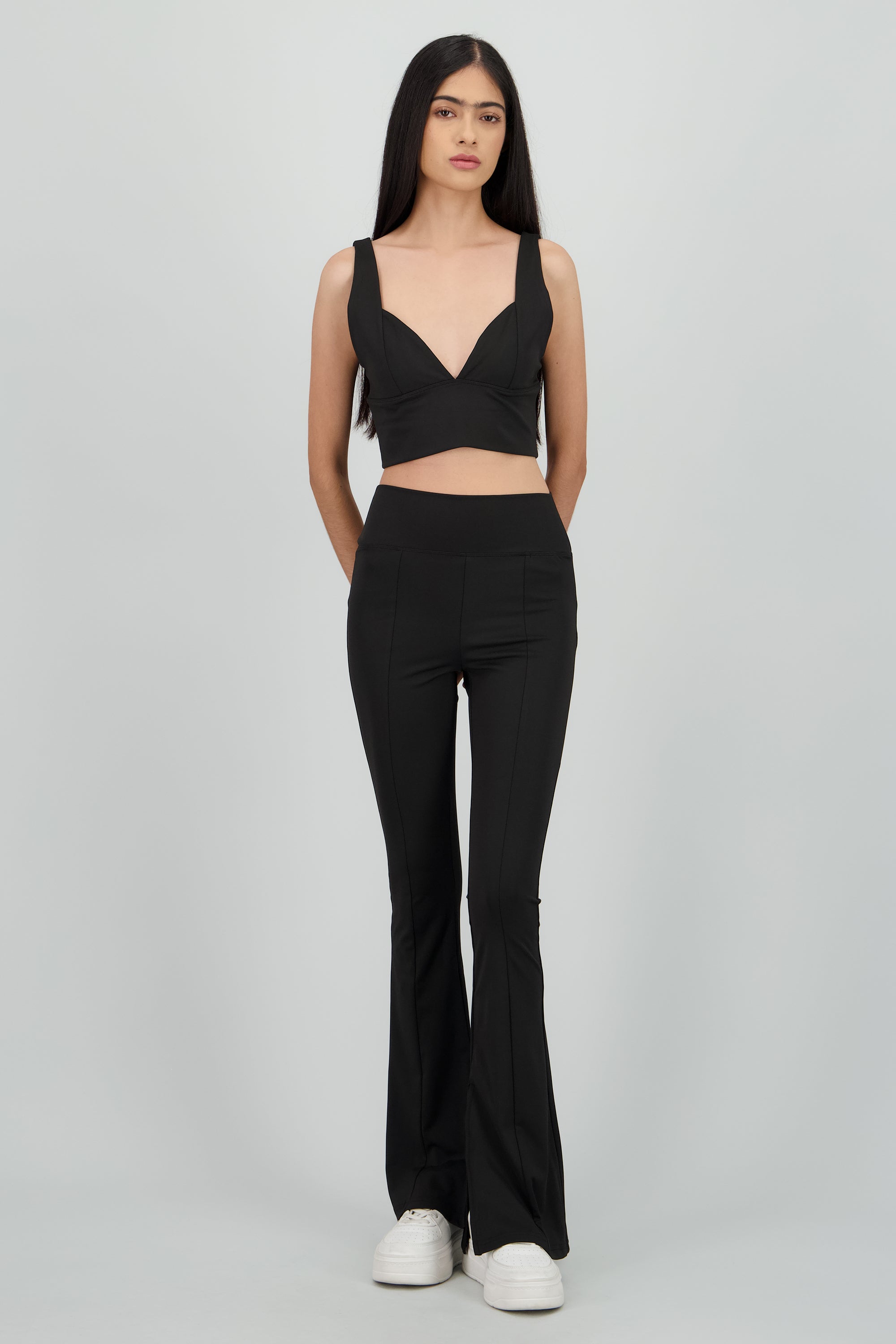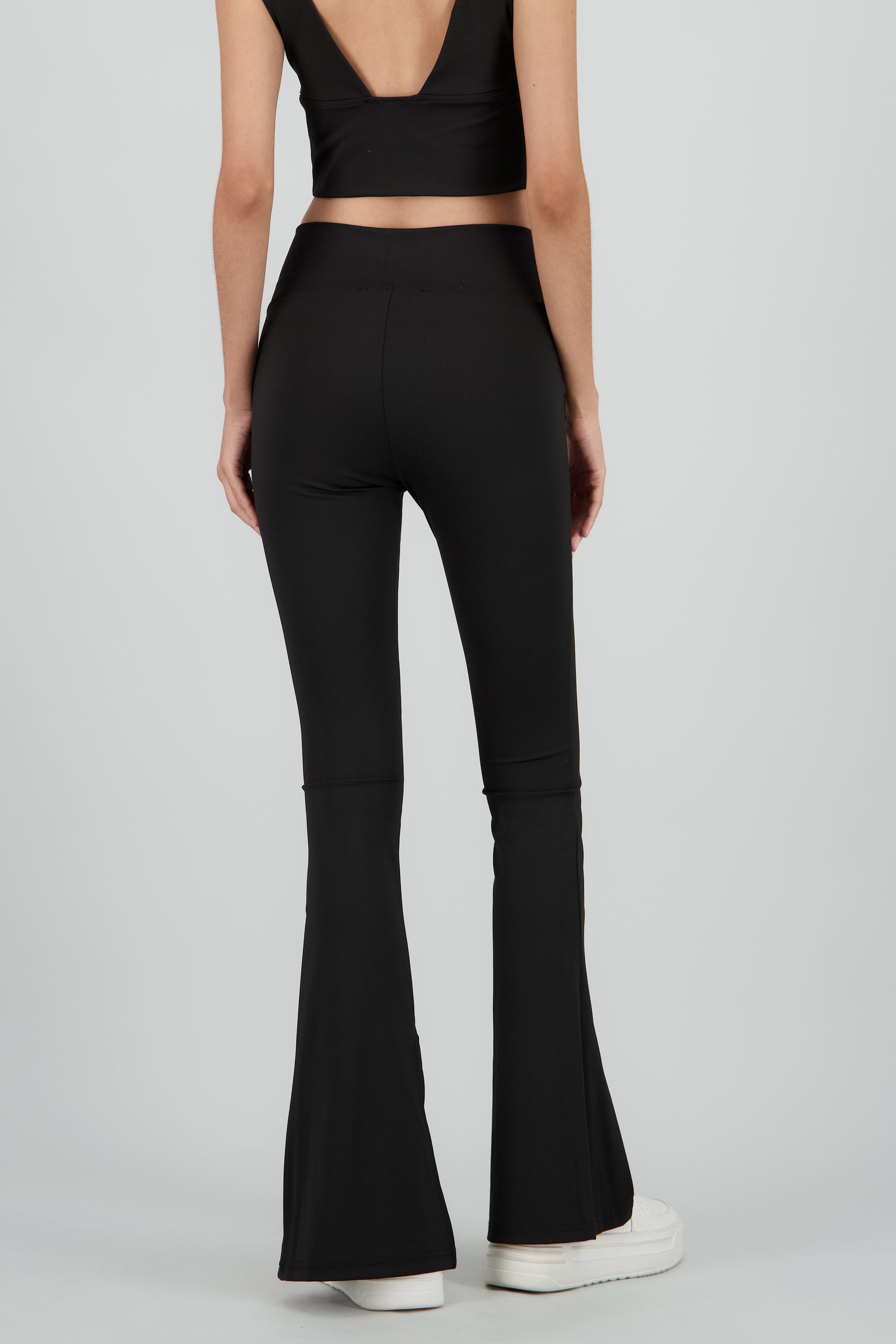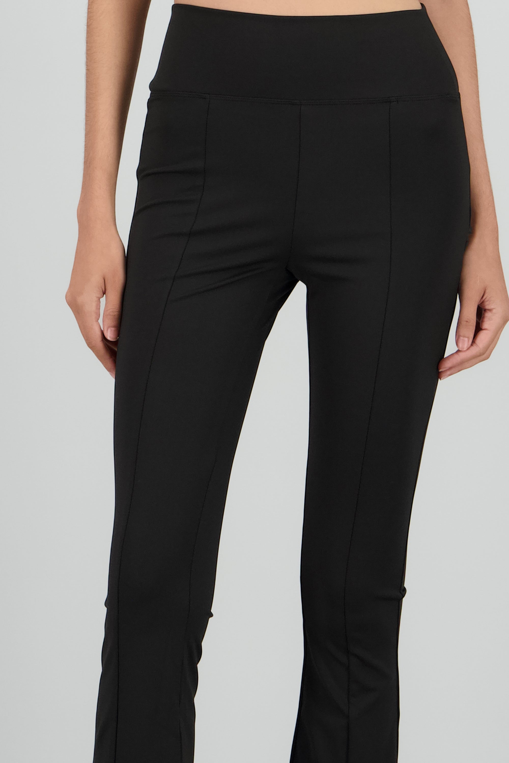 Pantalón liso con abertura lateral, corte recto y diseño minimalista.