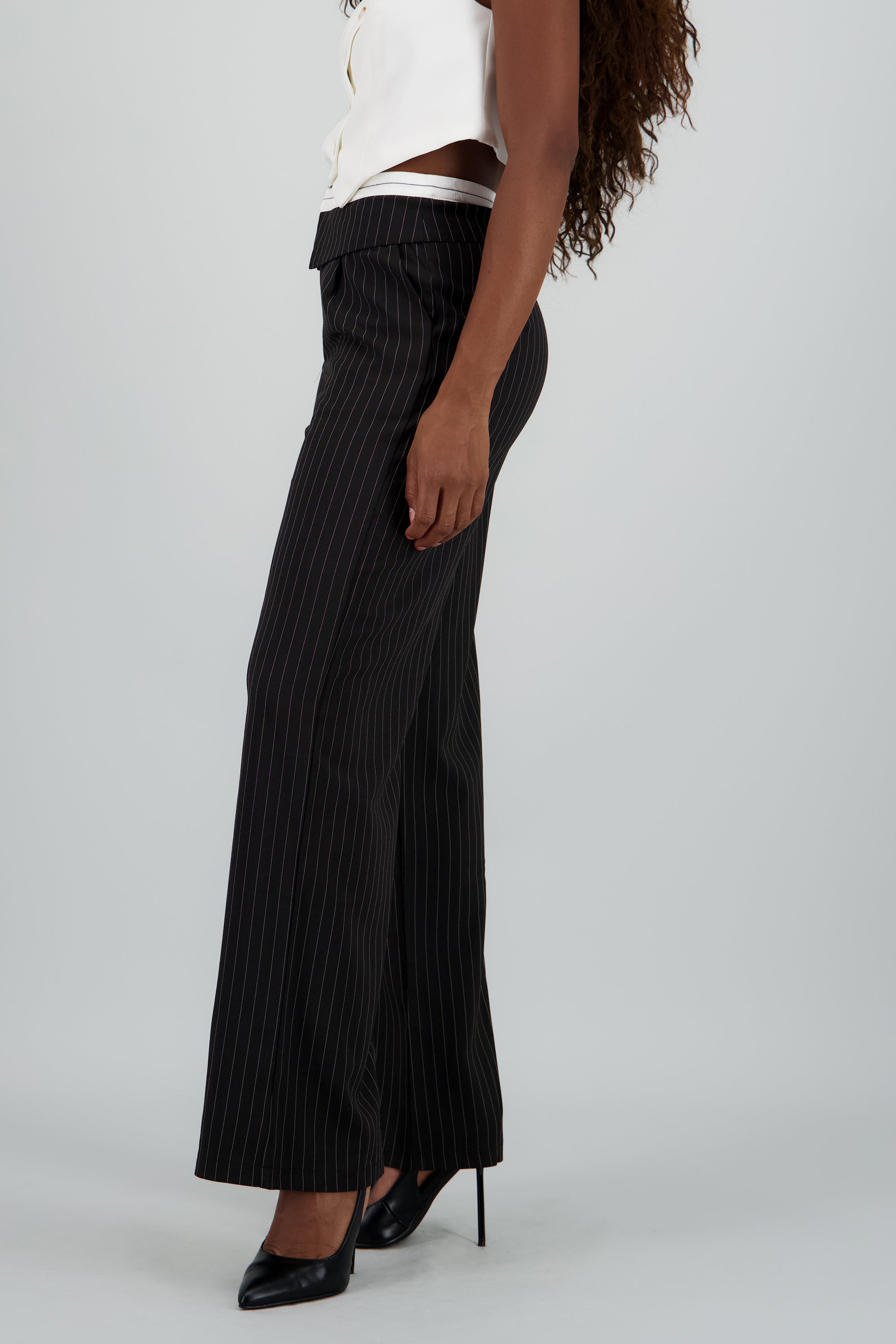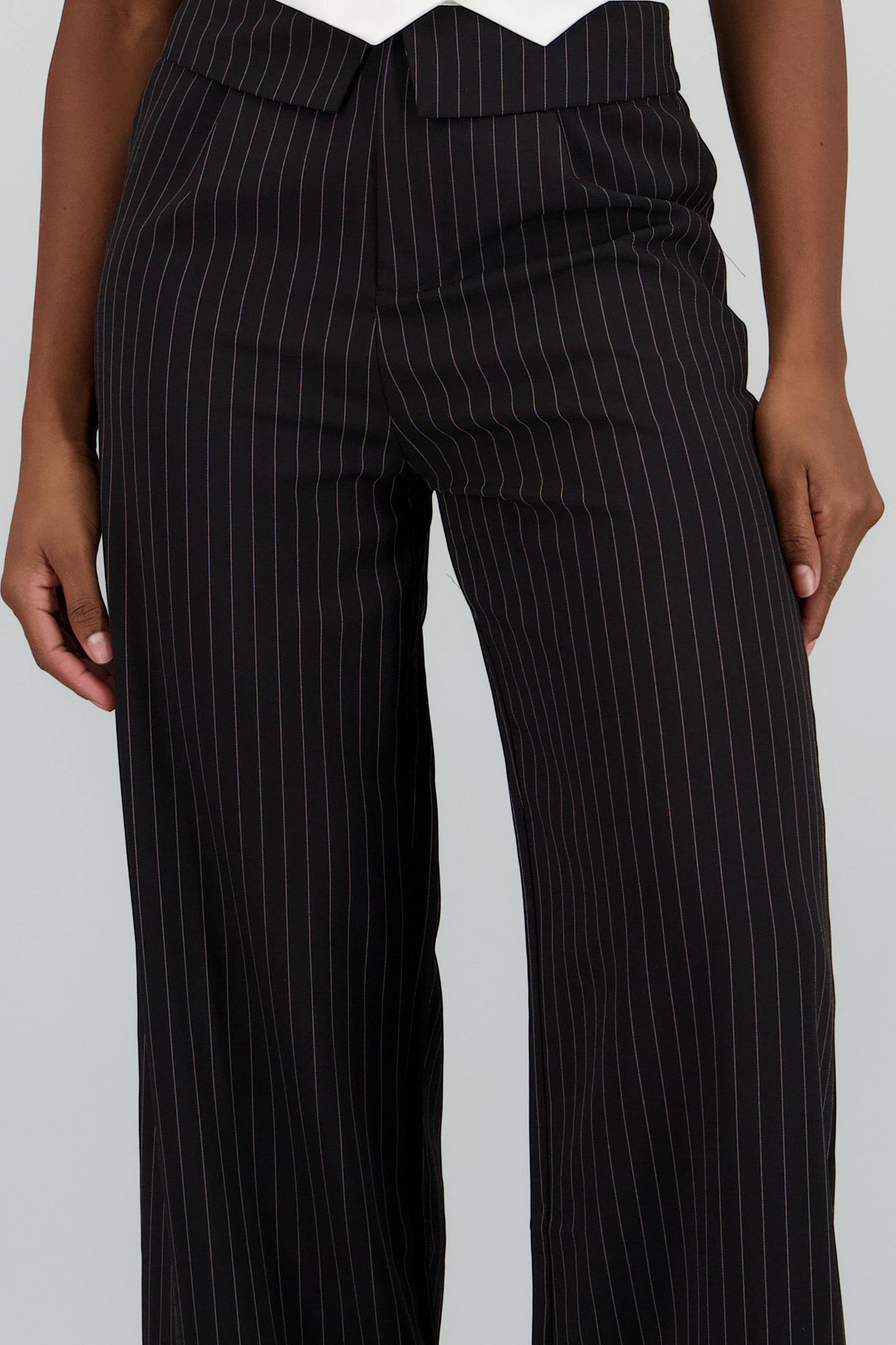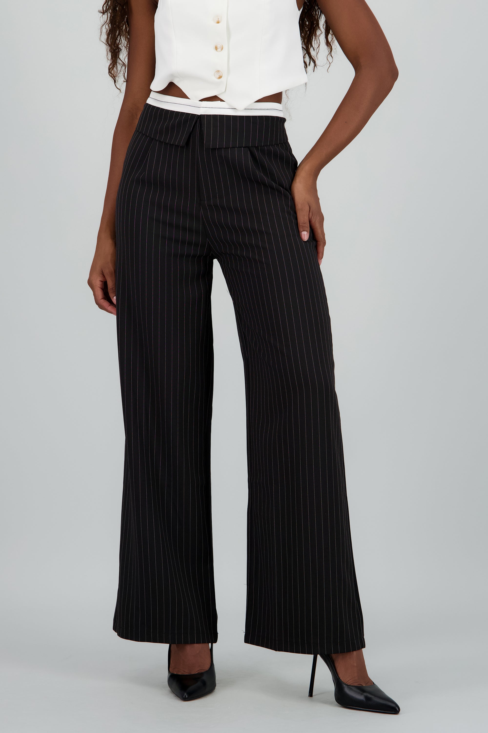Pantalón sastre con pretina en contraste, corte recto y diseño de rayas.