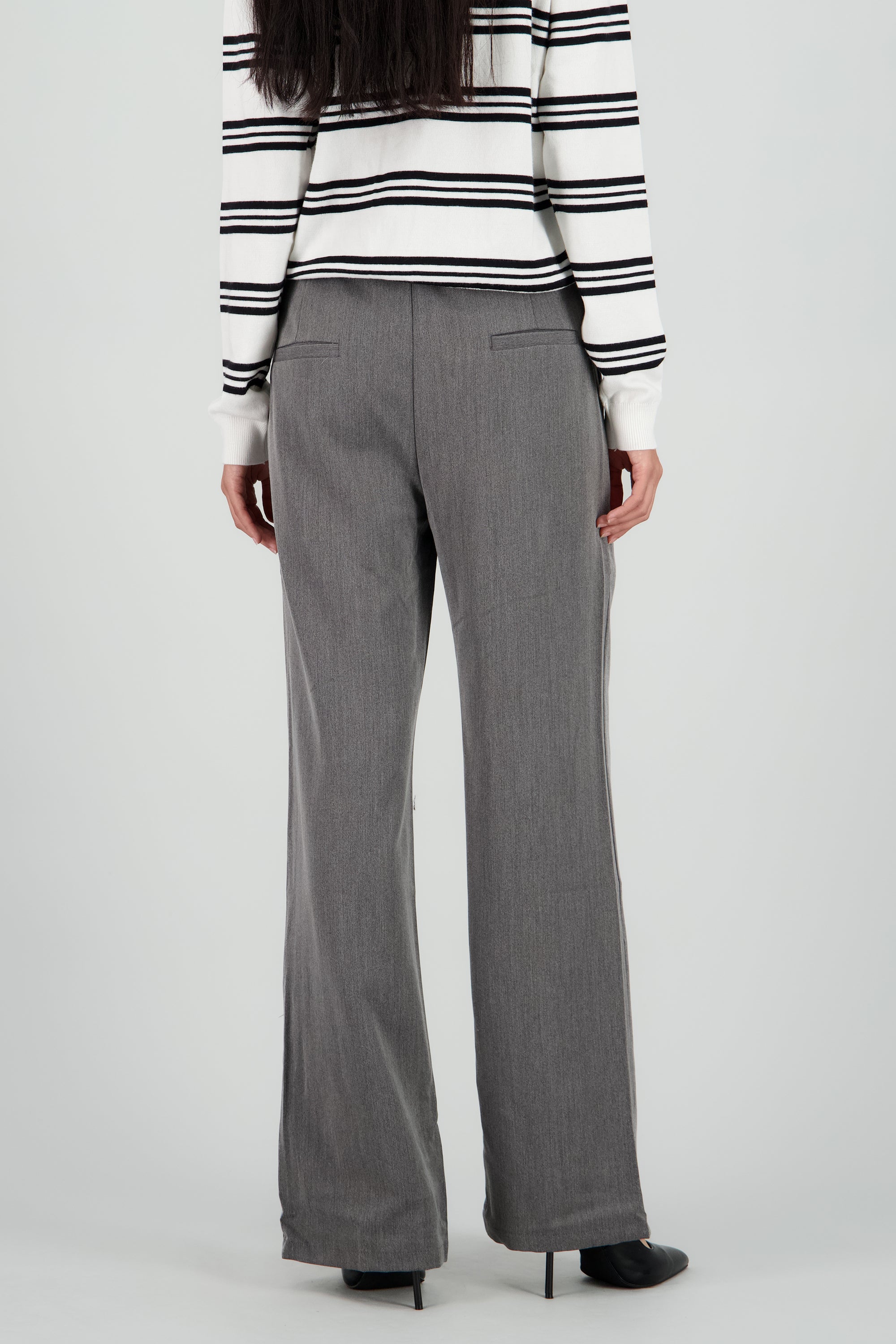 Pantalón sastreado con detalle de pinzas, corte recto, cierre de cremallera y bolsas laterales.