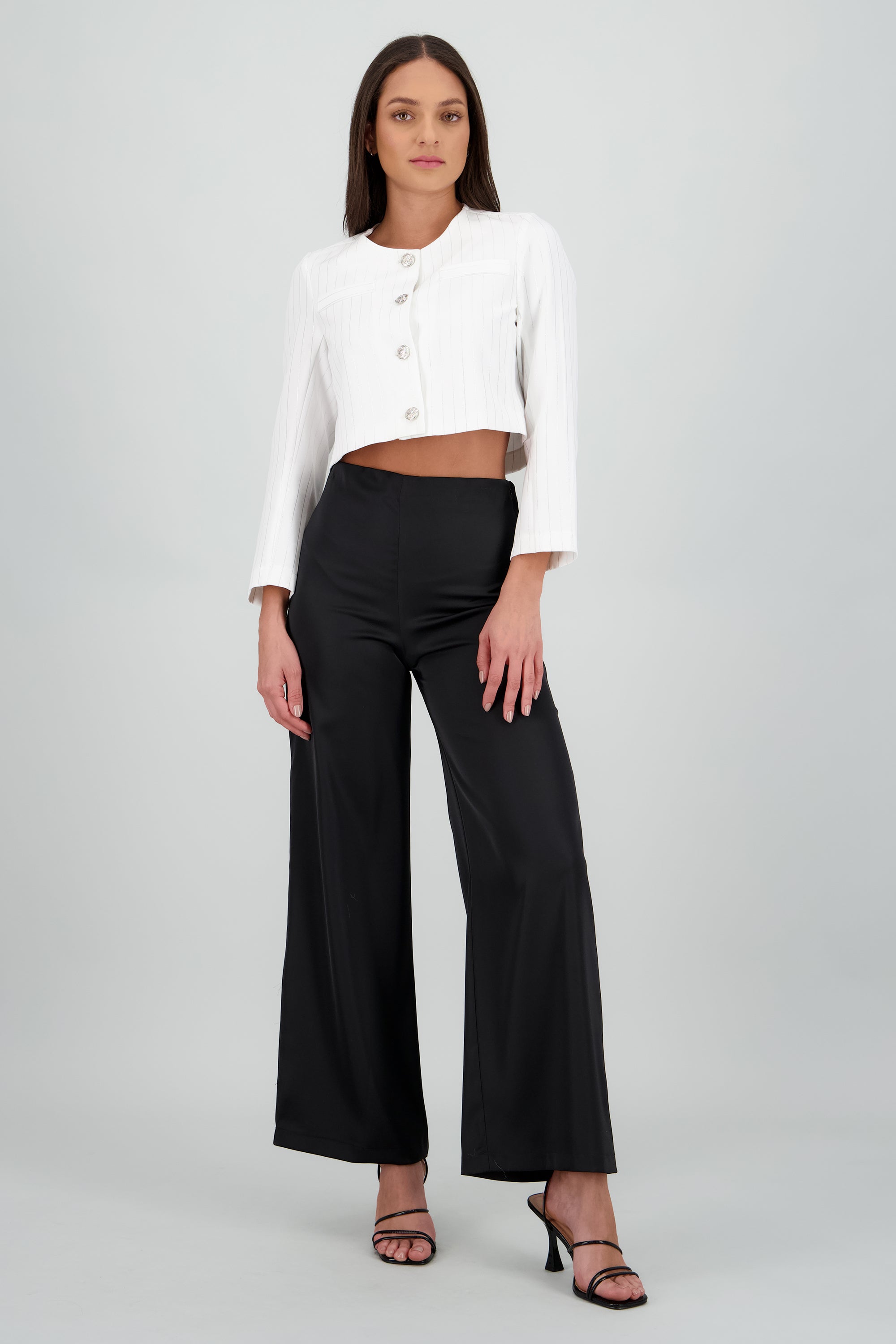 Pantalón satinado high waisted de corte recto, tiro alto, caída fluida y cierre lateral.