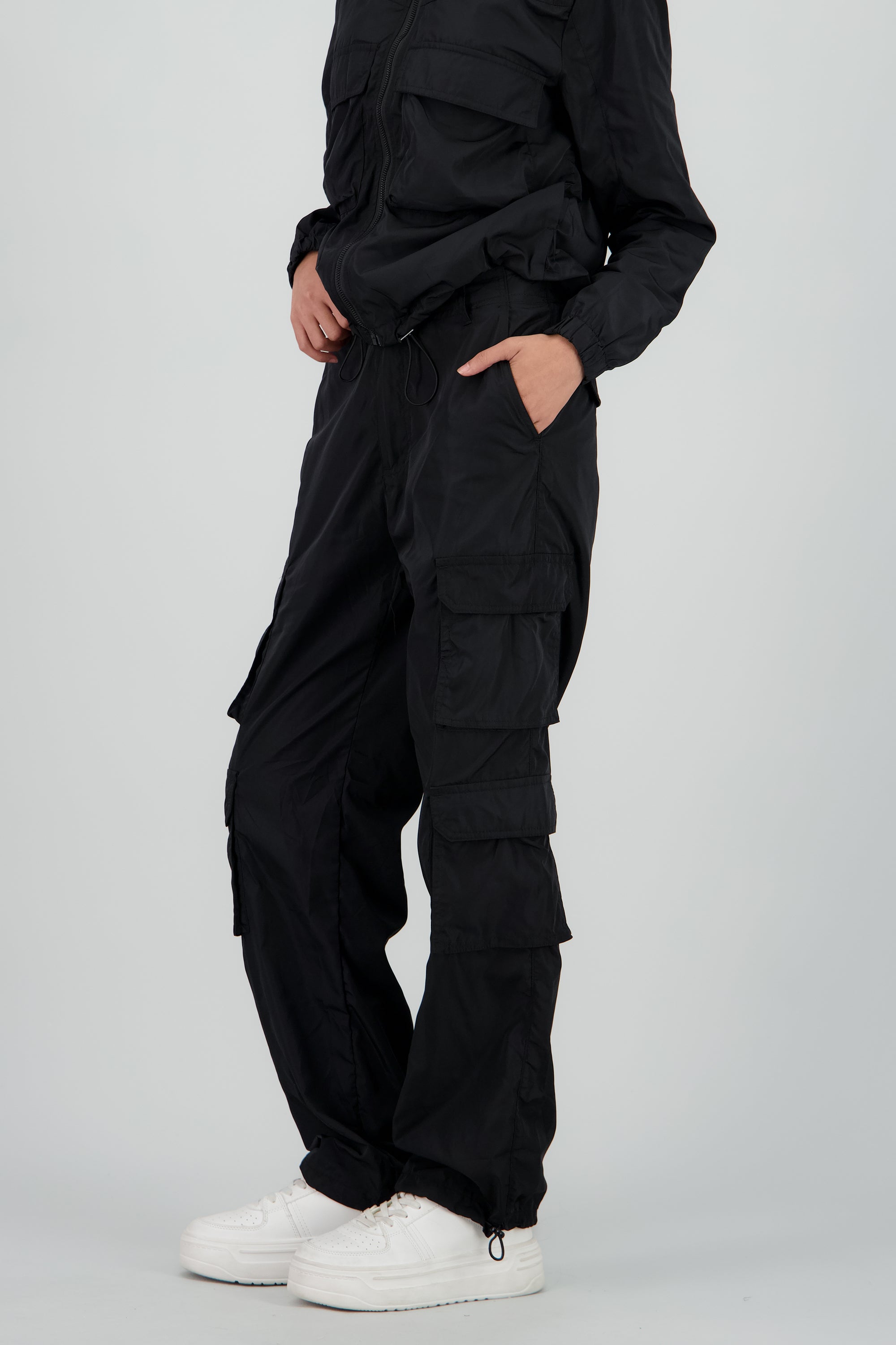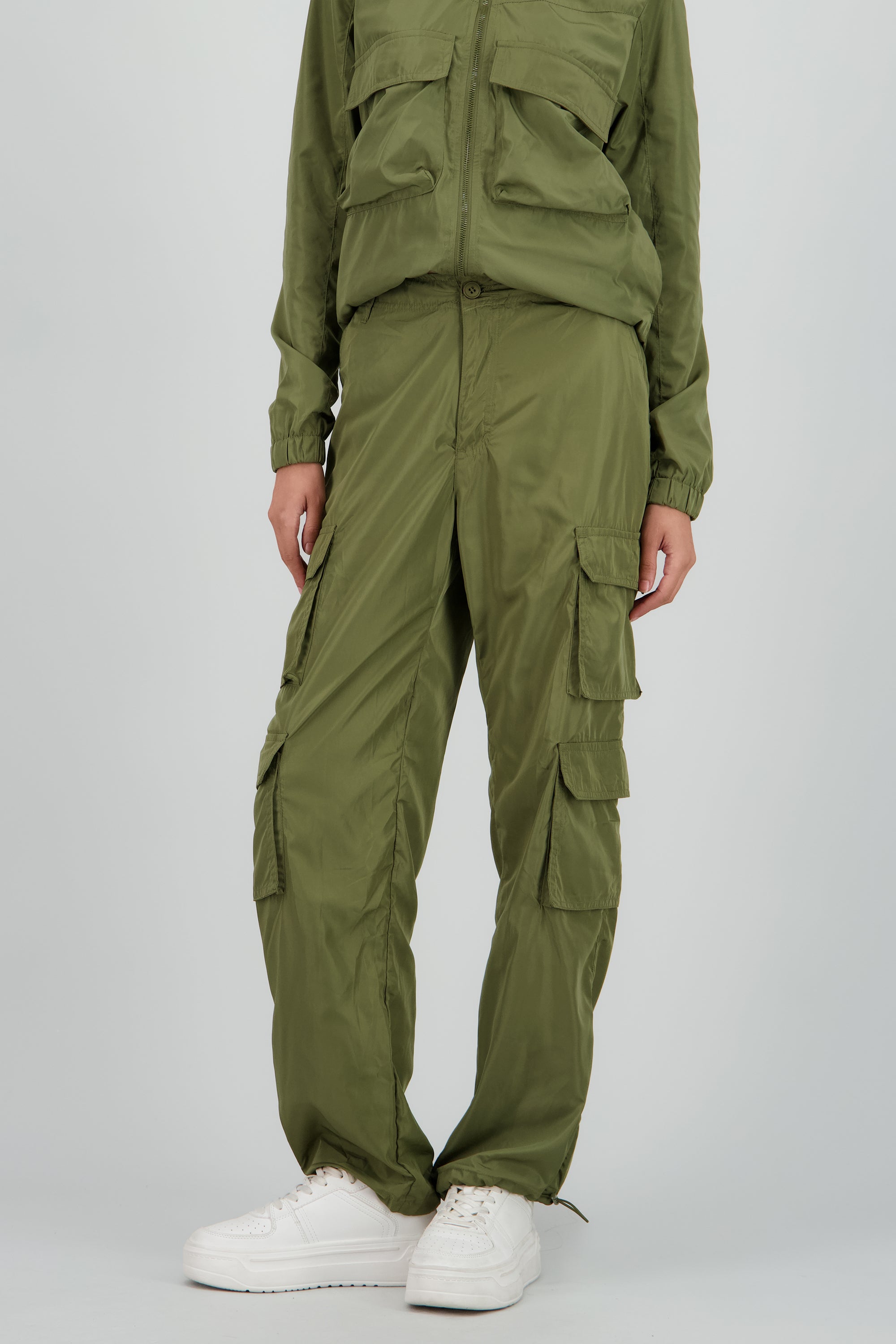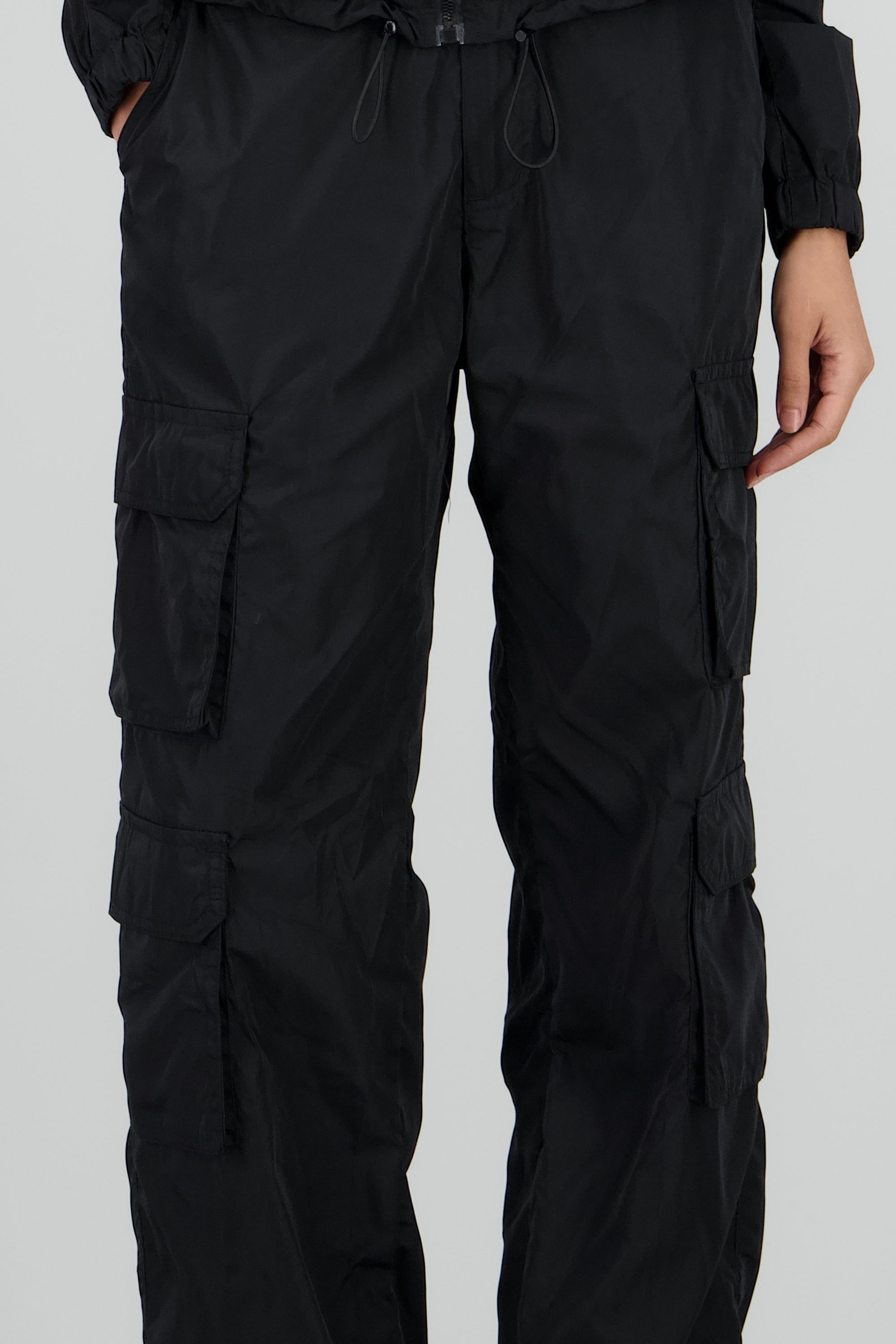 Pants tipo parachute con bolsas cargo, corte cómodo y fluido.