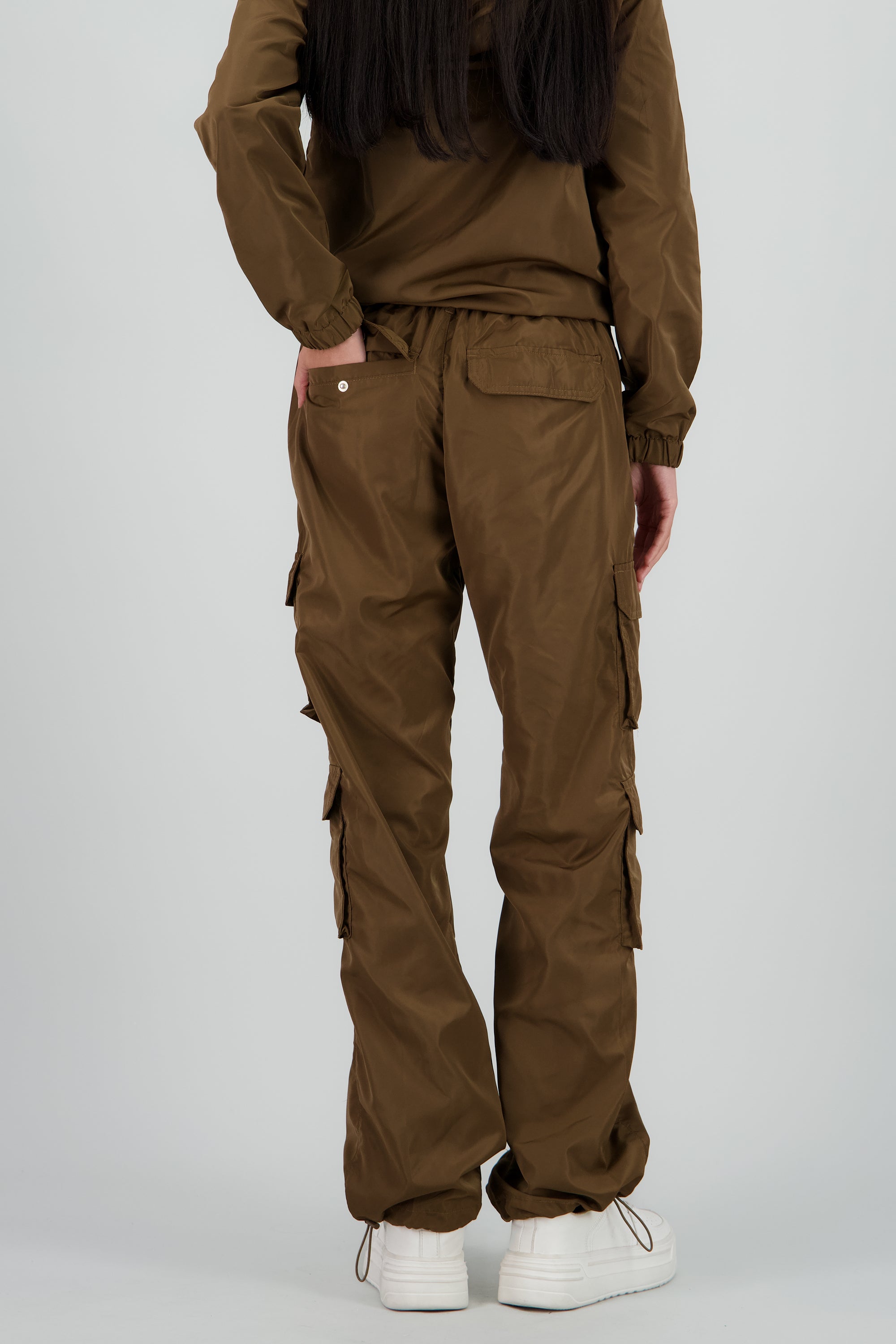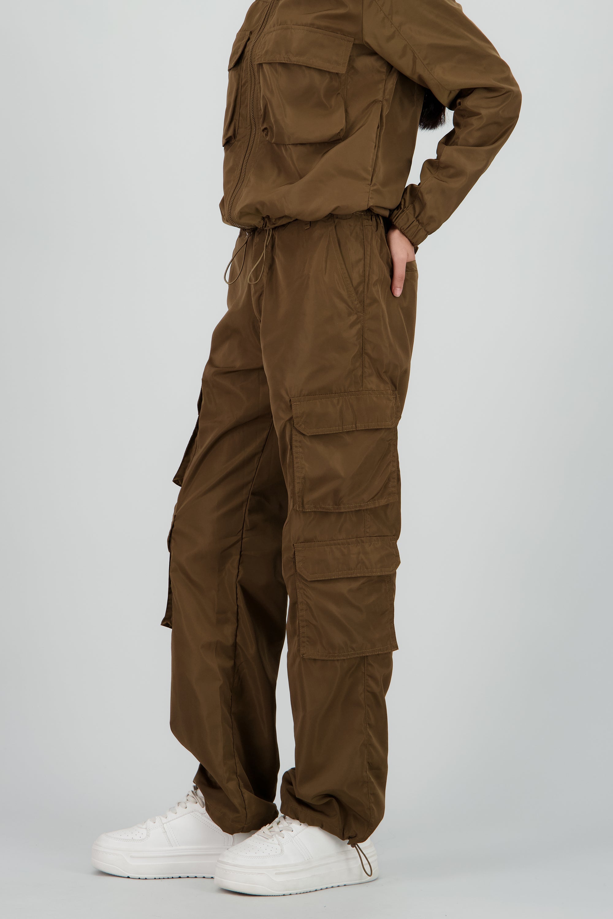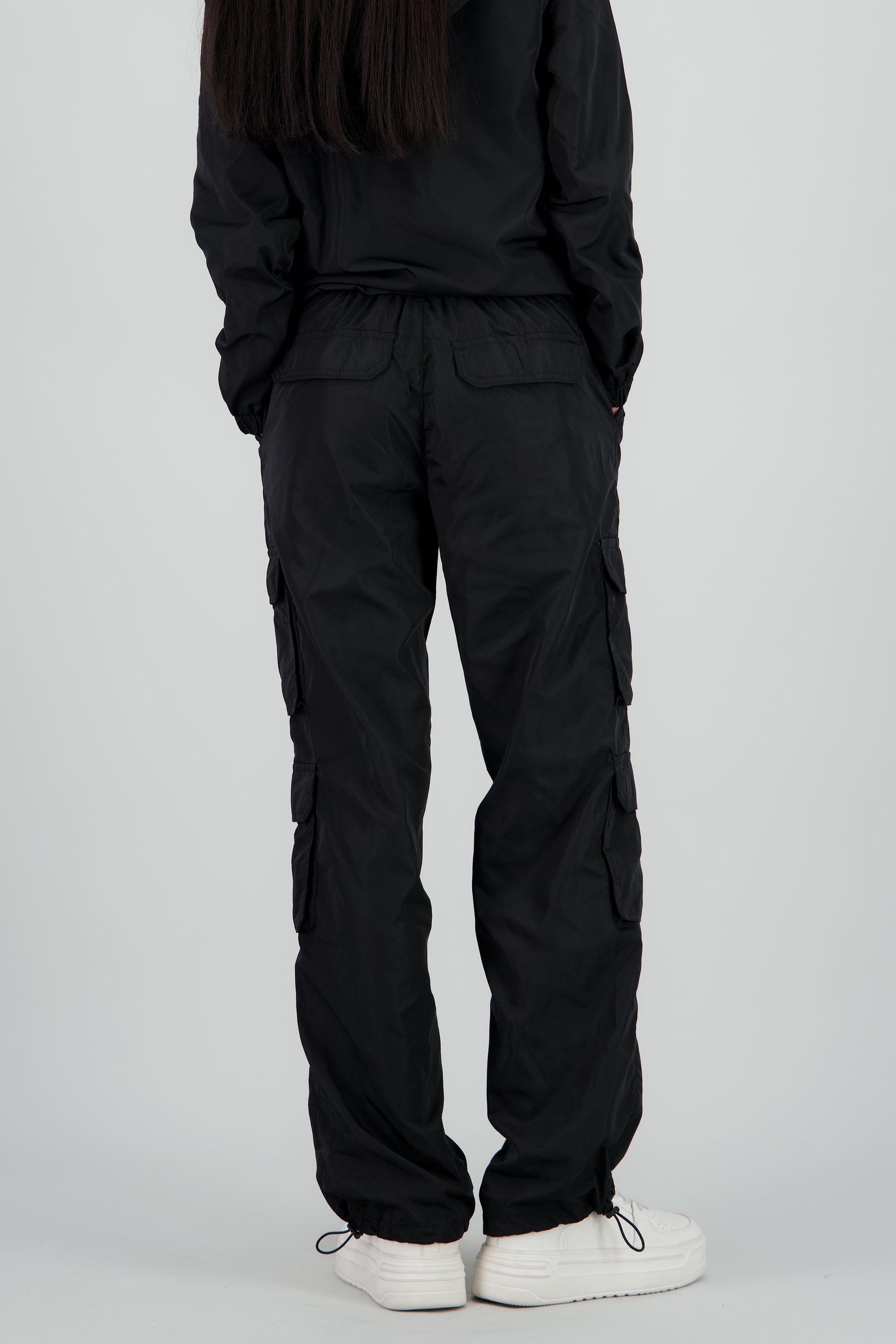 Pants tipo parachute con bolsas cargo, corte cómodo y fluido.