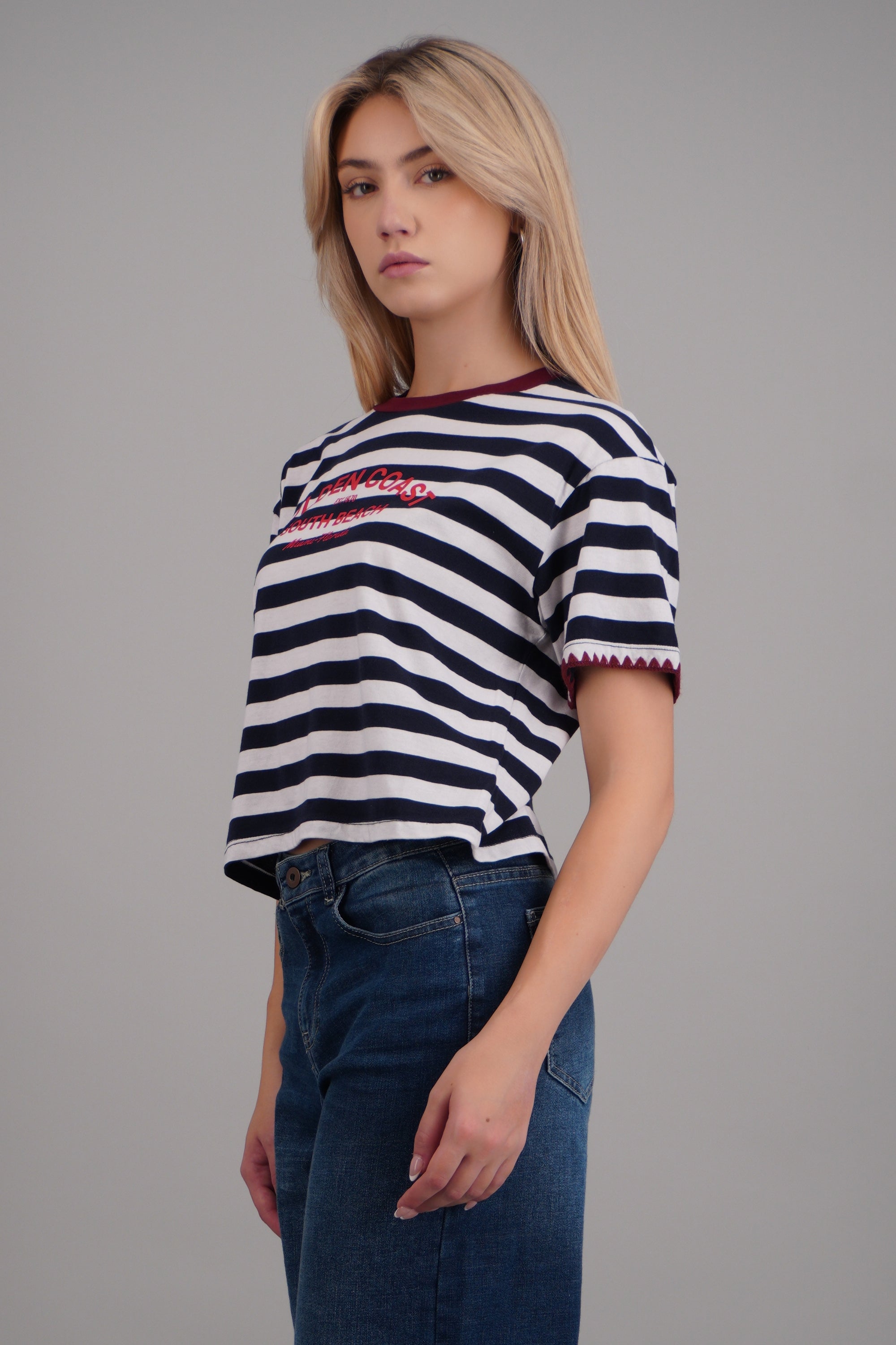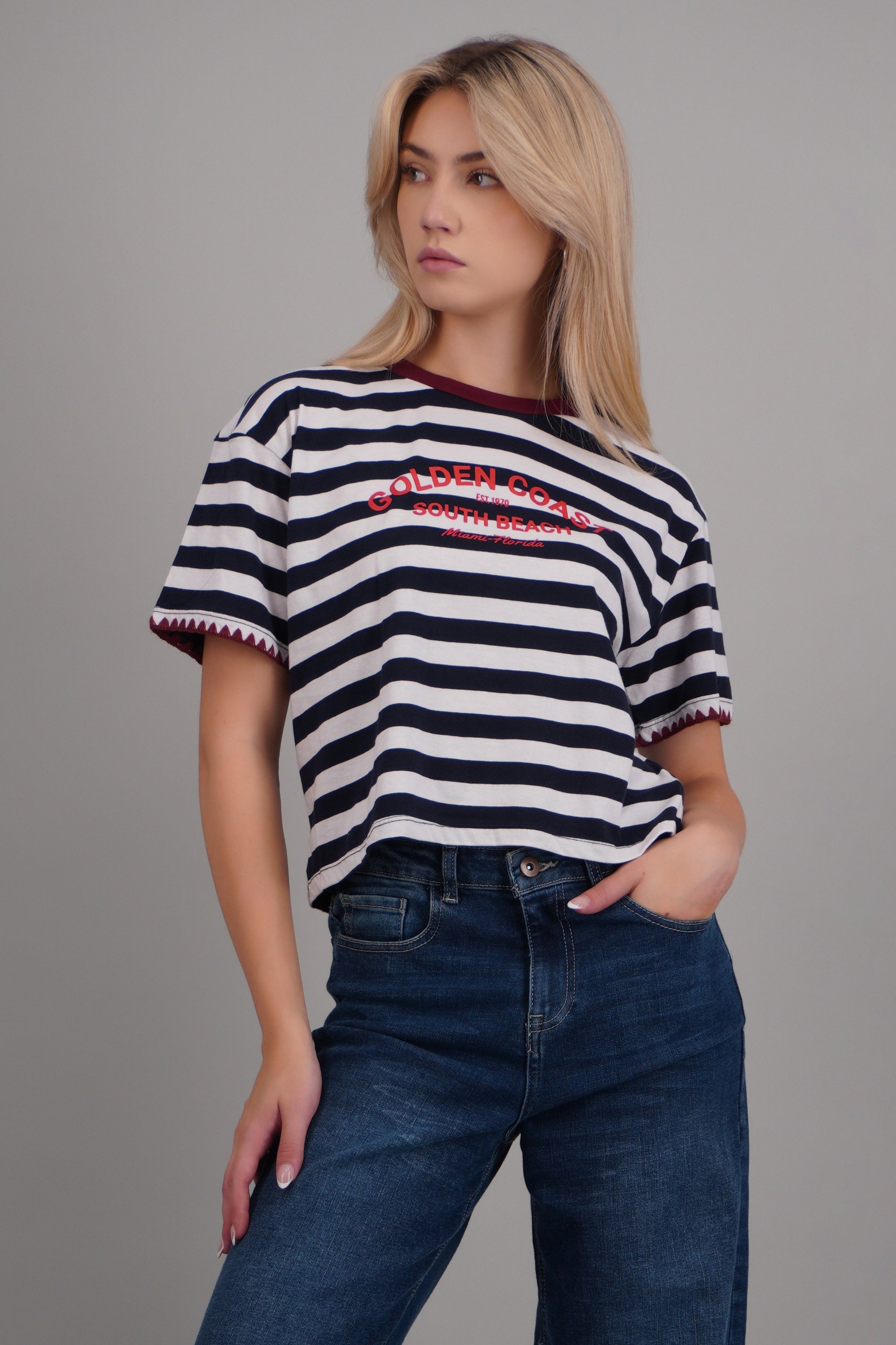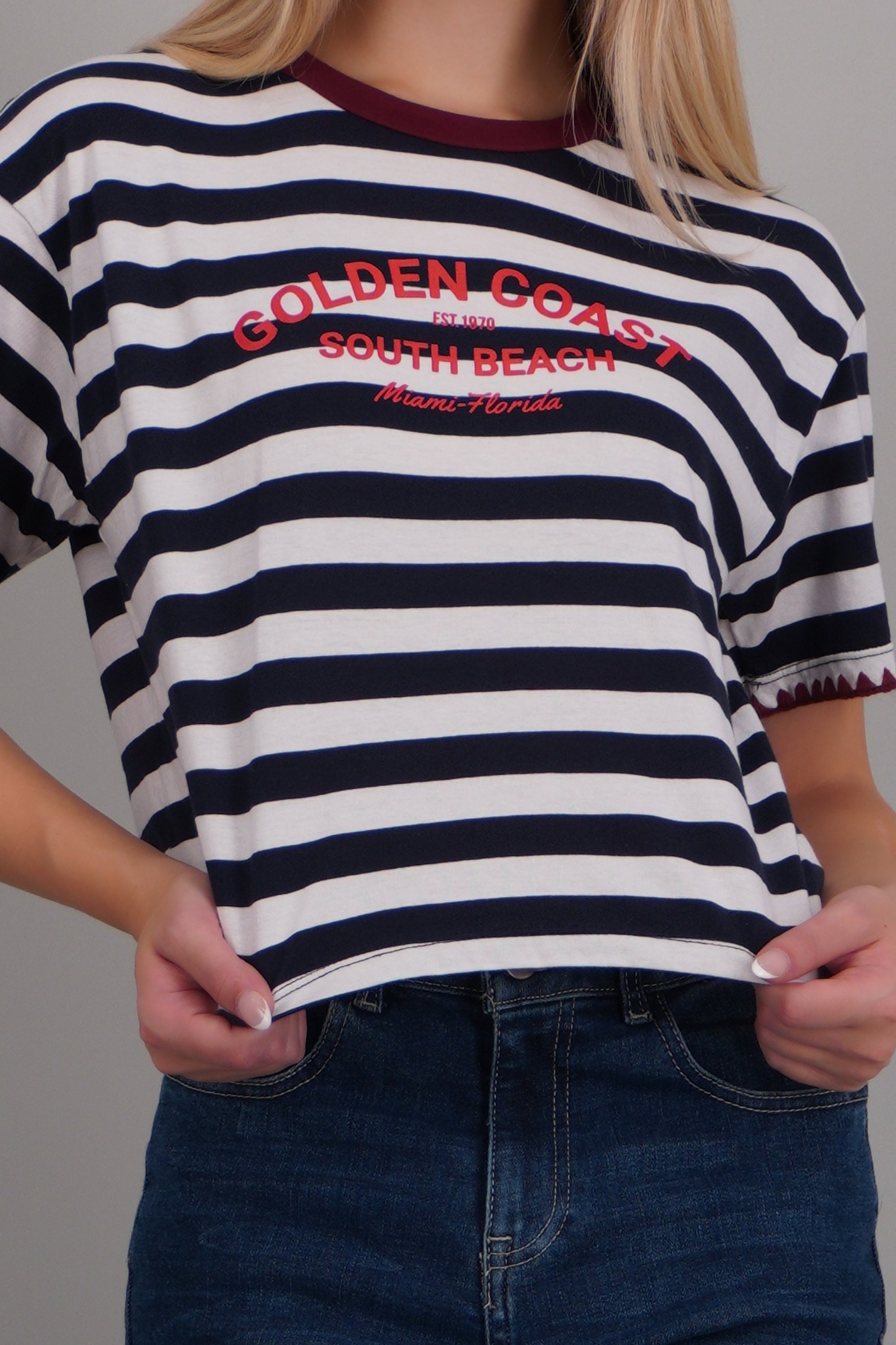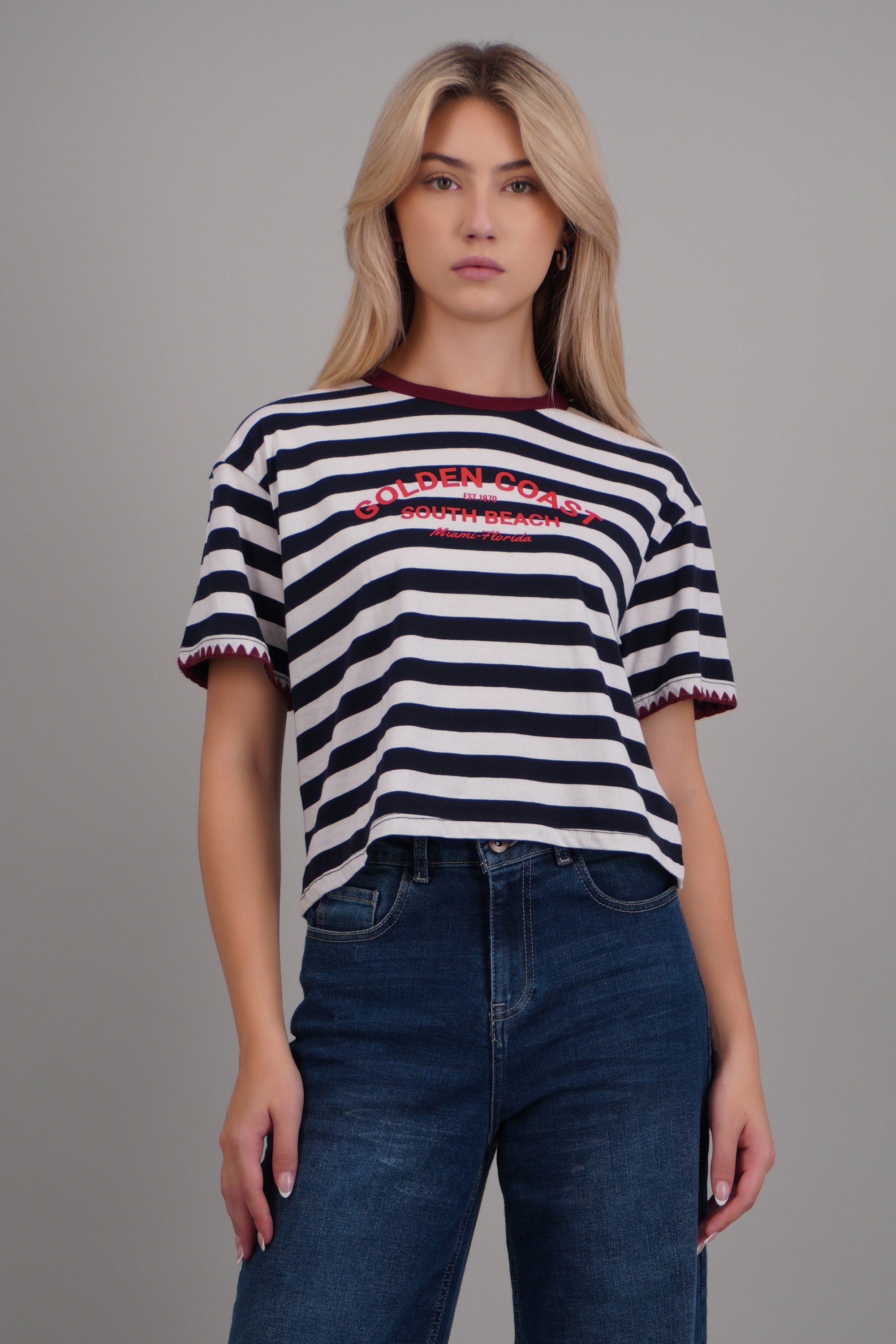 Playera golden coast rayas detalle bordado