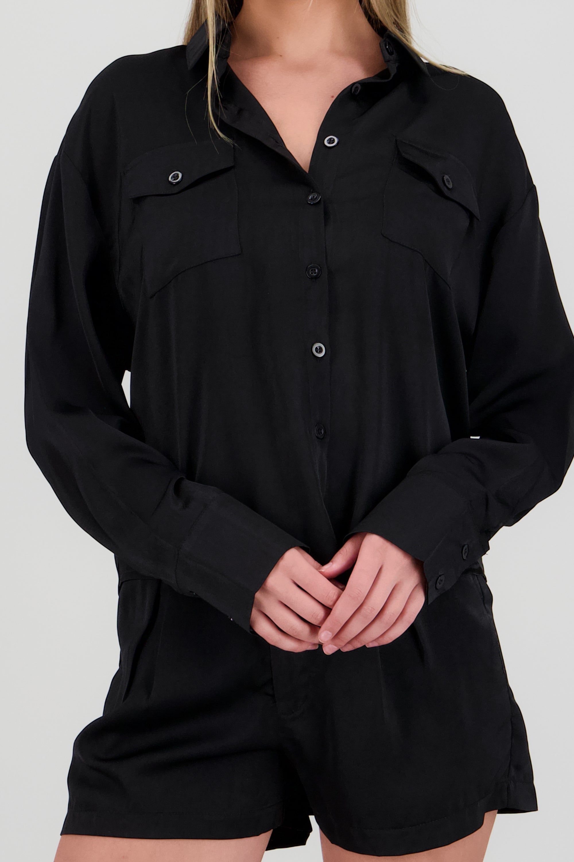 Shorts con pinzas en la parte frontal, corte regular, bolsas laterales y cierre de cremallera.