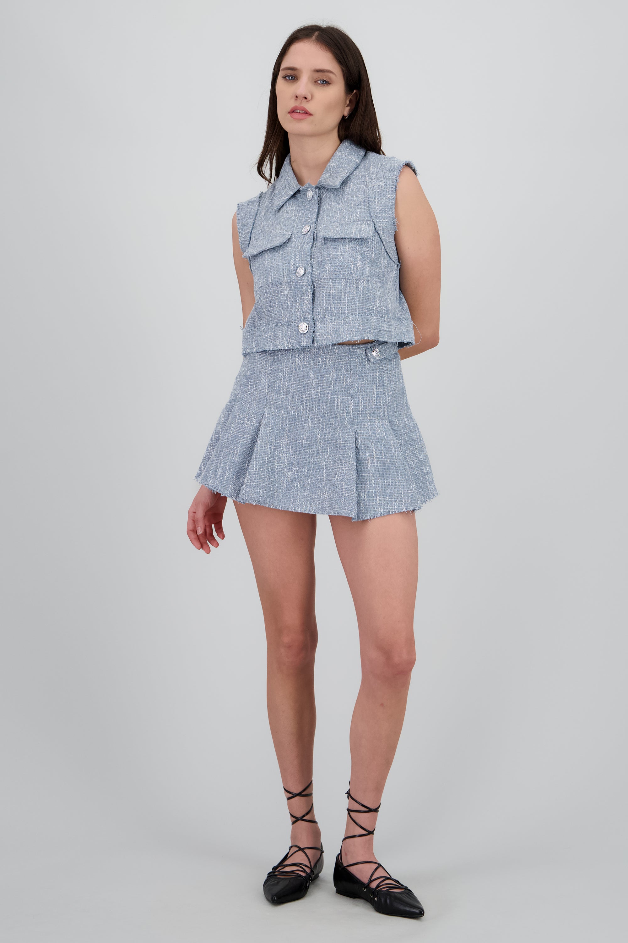 Skort de tweed con corte corto y detalle de botones en la parte frontal.