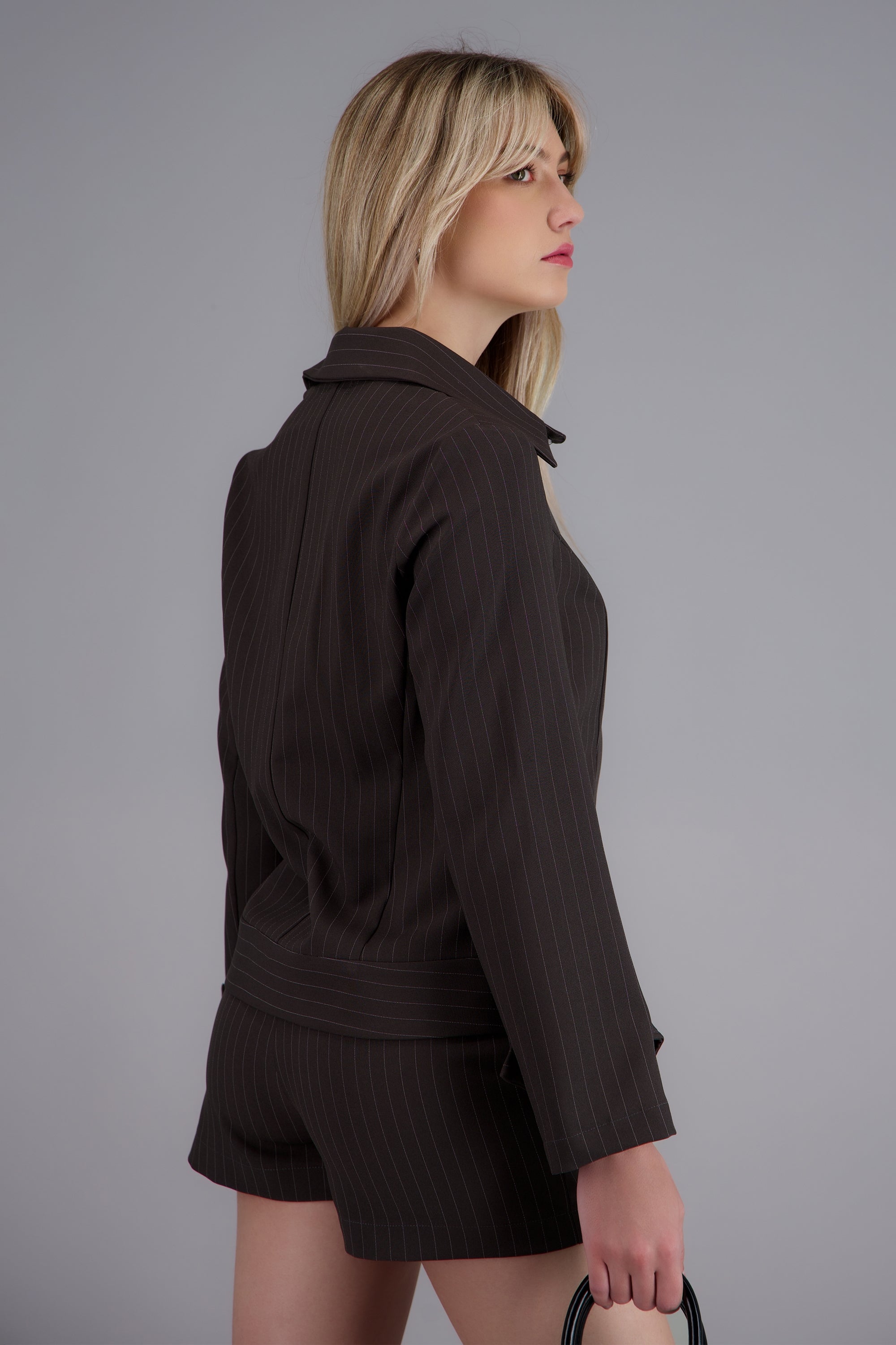 Sobrecamisa de corte ajustado, cierre frontal de botones y diseño de rayas en contraste
