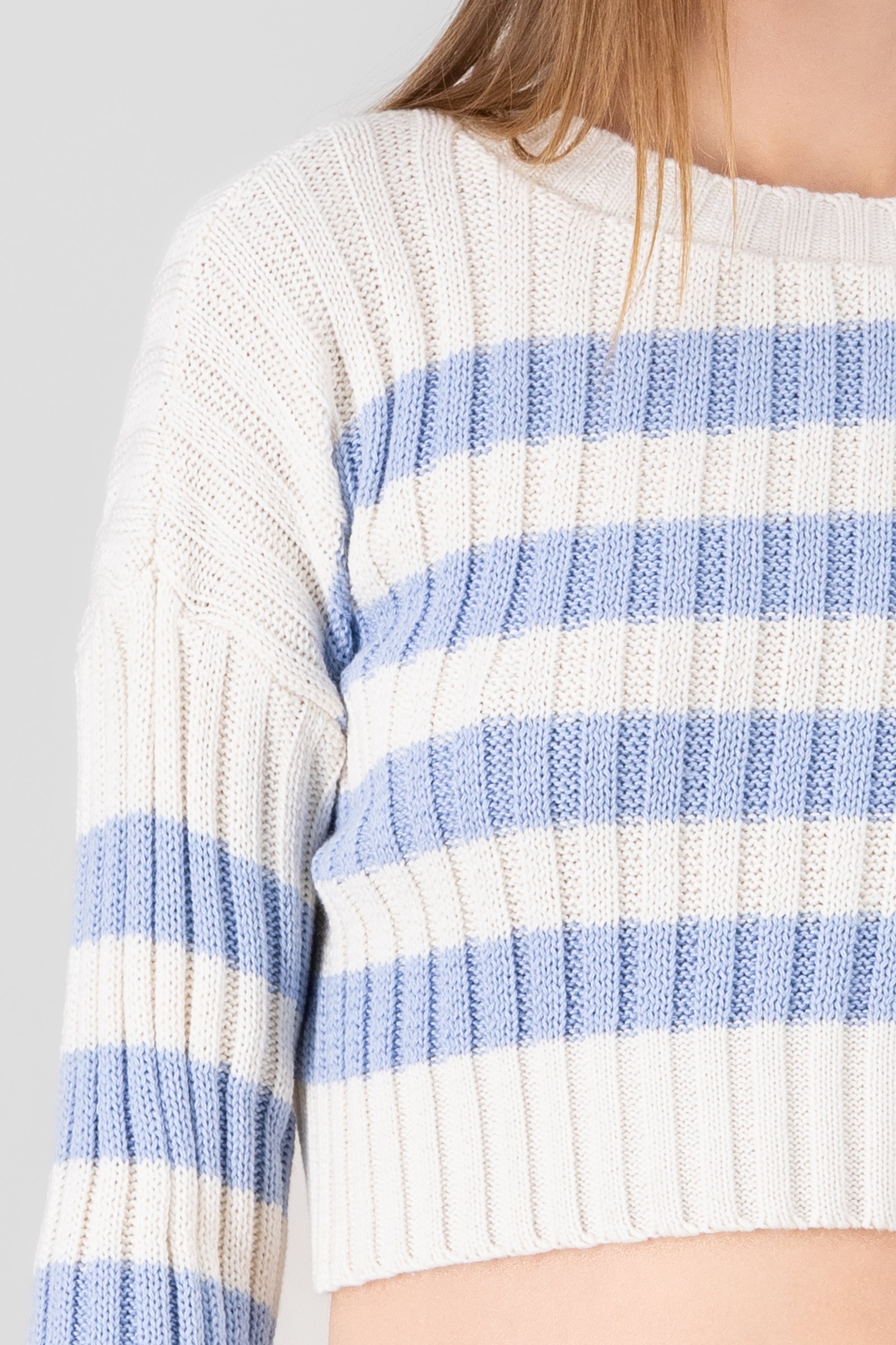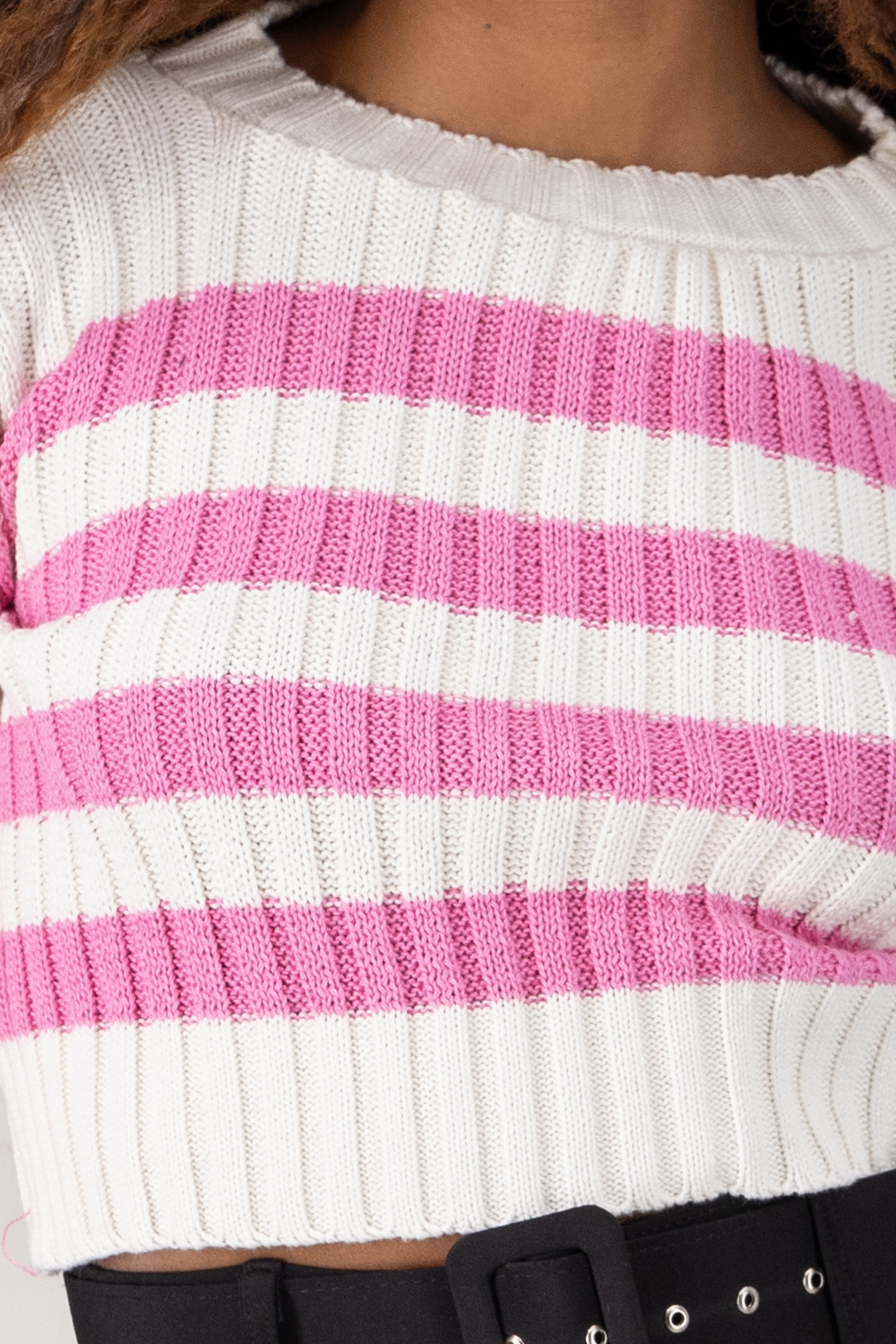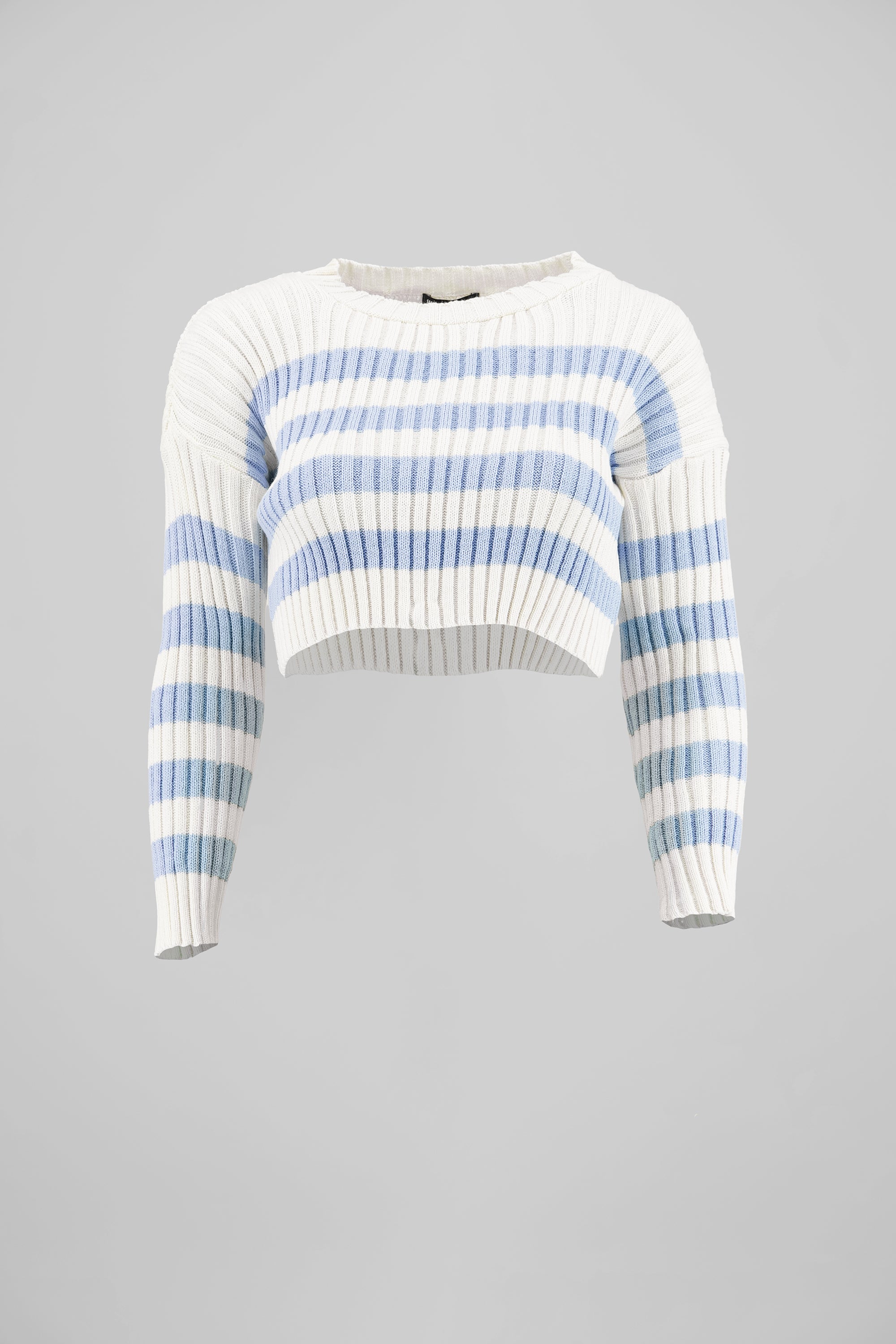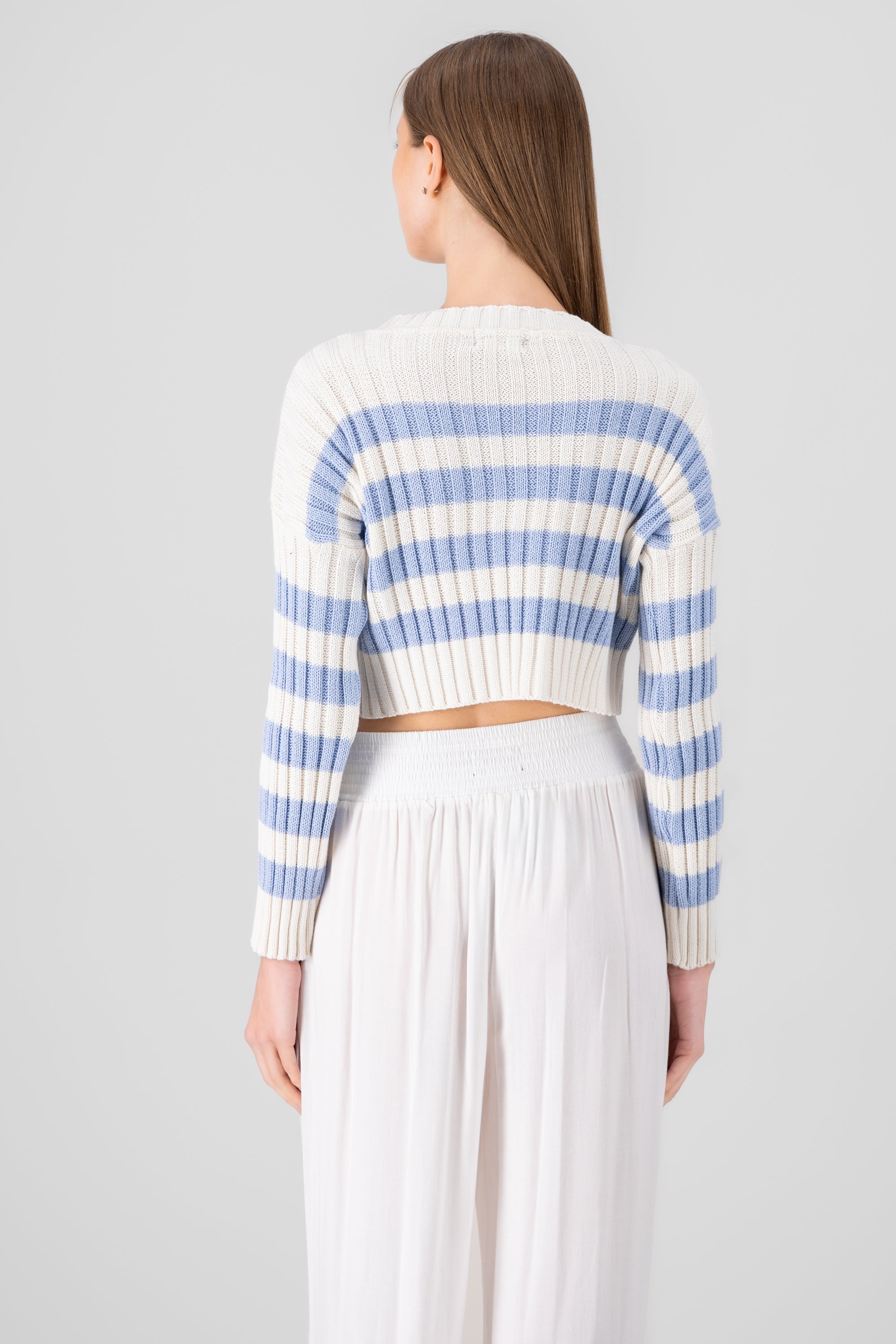 No dejes pasar la oportunidad de lucir a la moda y sentirte cómoda con nuestro suéter crop rayas bicolor. ¡Hazte con el tuyo ahora!