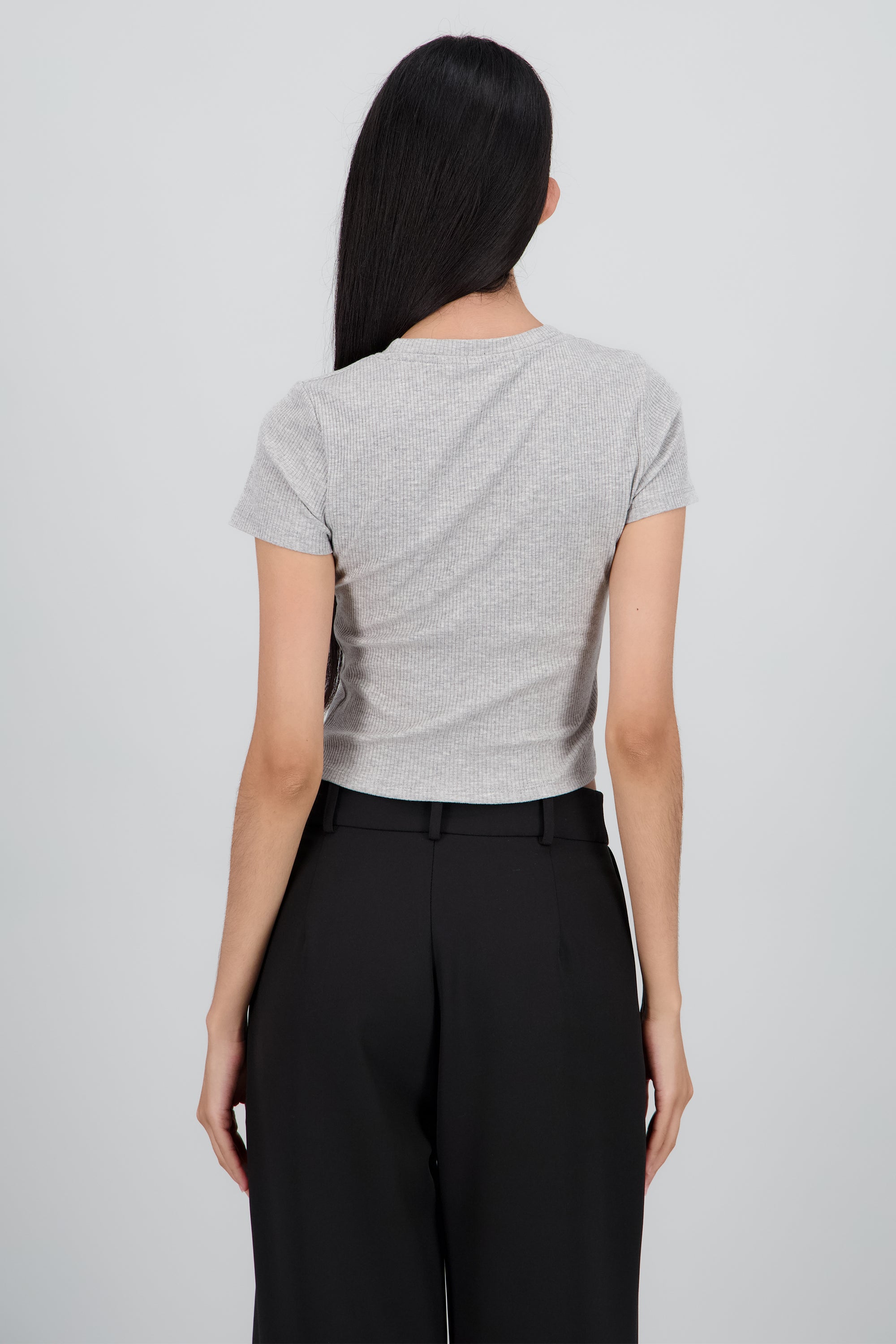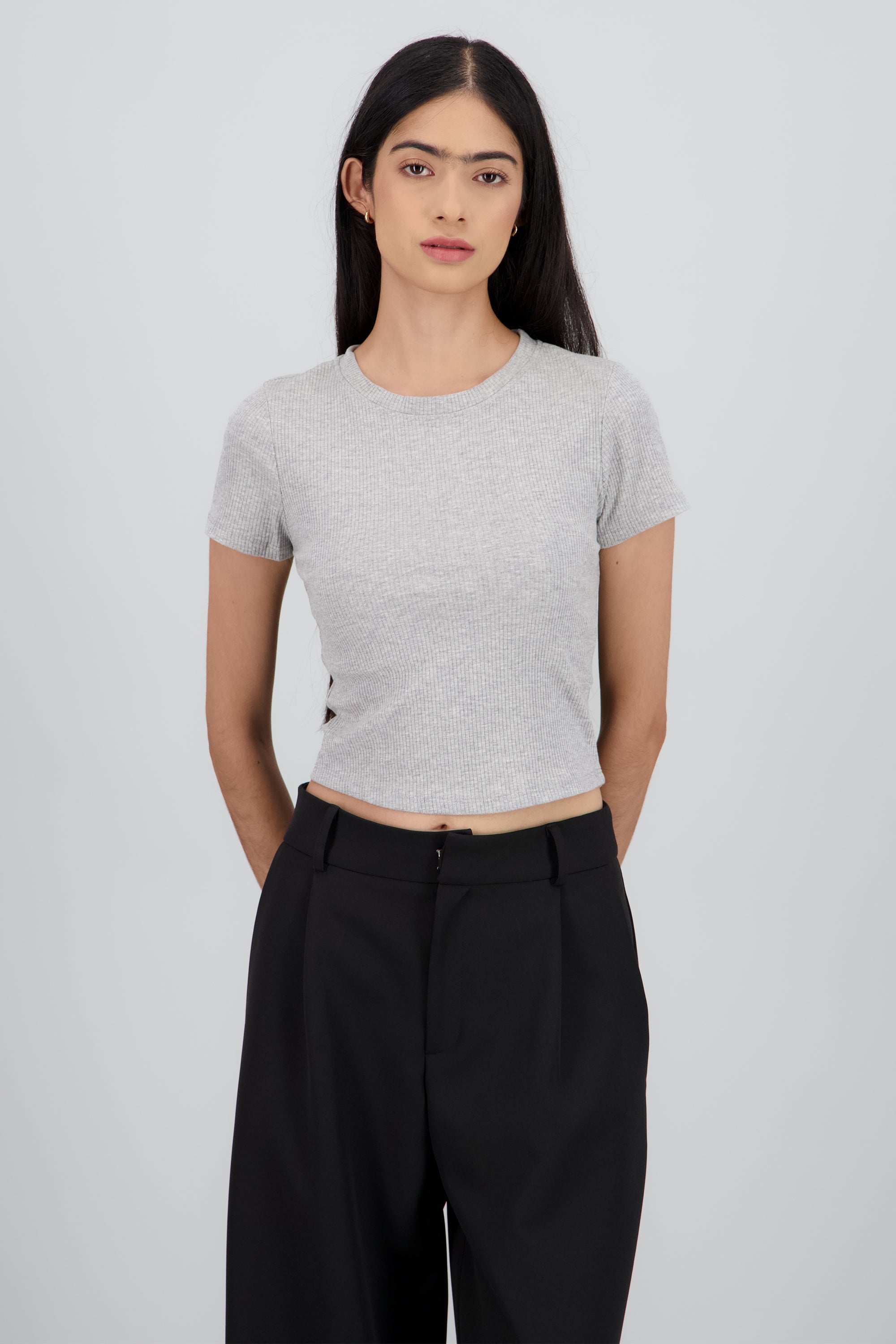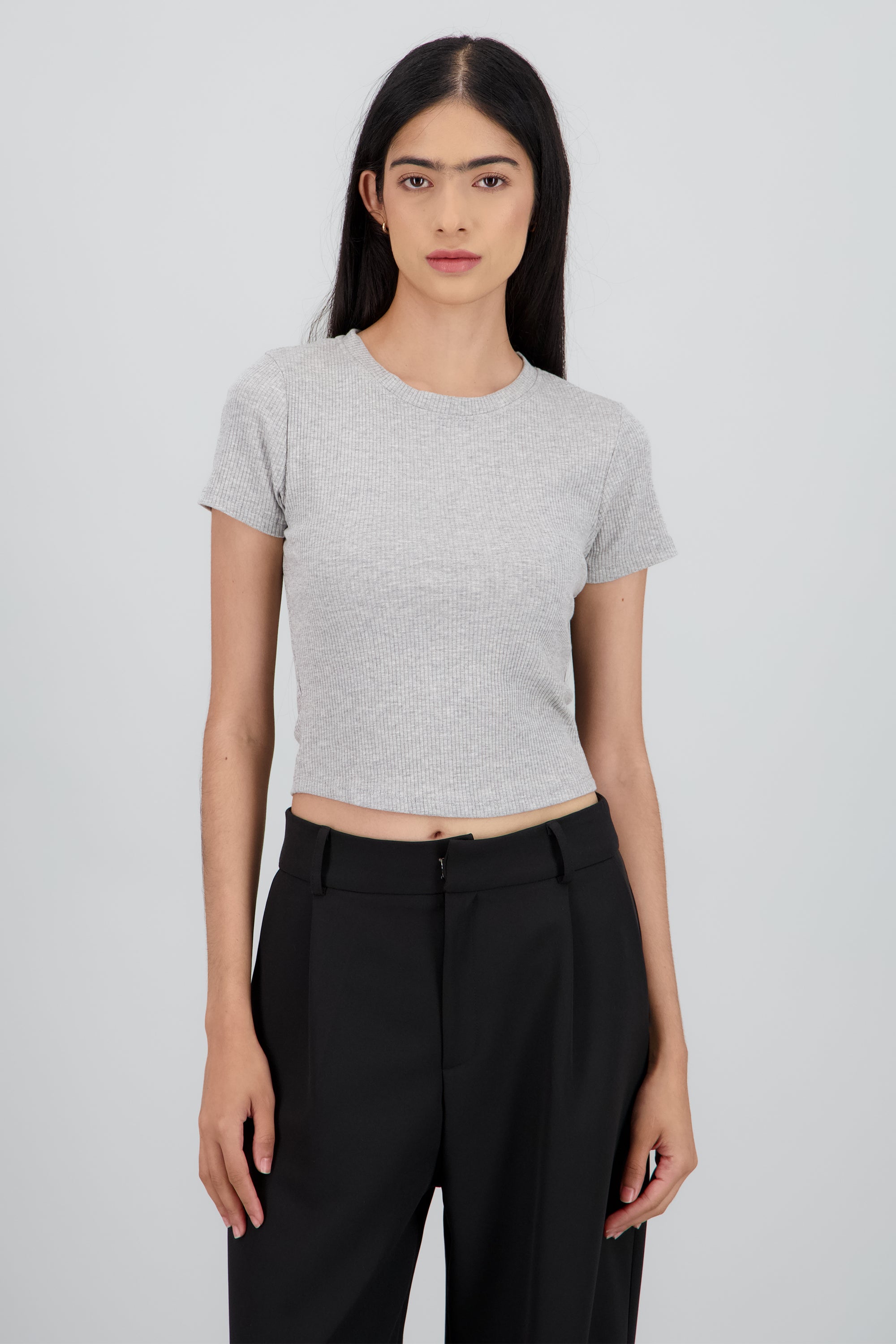 Top básico de punto liso, manga corta y corte ajustado.