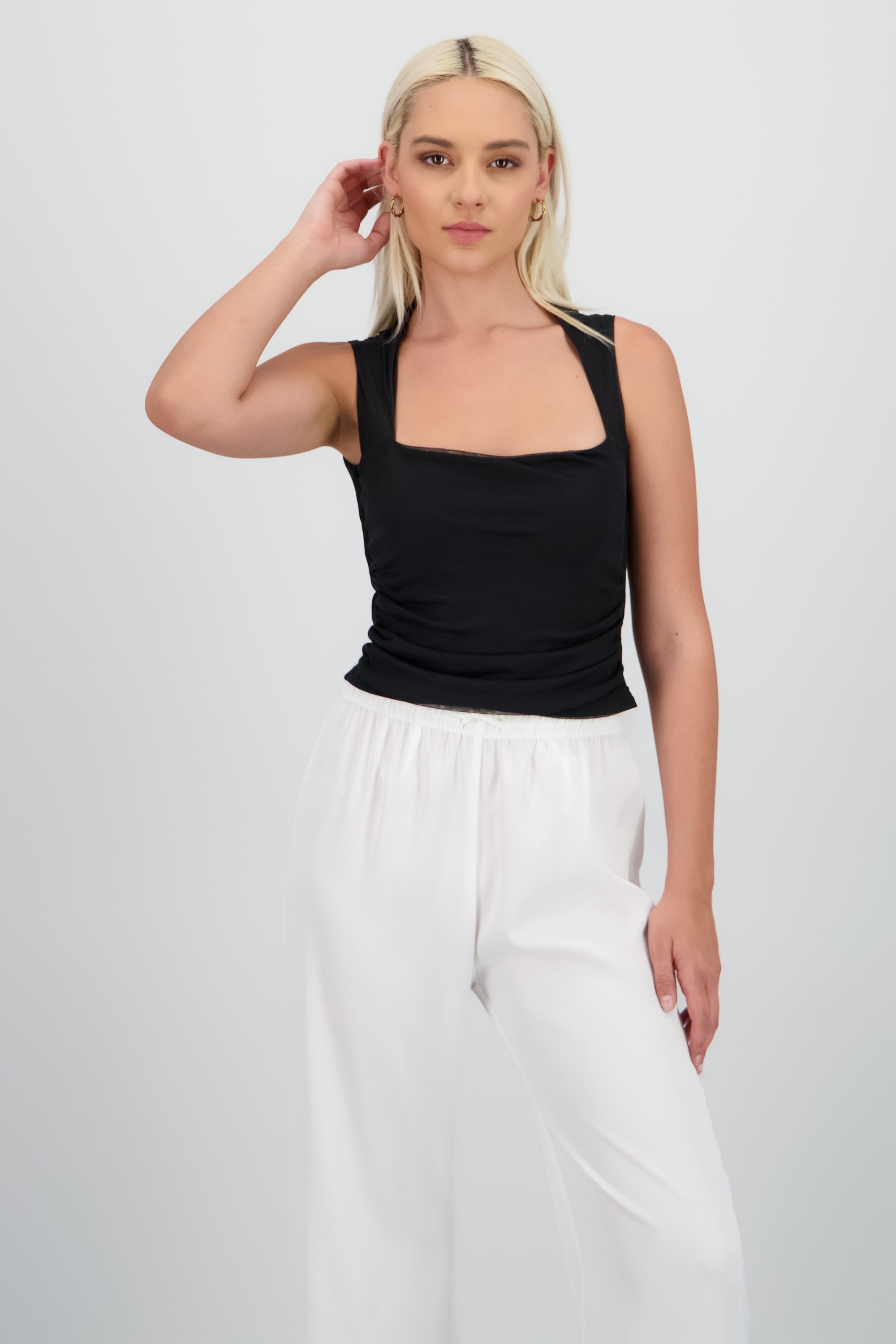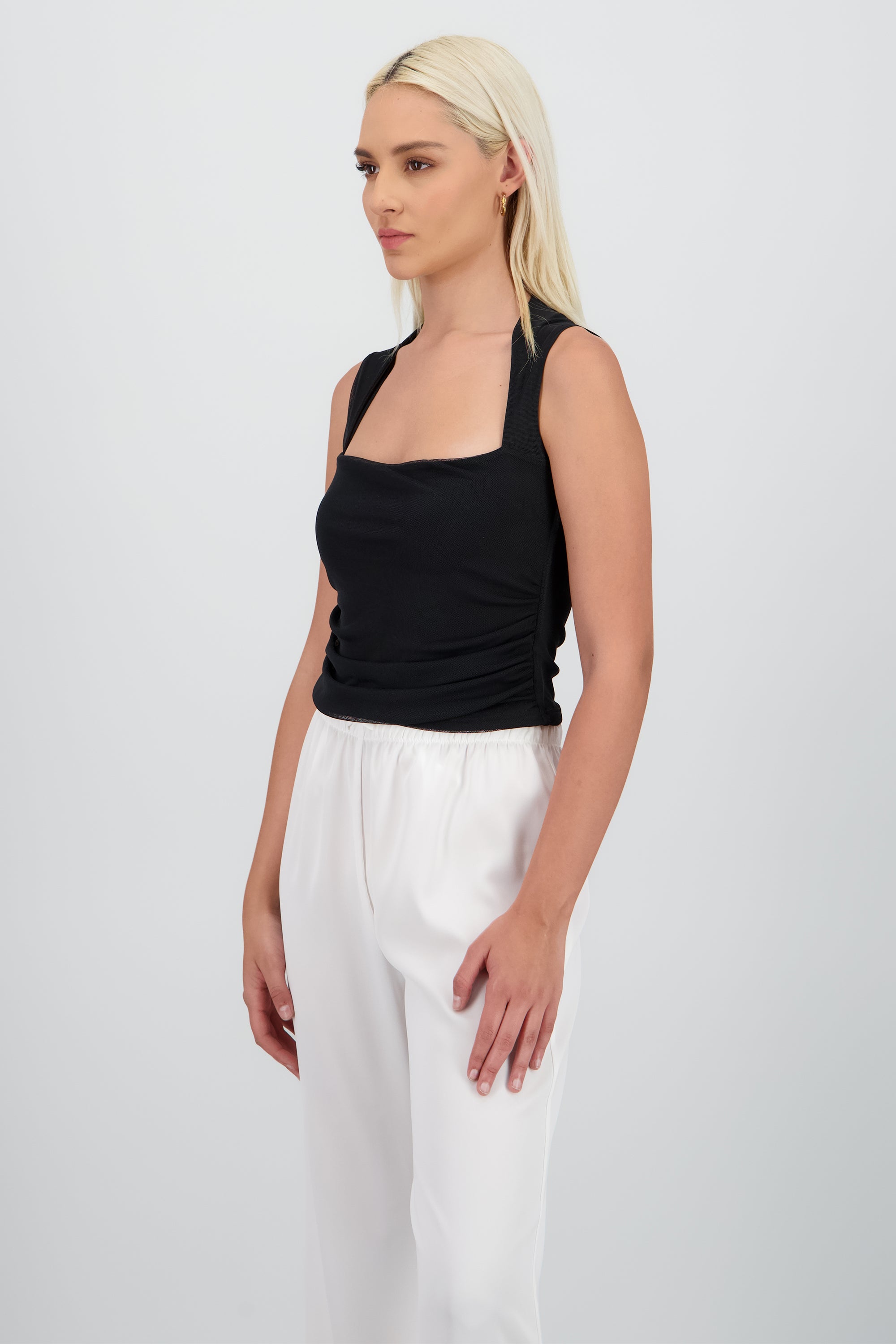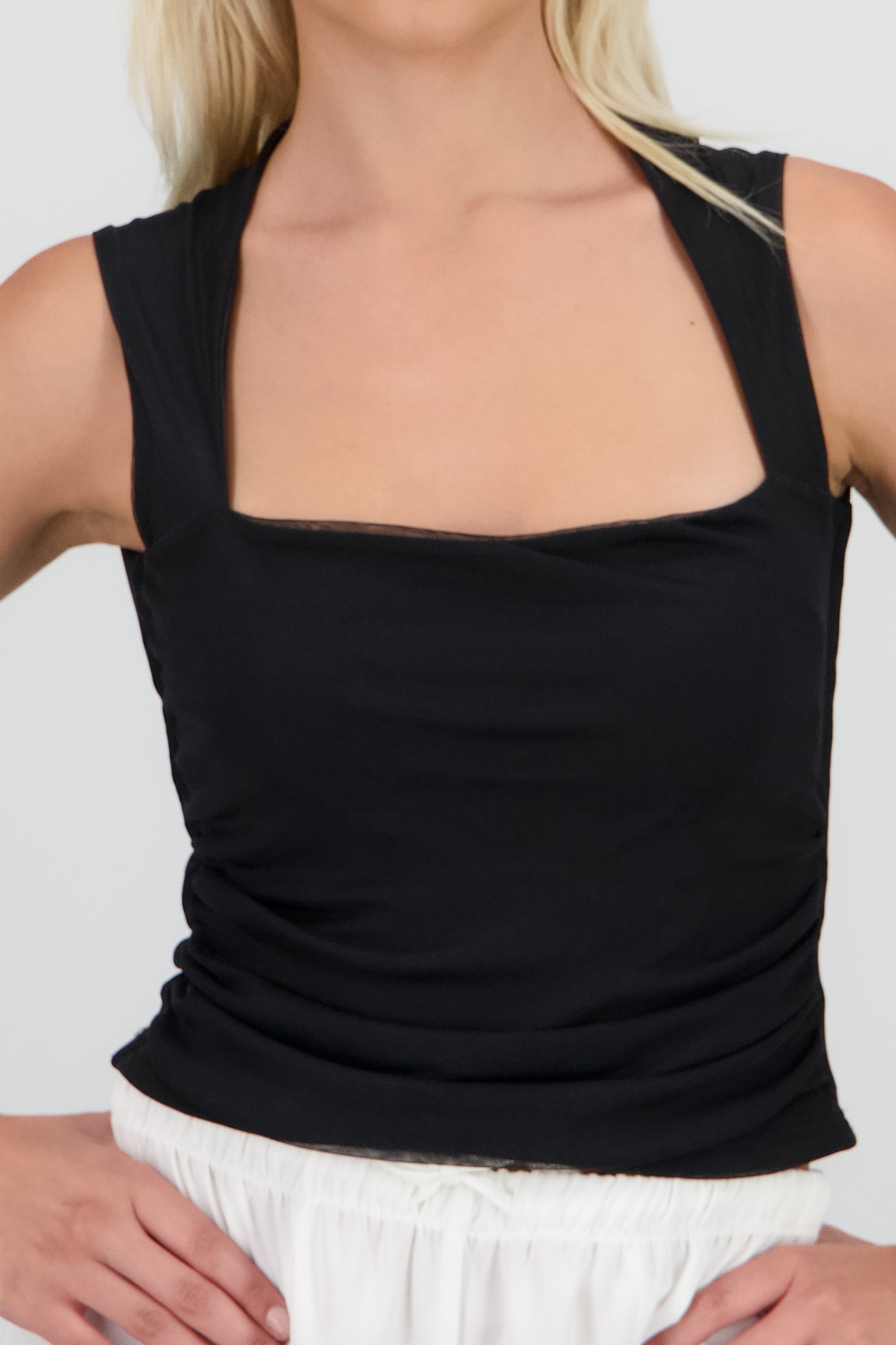 Top crop sin manga mesh