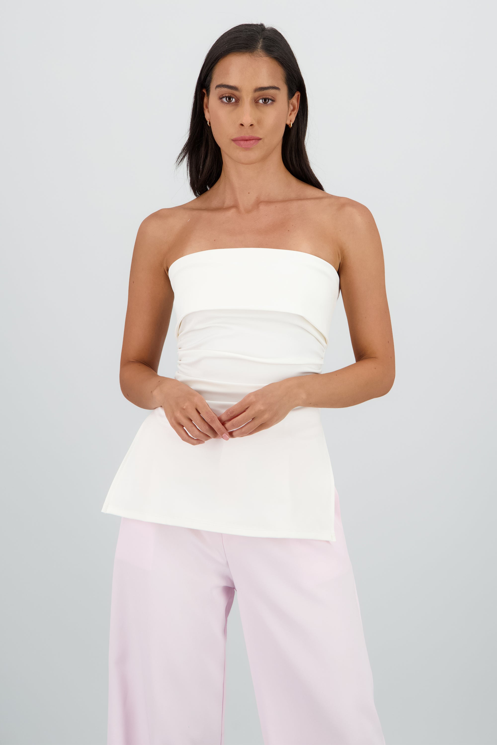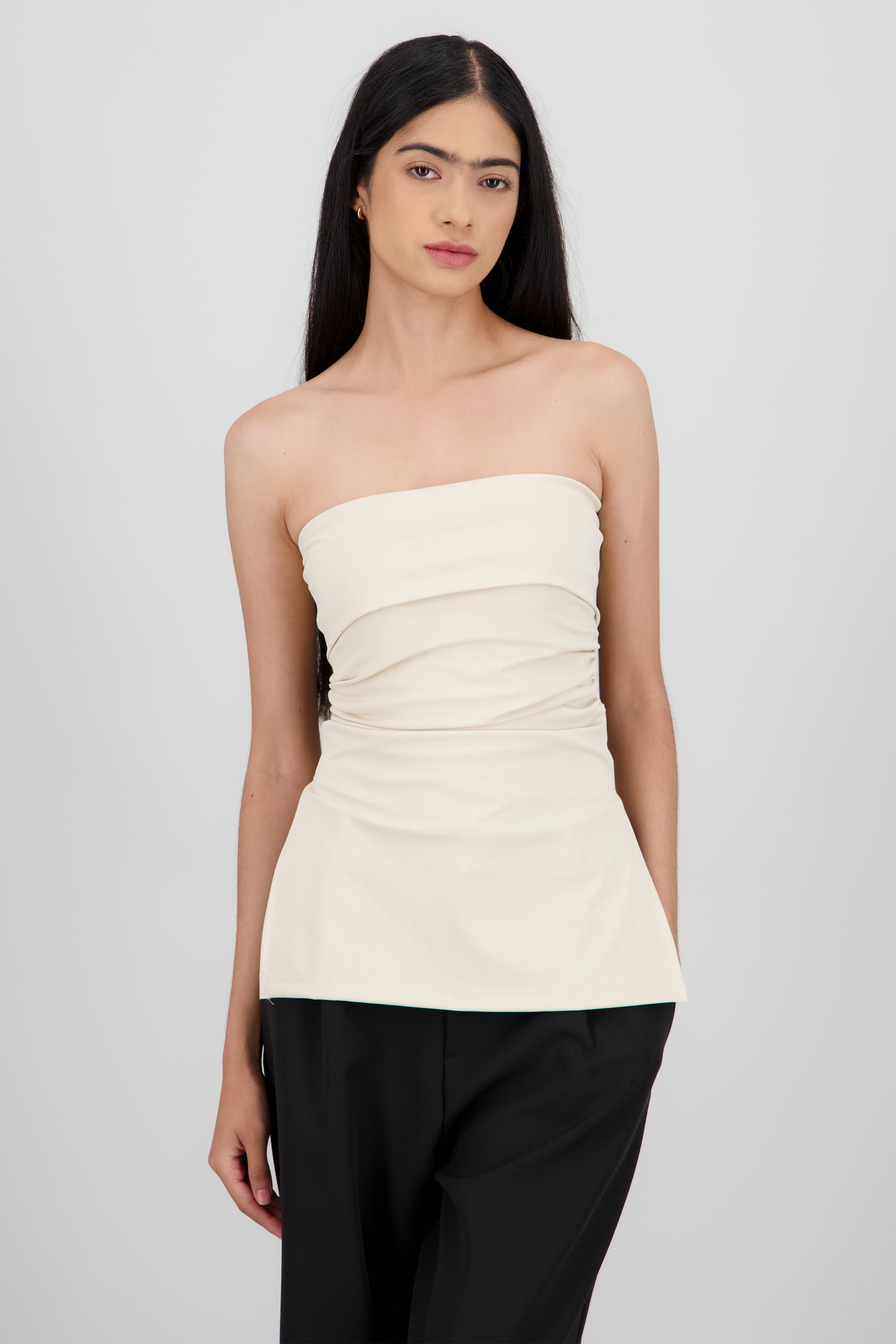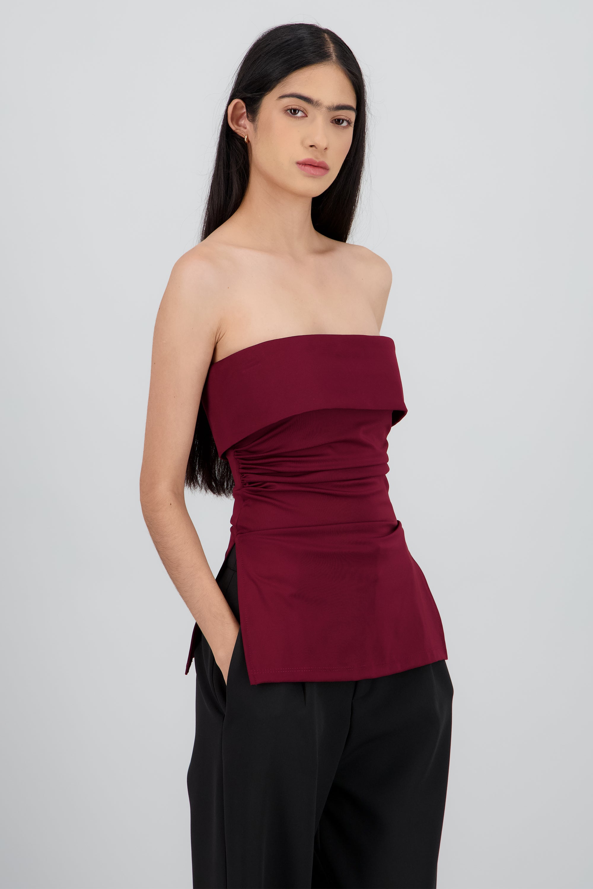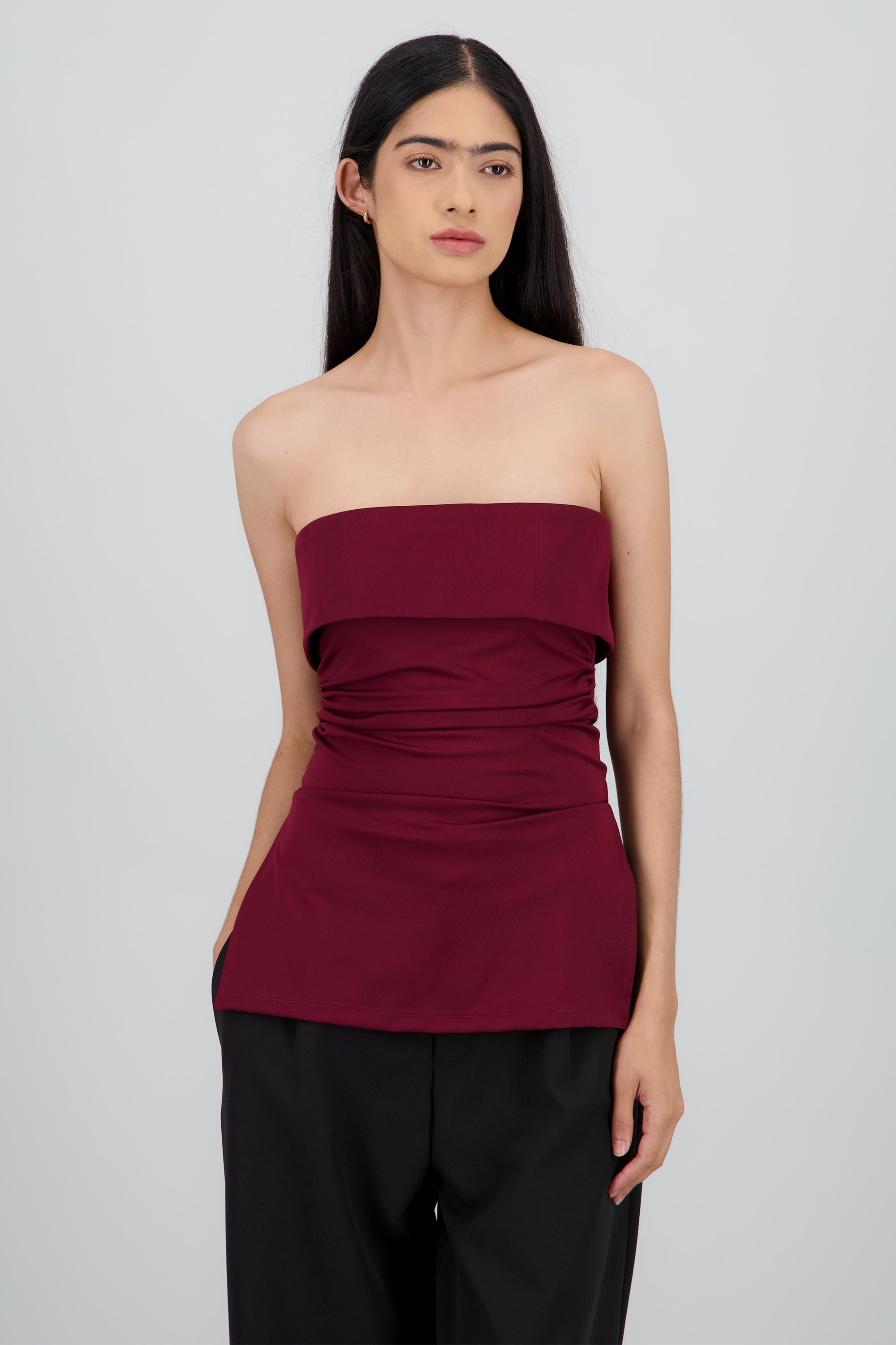 Top maxi con dobles frontal que crea un detalle estructurado y chic. Corte ceñido y cómodo.