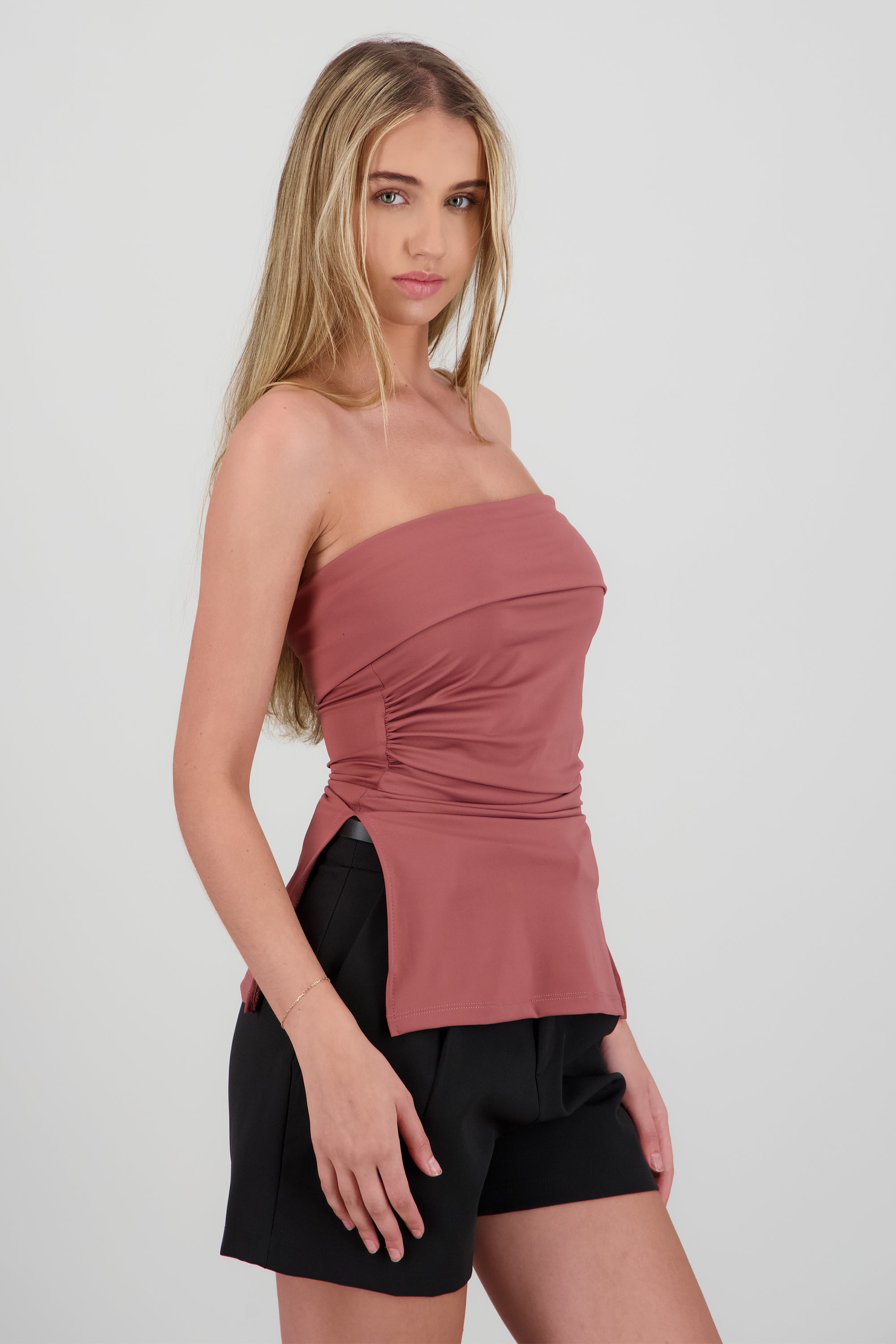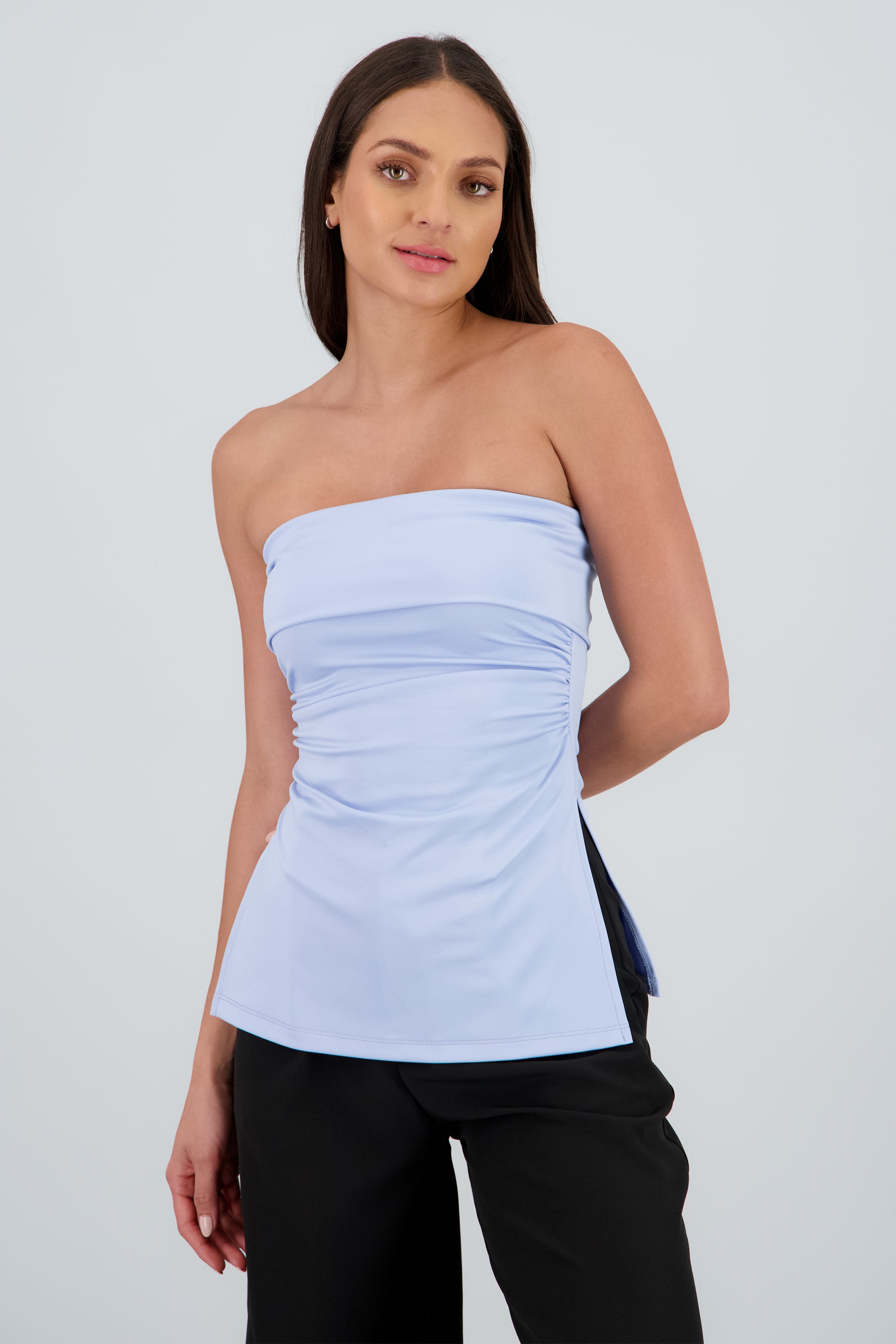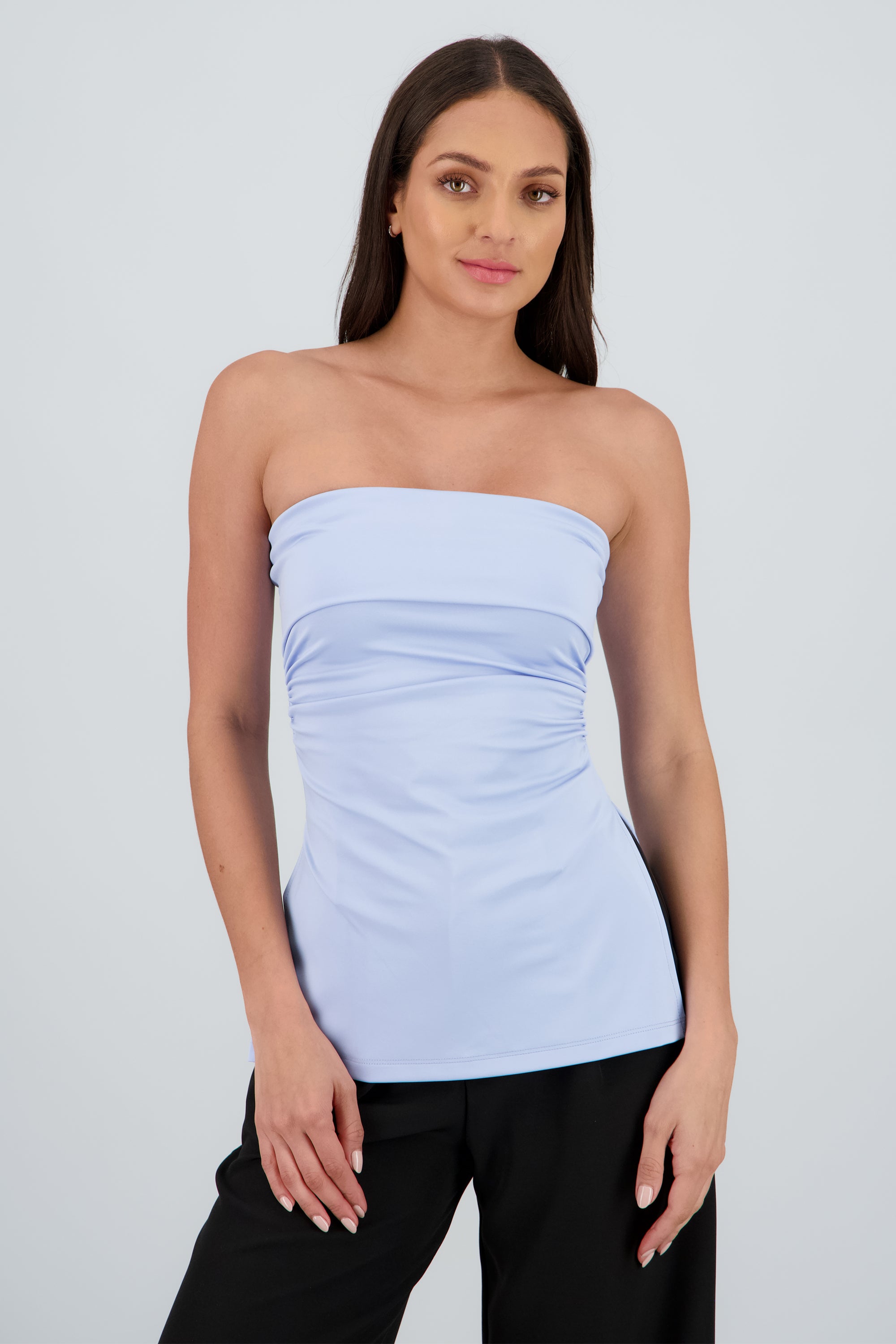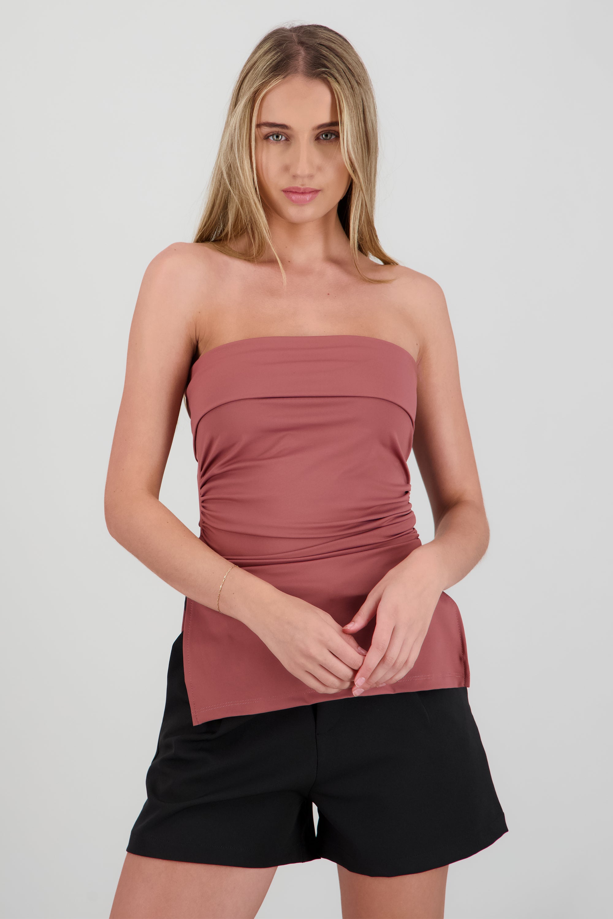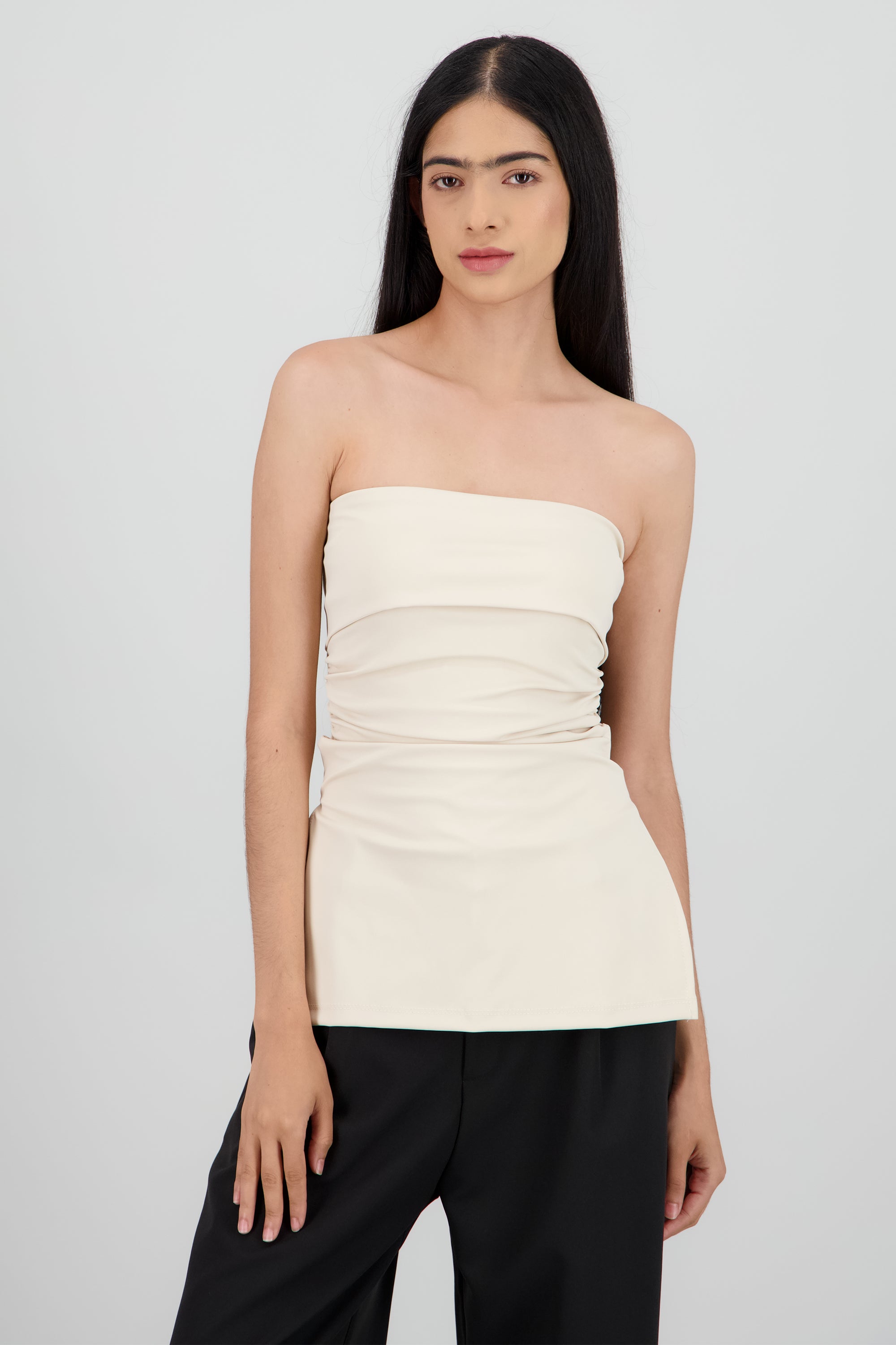 Top maxi con dobles frontal que crea un detalle estructurado y chic. Corte ceñido y cómodo.