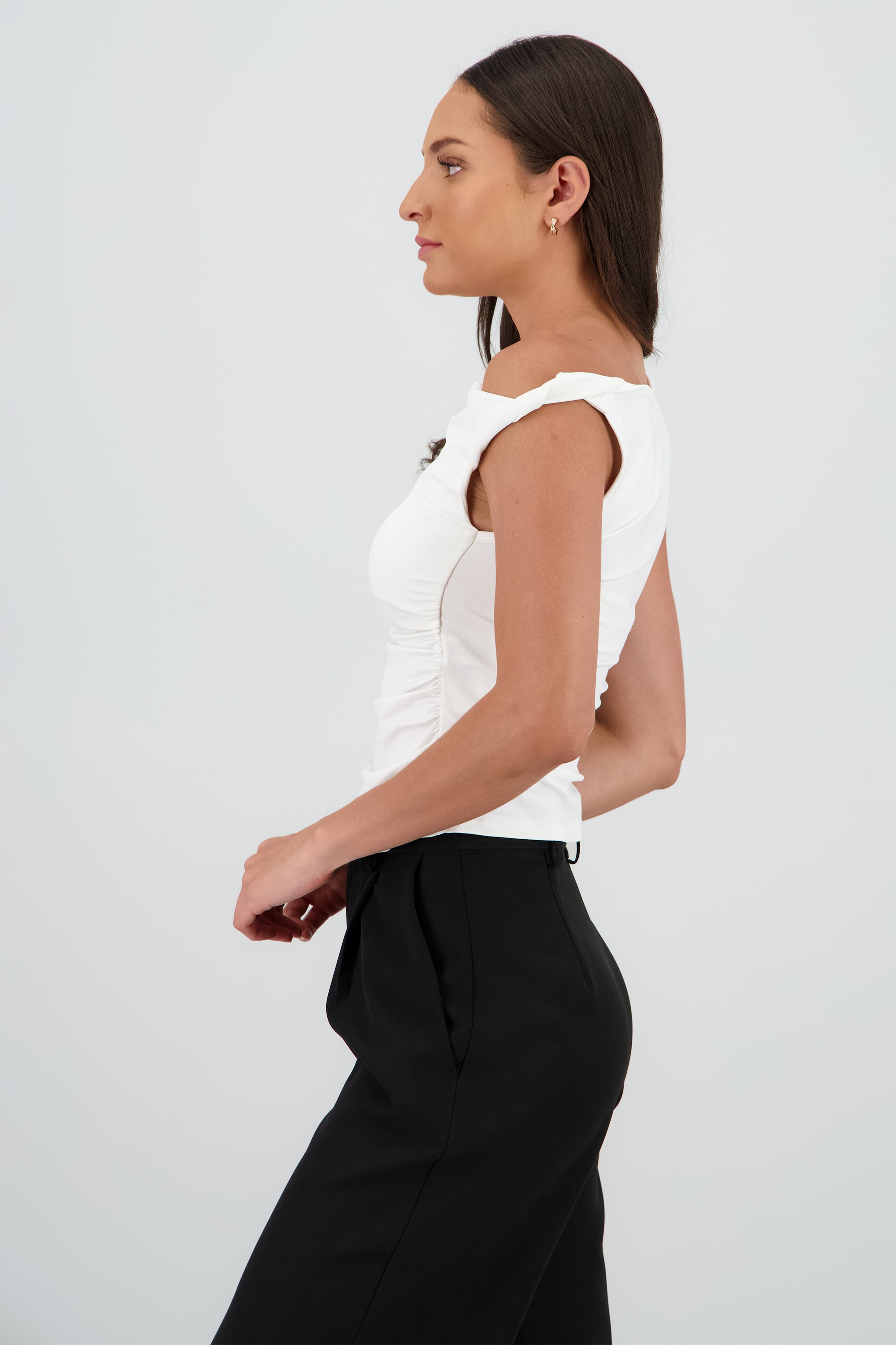 Top liso costados plisados