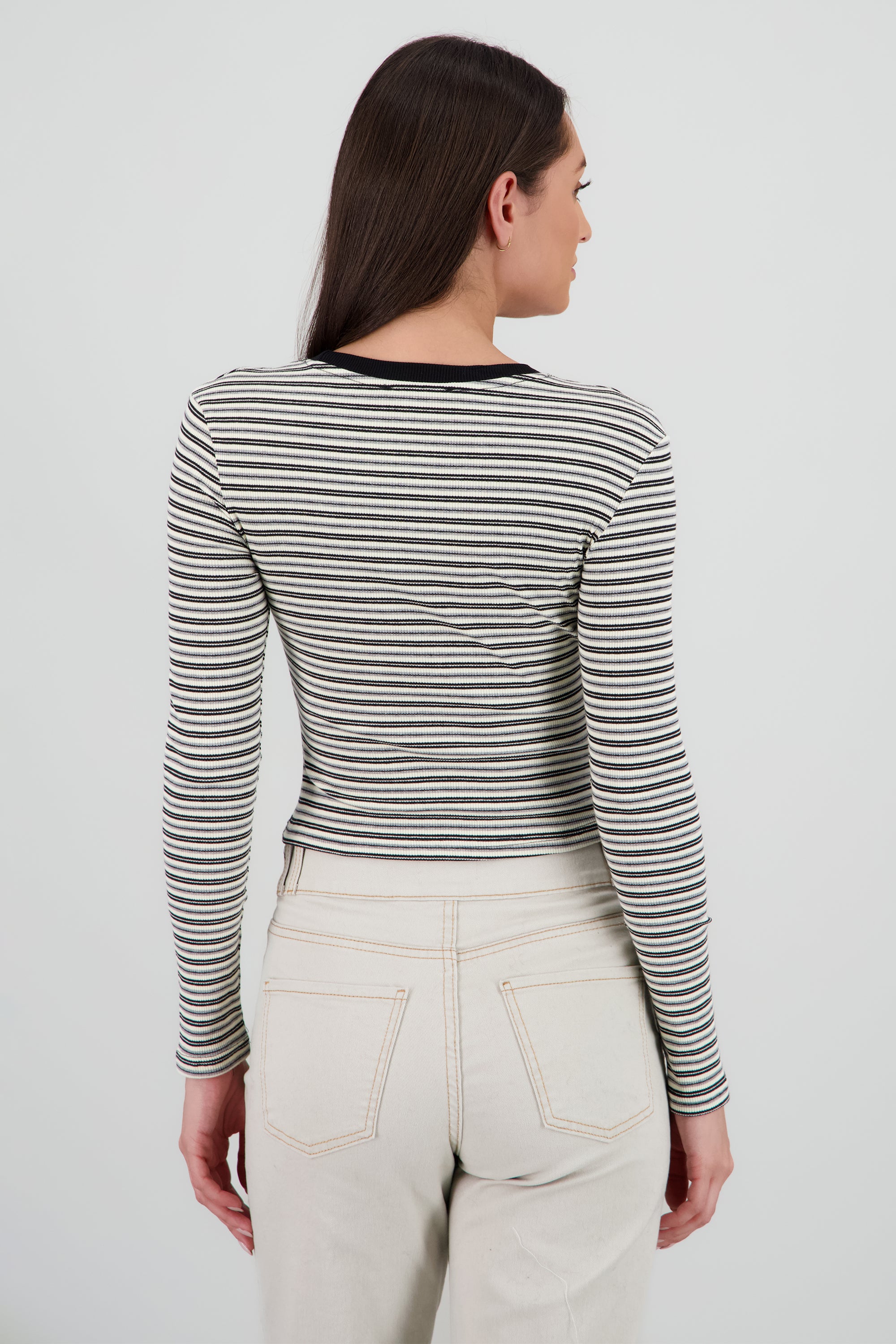 Top manga larga estampado rayas delgadas