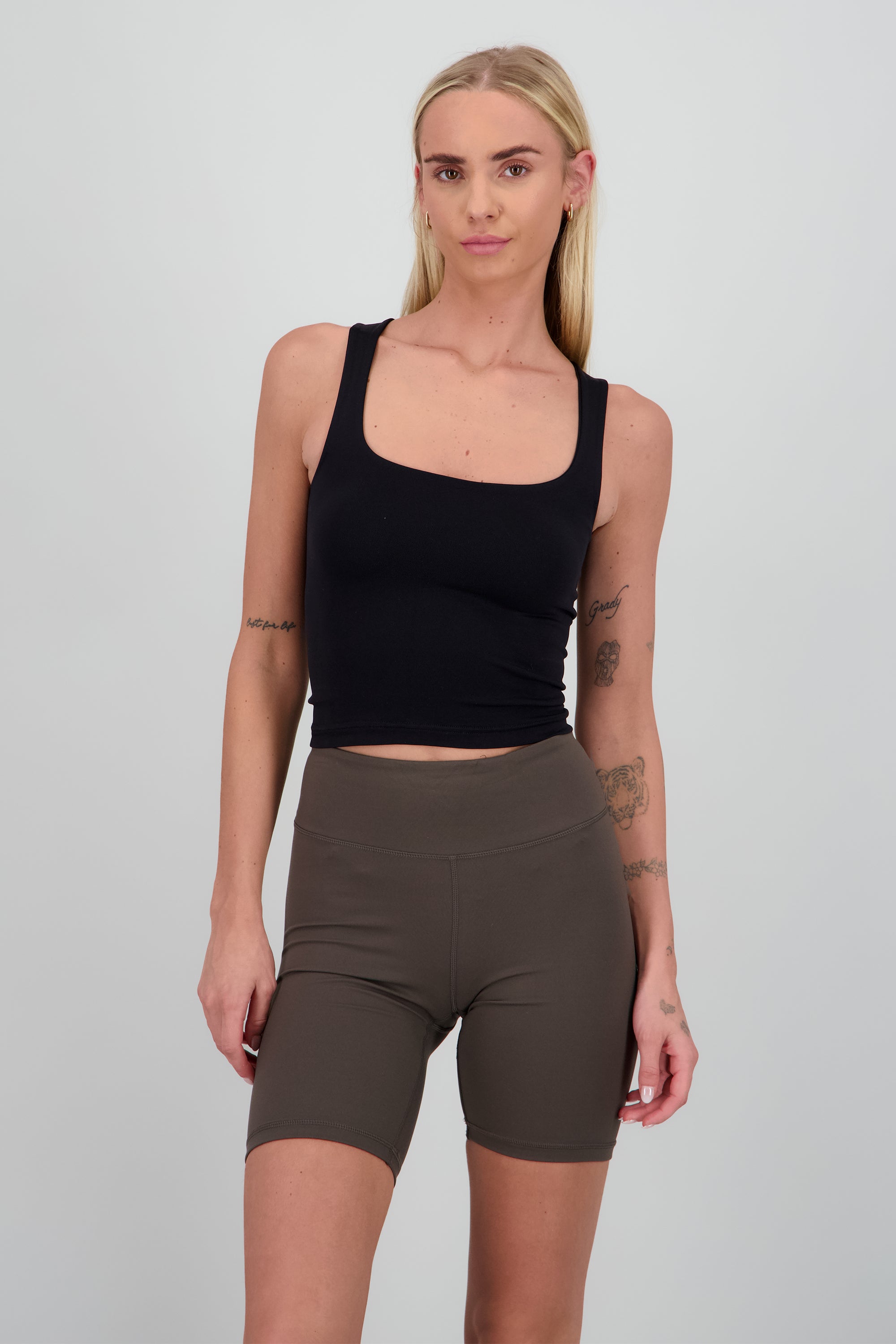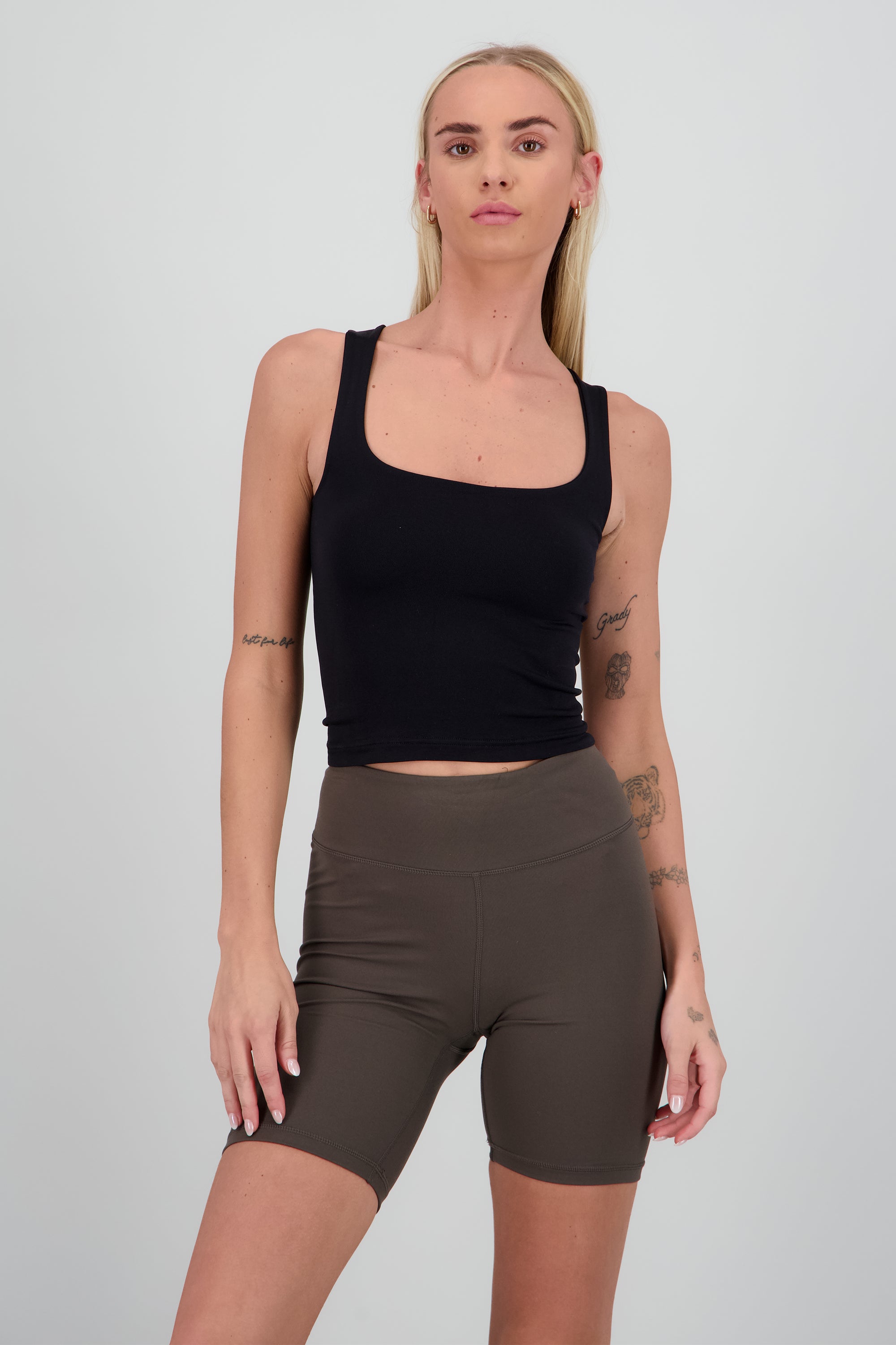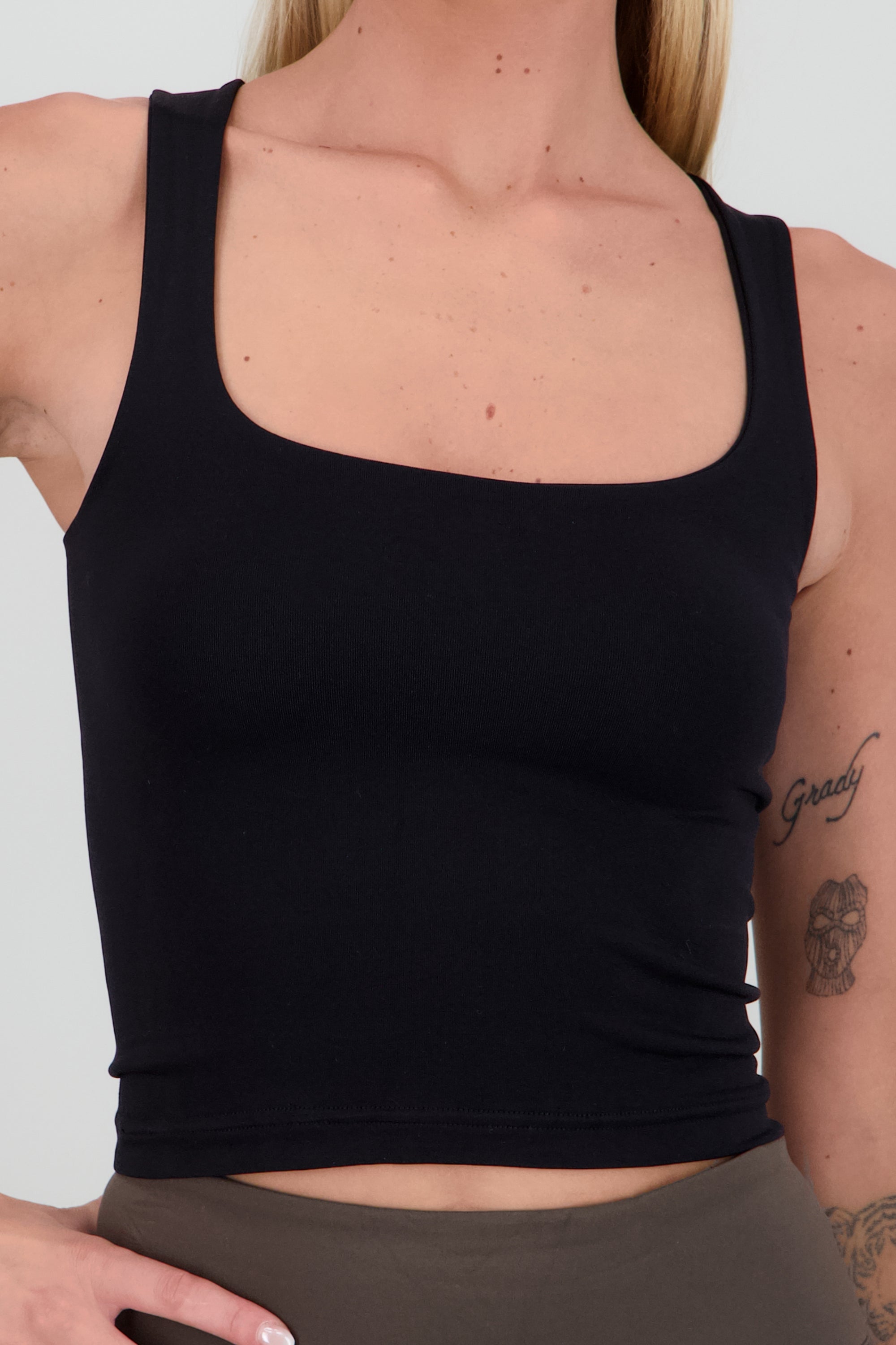 Top sin mangas con escote cuadrado y corte ajustado.