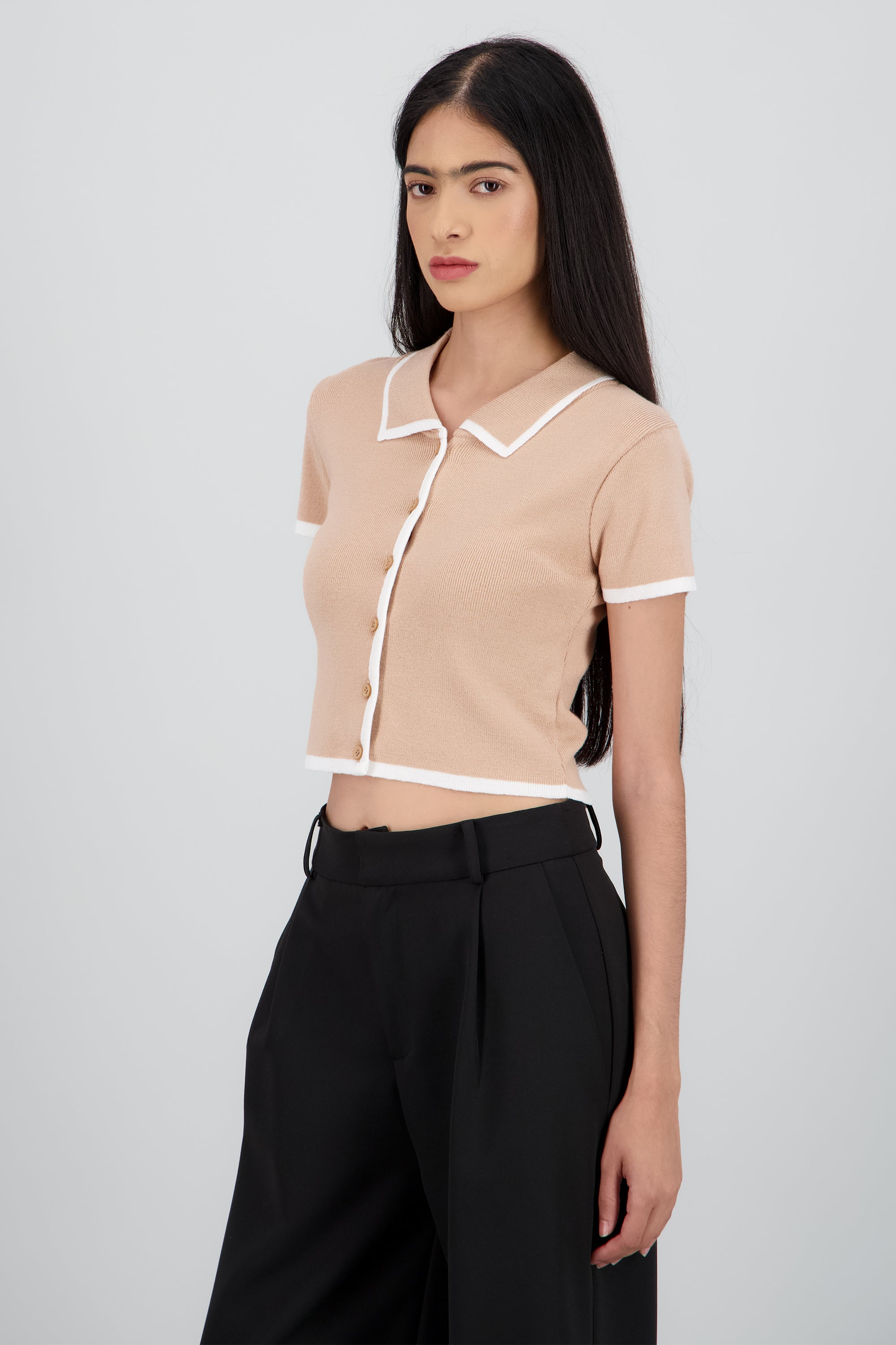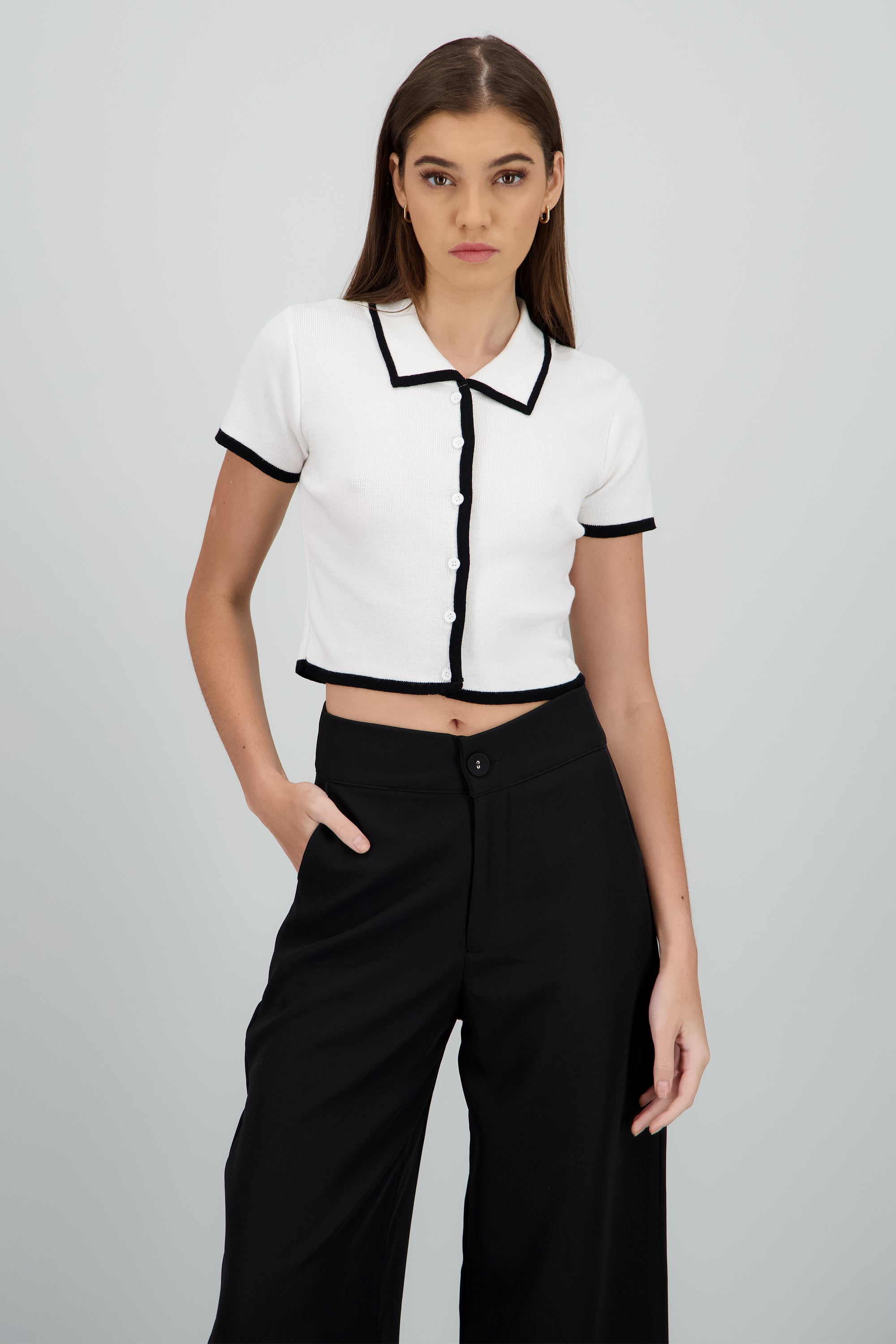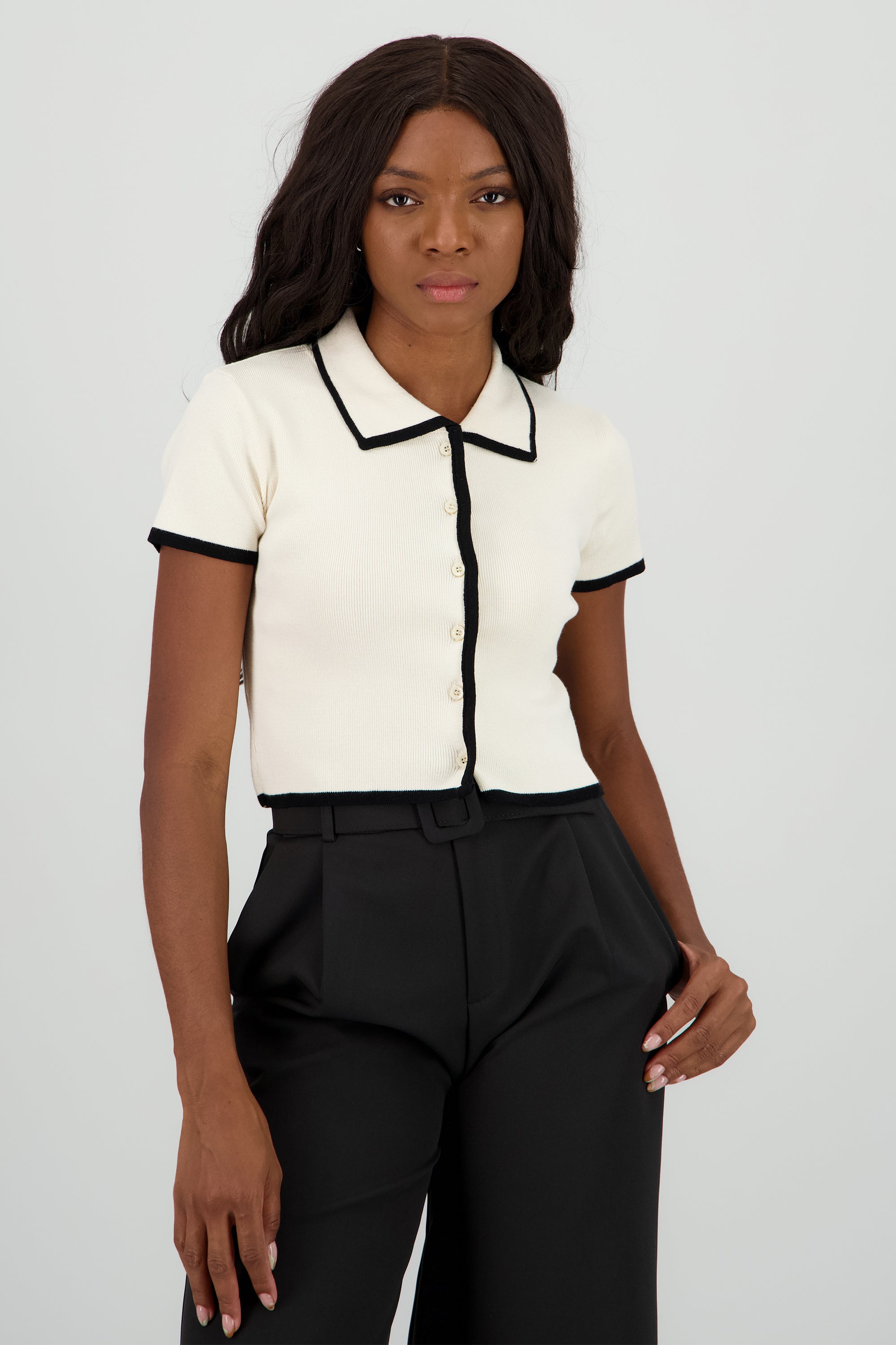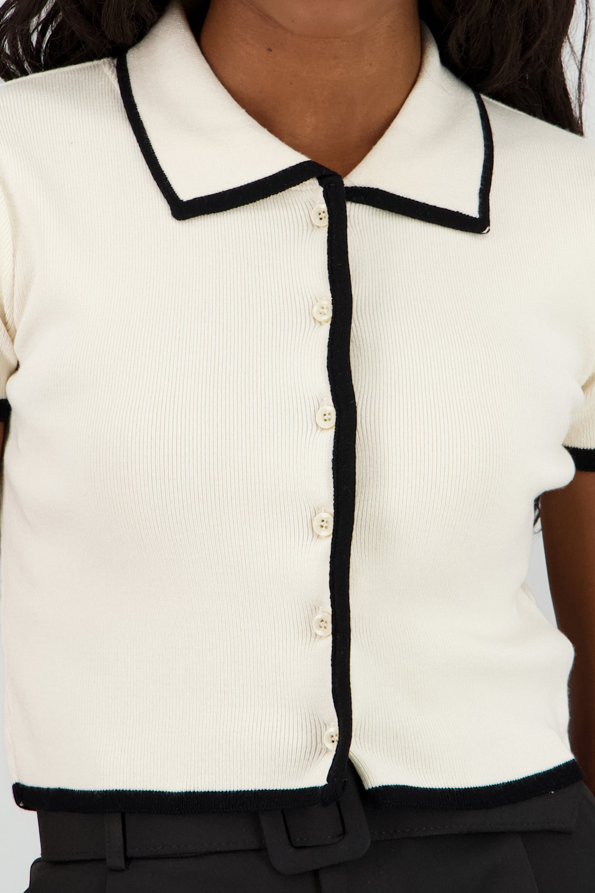 Top tejido contraste polo botones