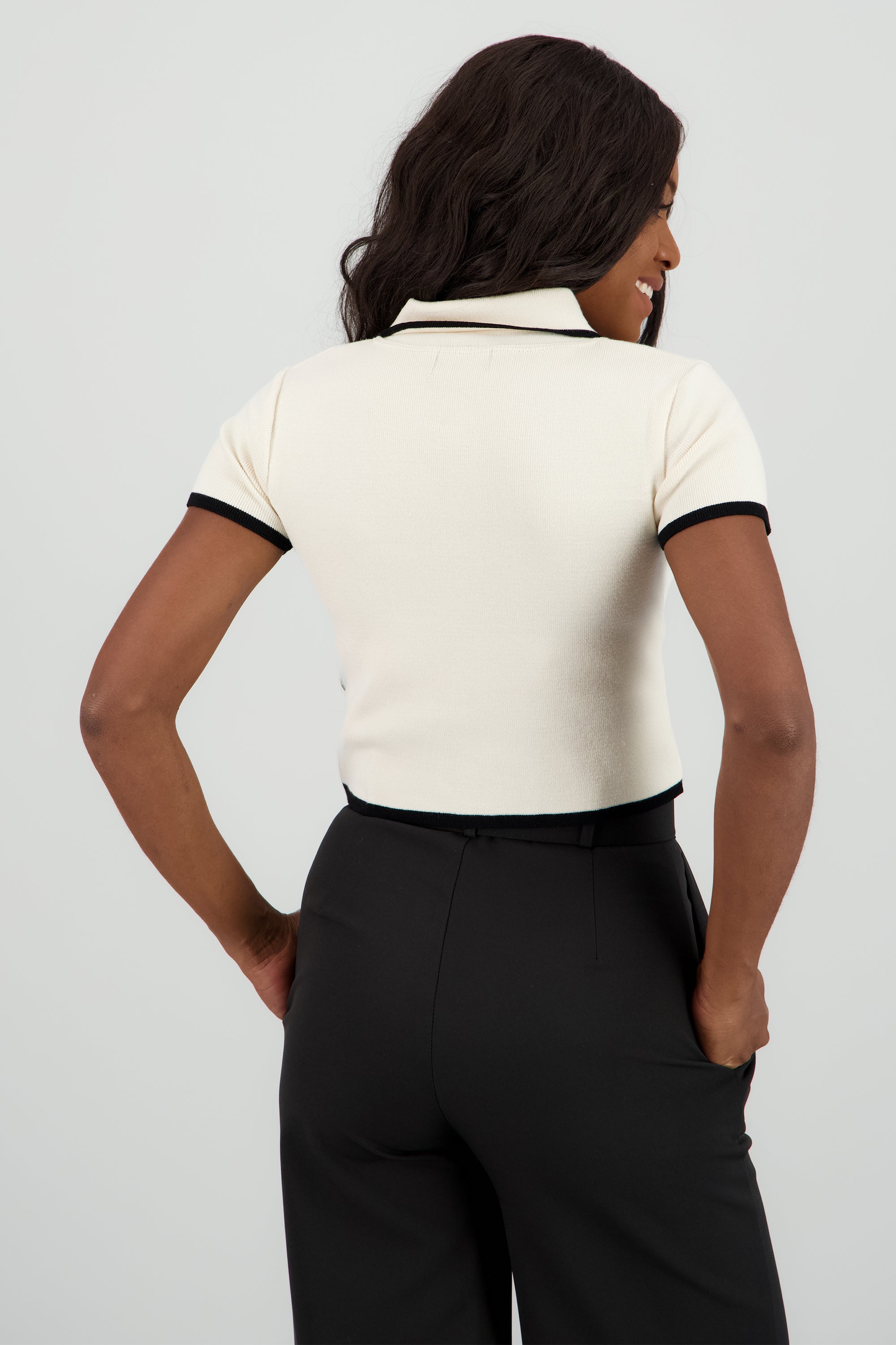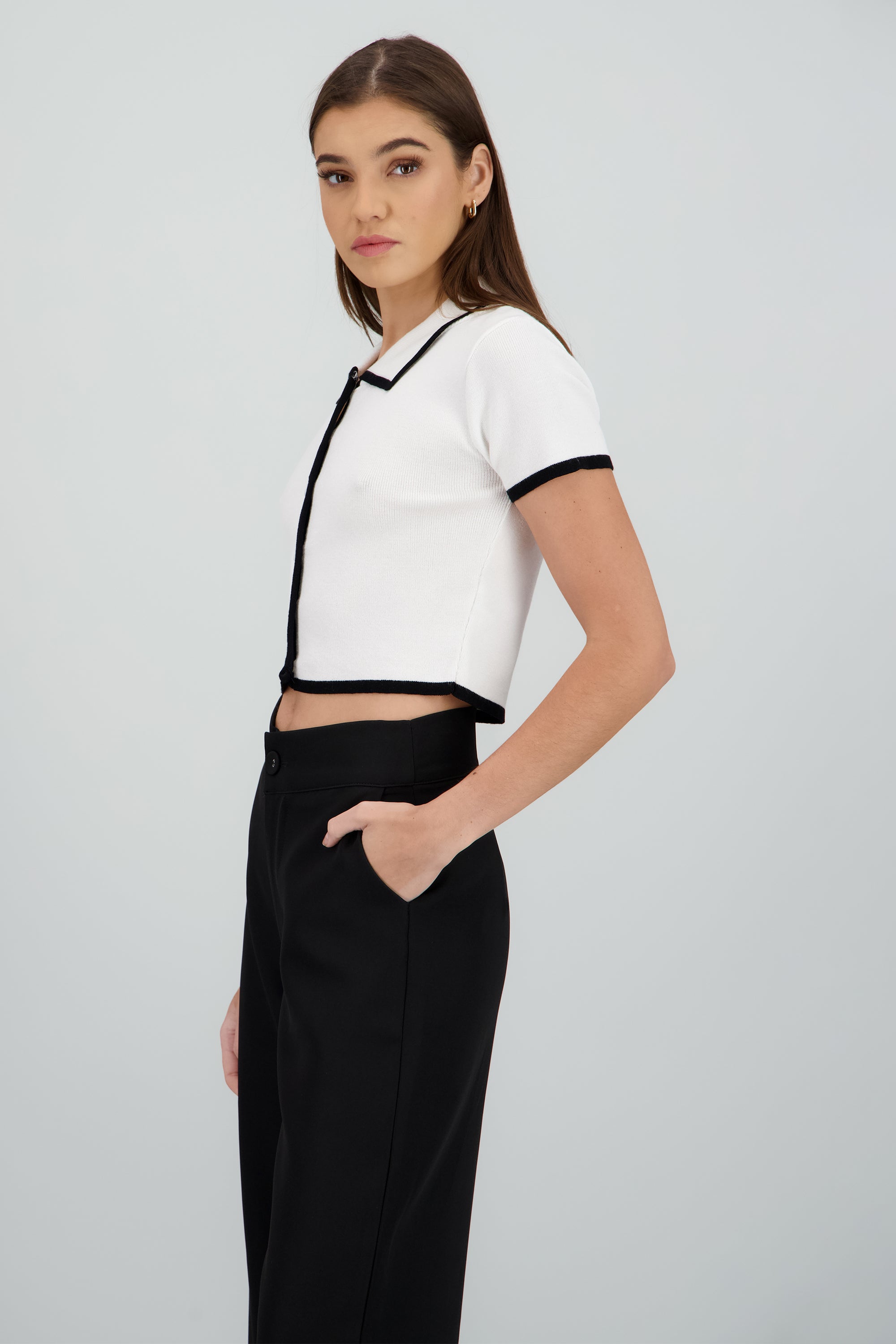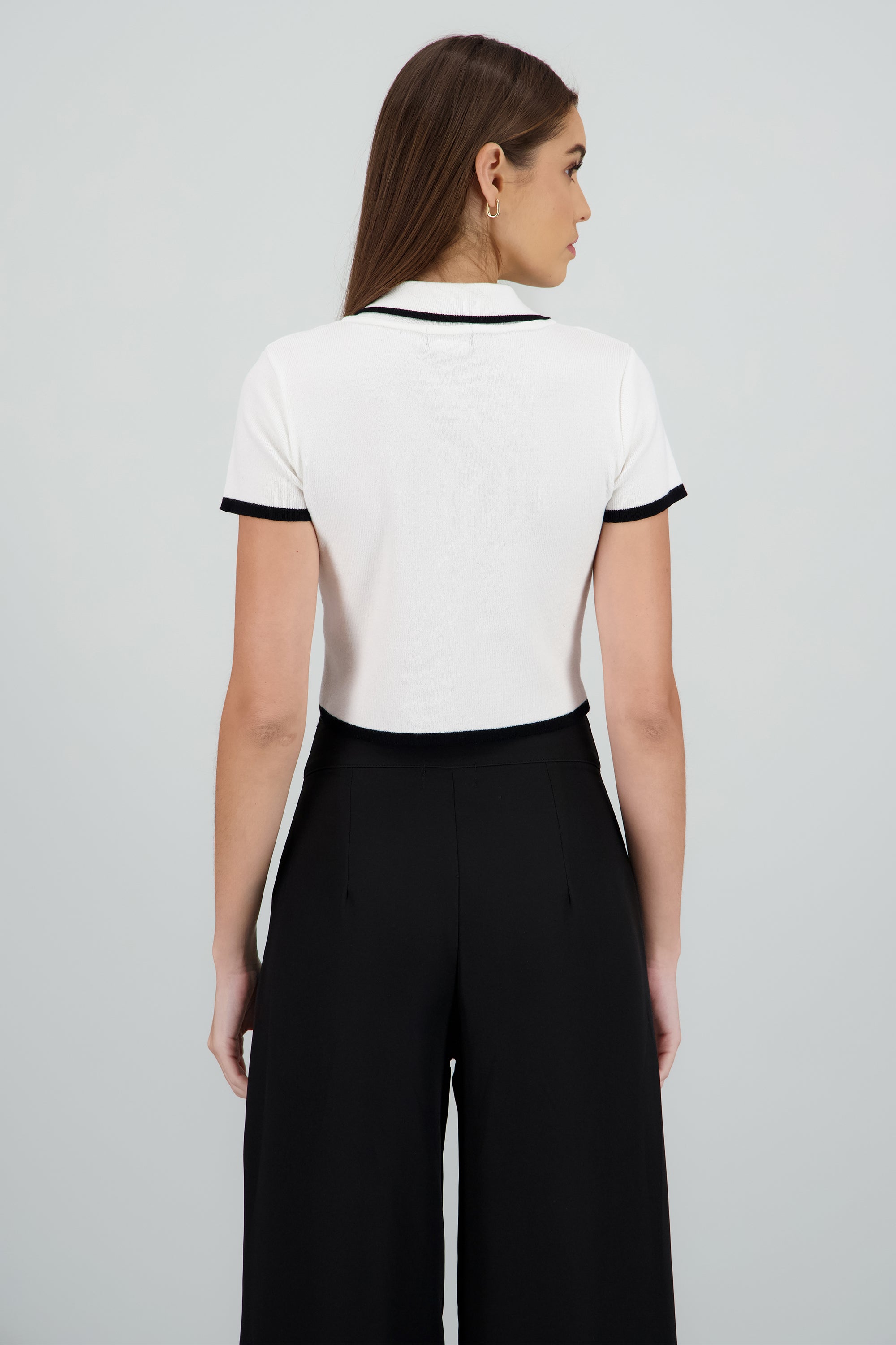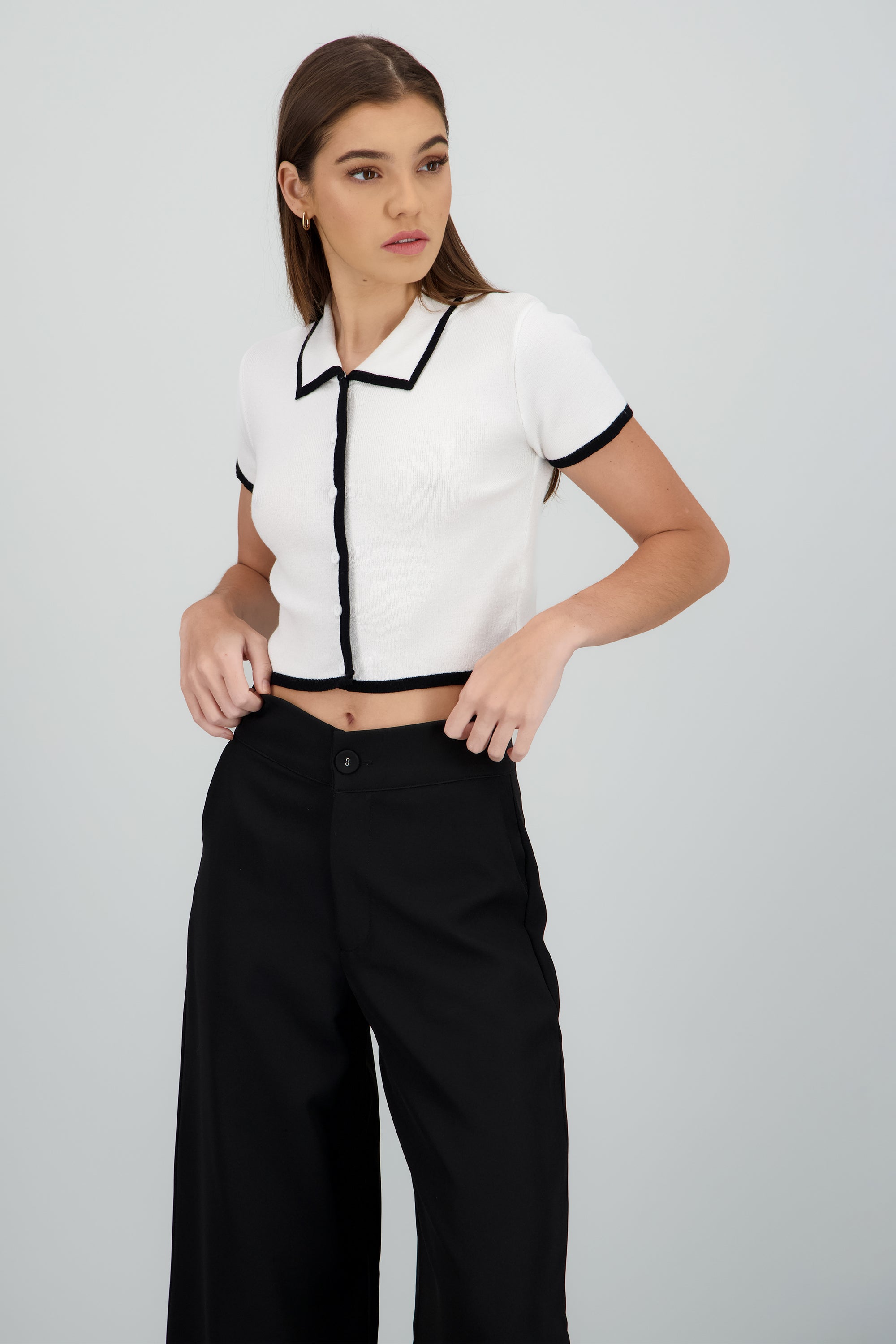 Top tejido contraste polo botones