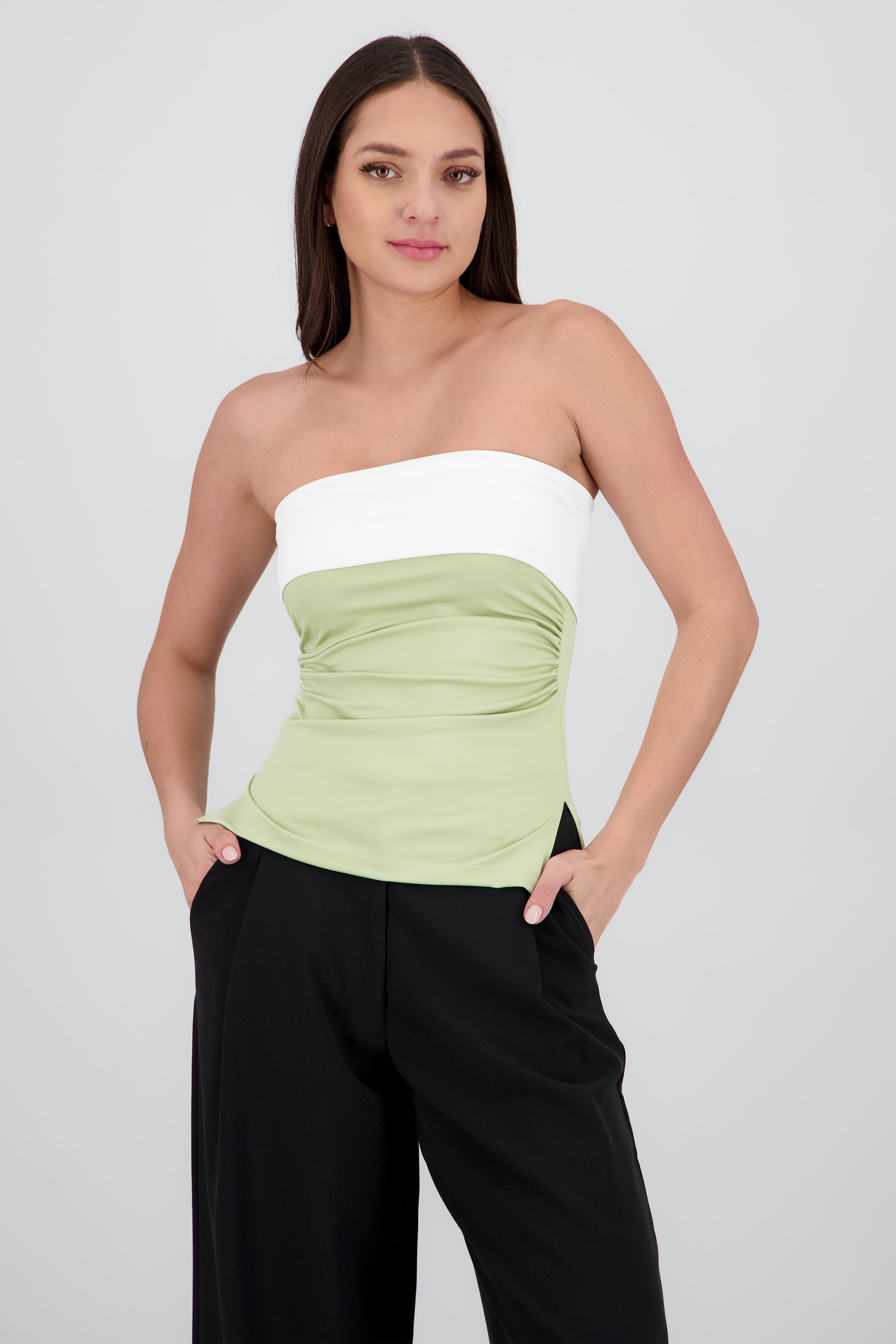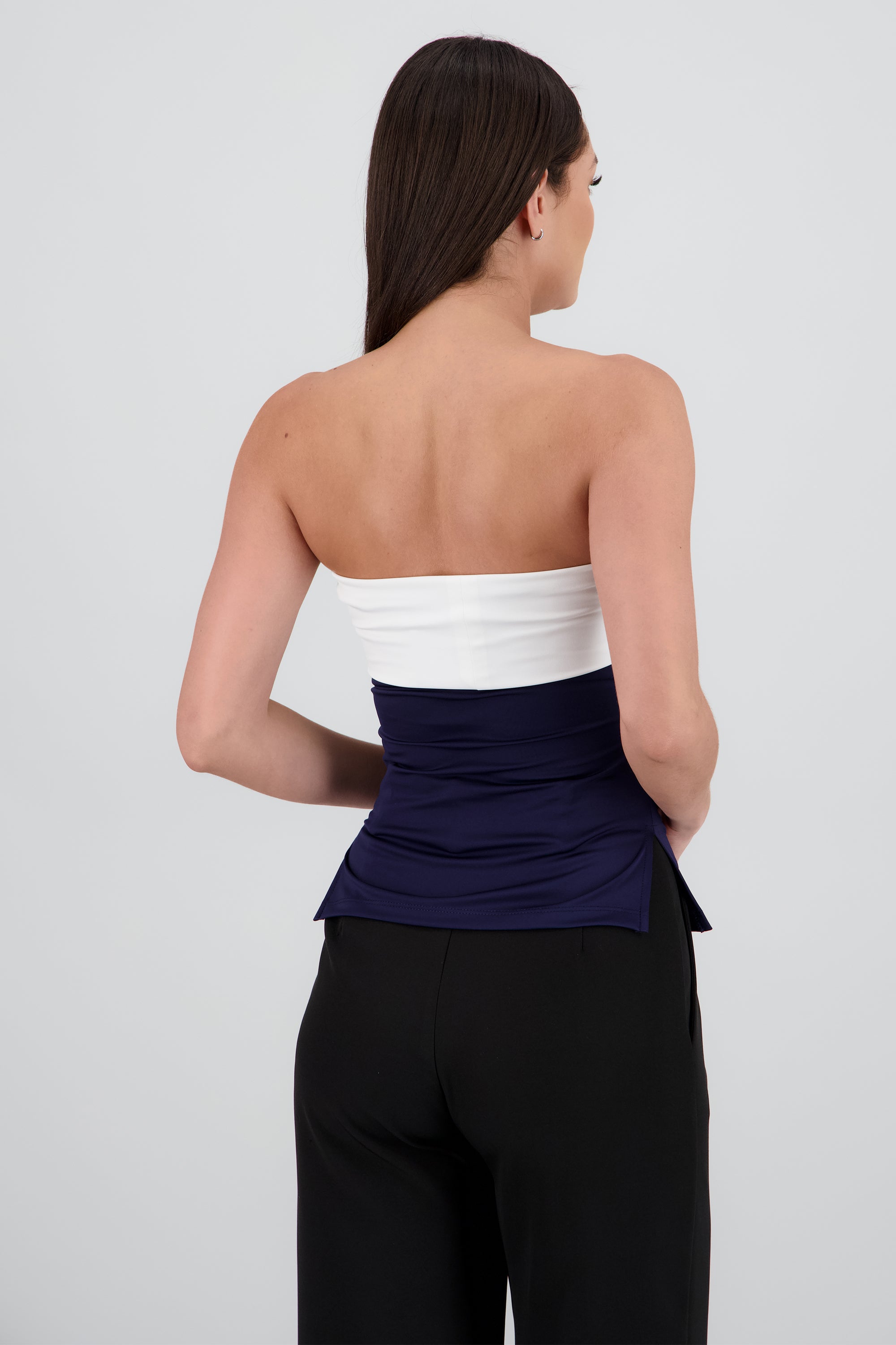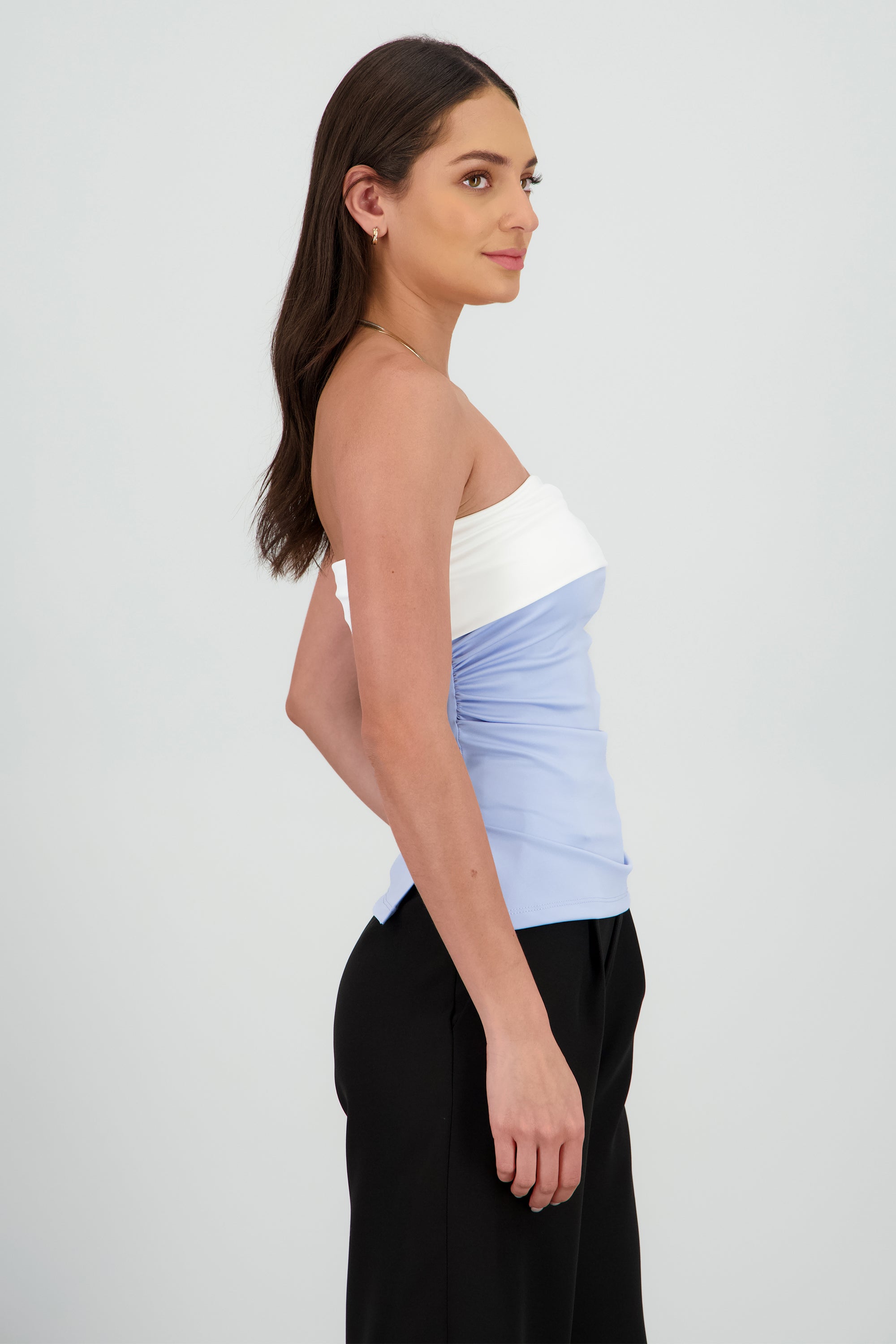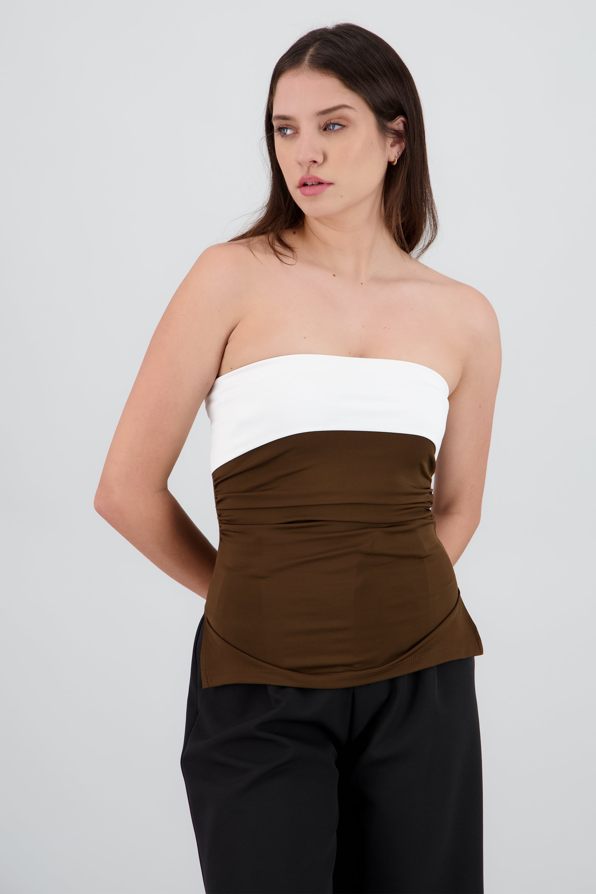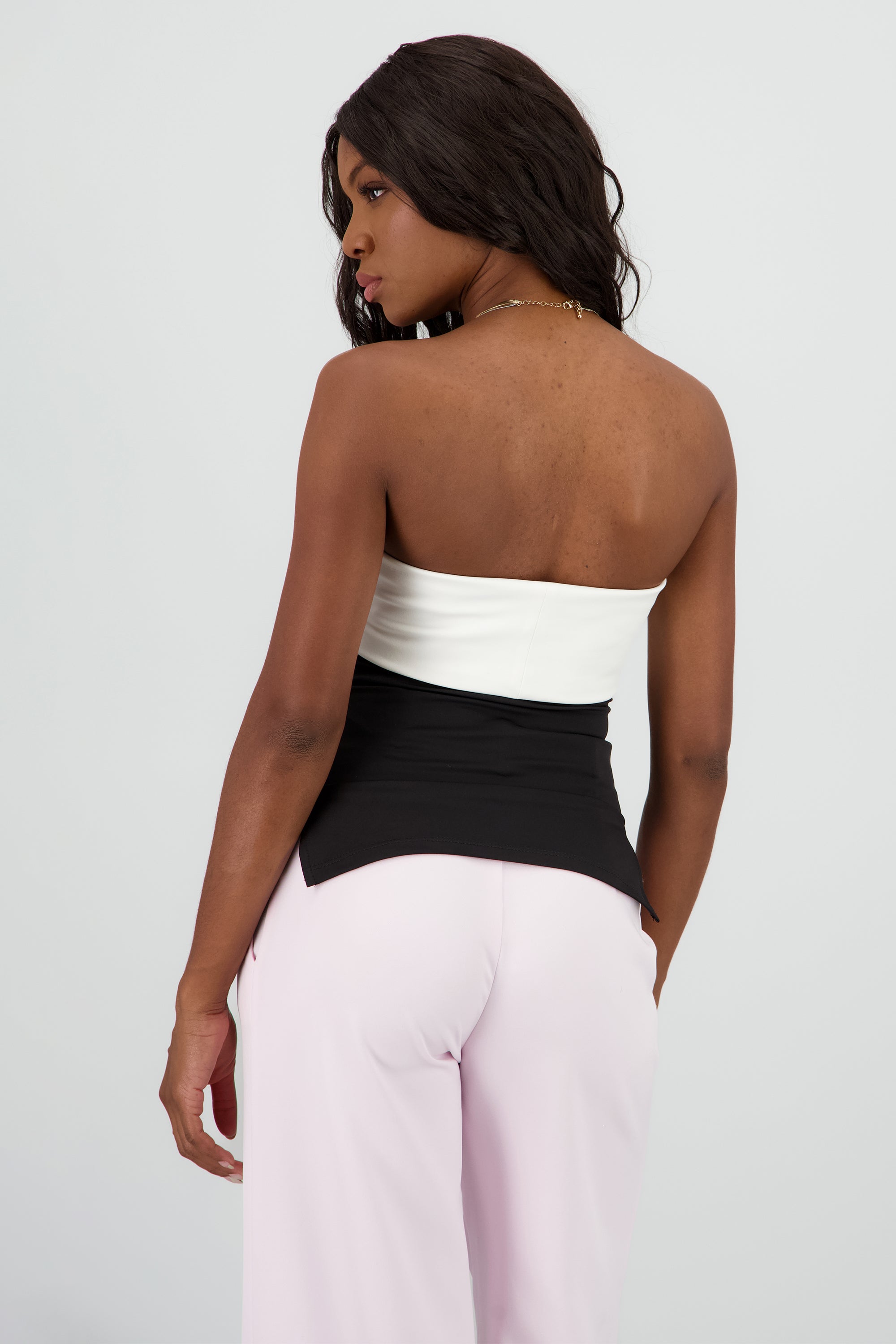 Top tubo de doblez contraste: prenda ajustada, sin mangas, con acabados en contraste.