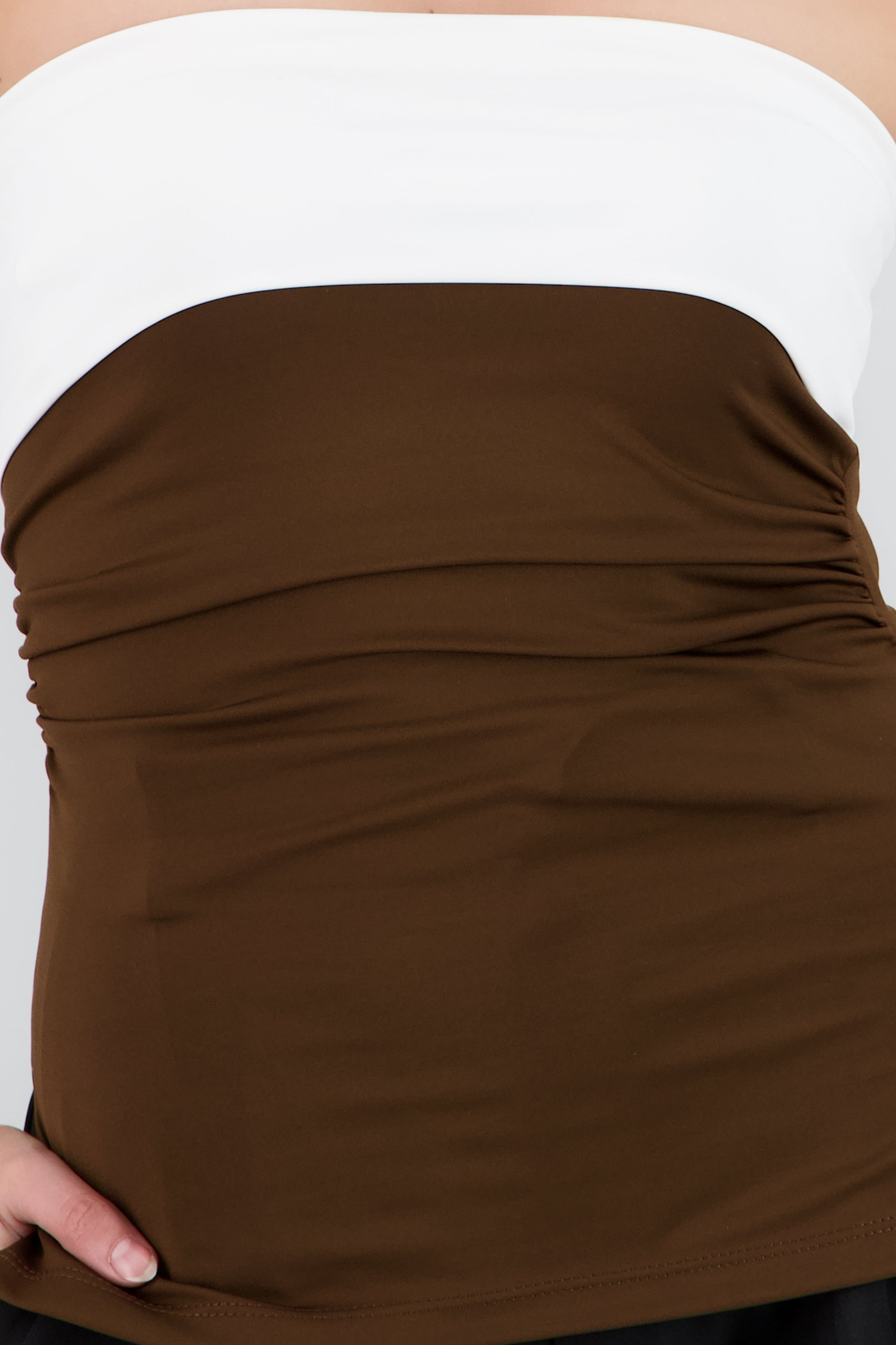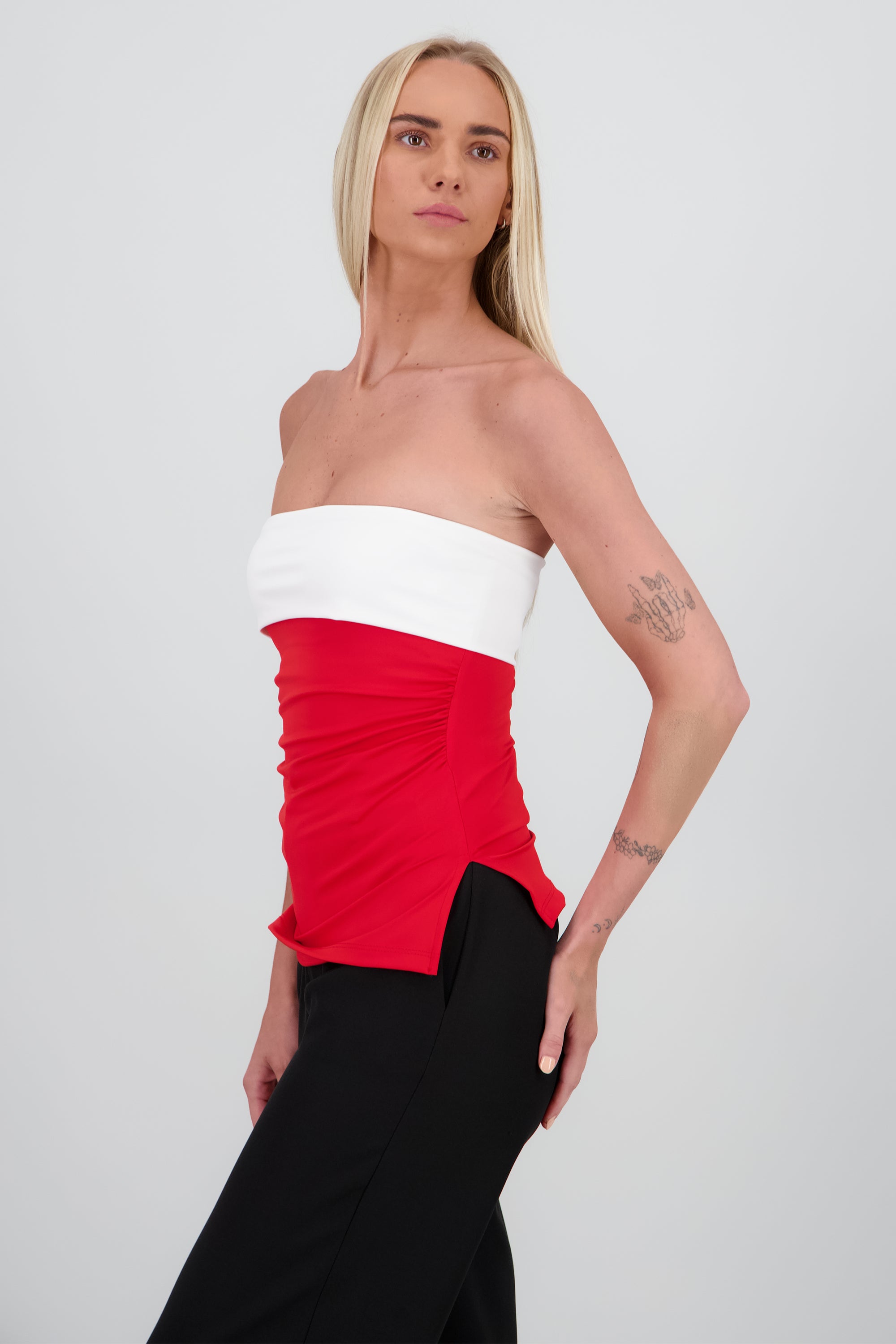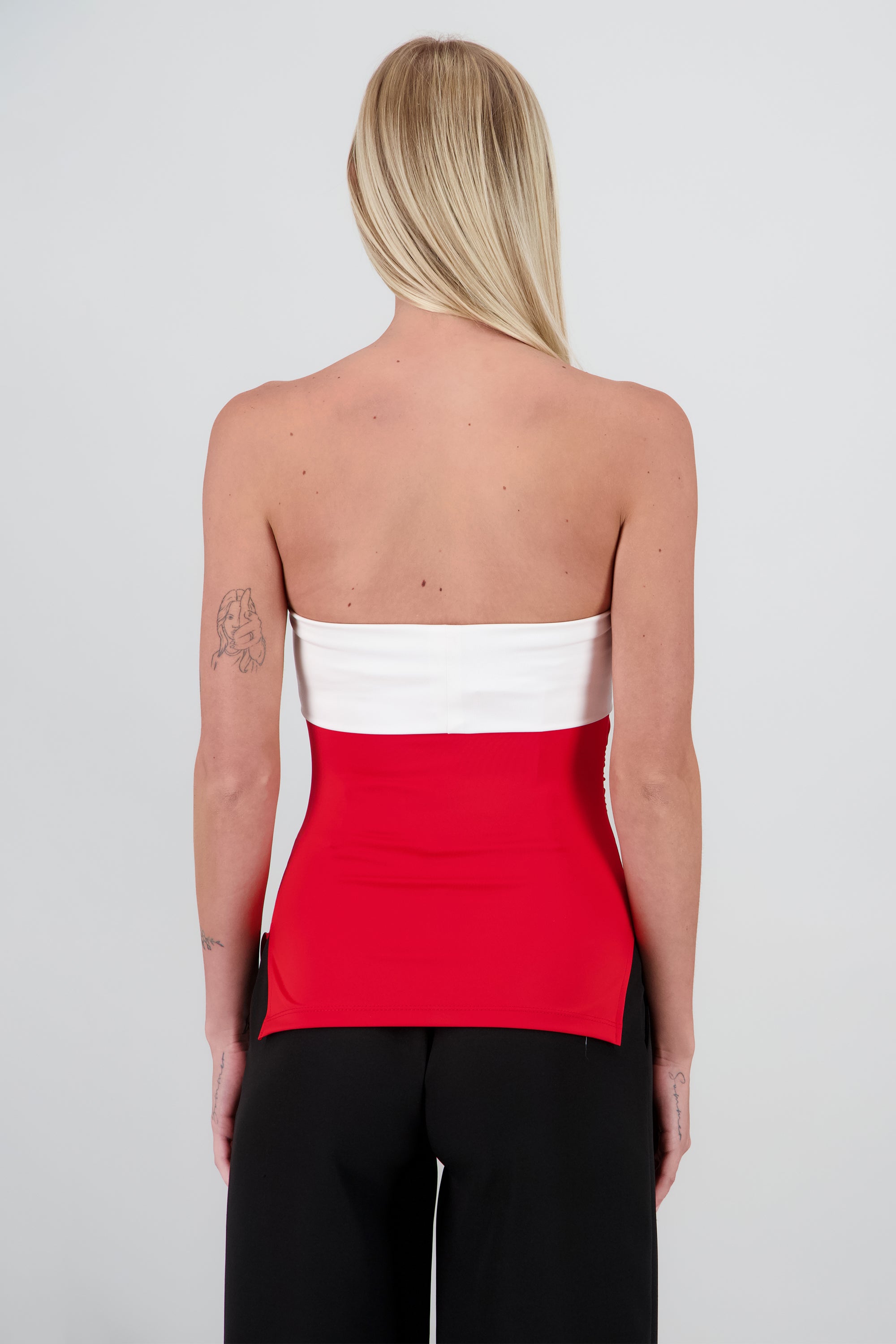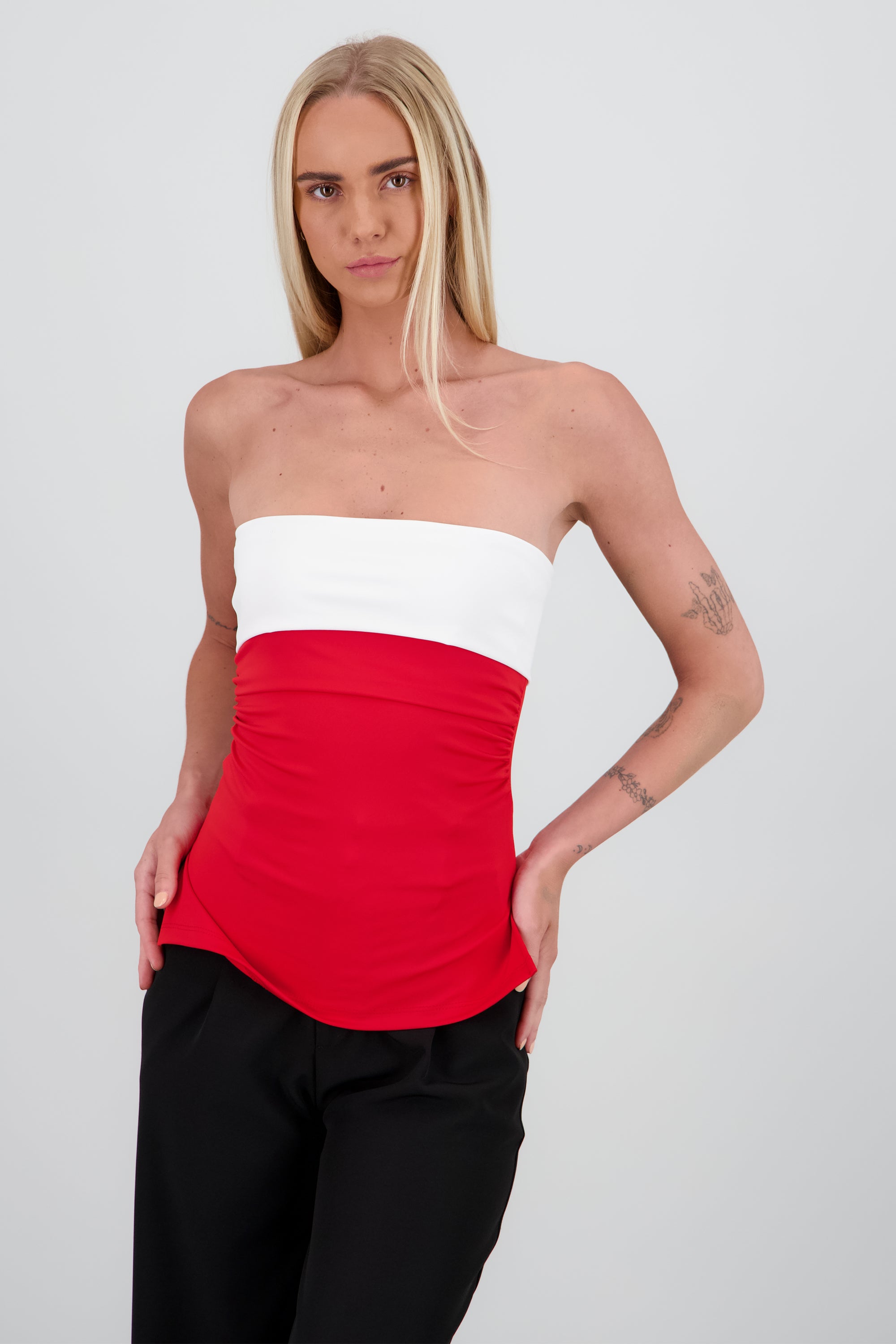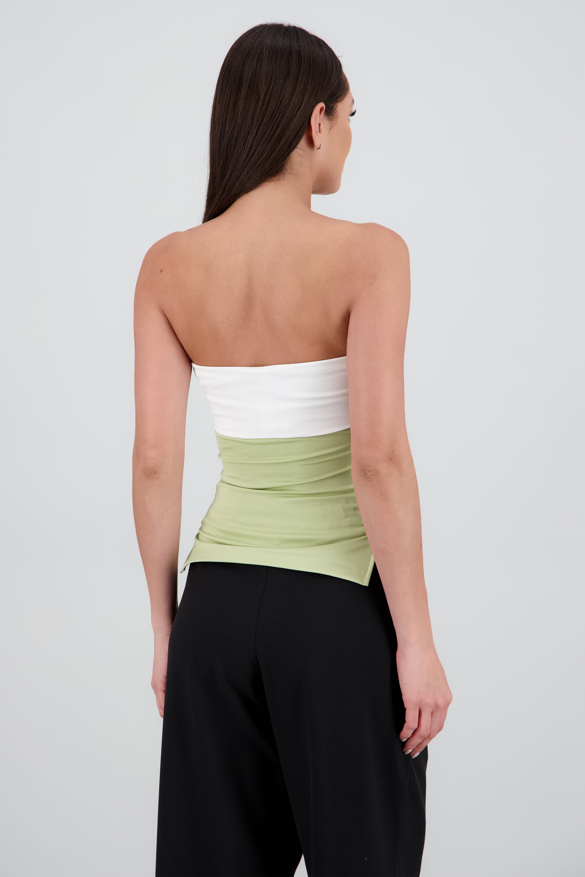 Top tubo de doblez contraste: prenda ajustada, sin mangas, con acabados en contraste.