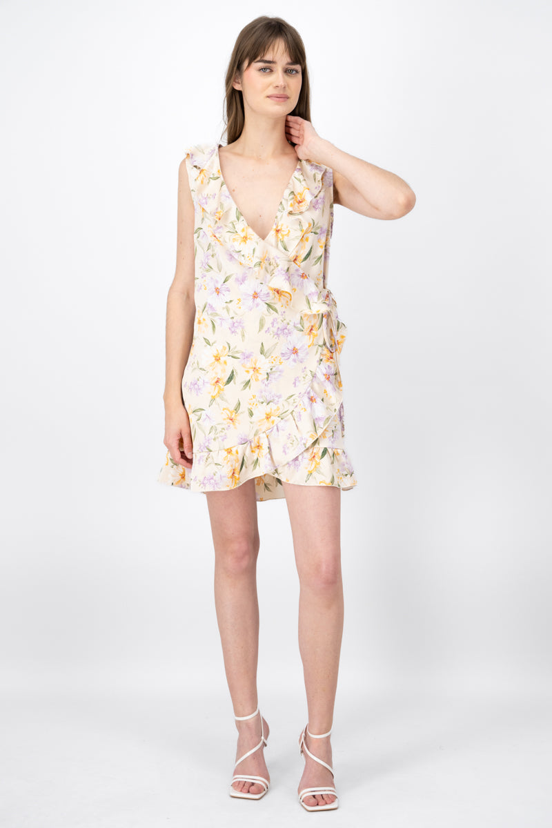 Vestido Corto Con Olanes Estampado Flor Hypsters