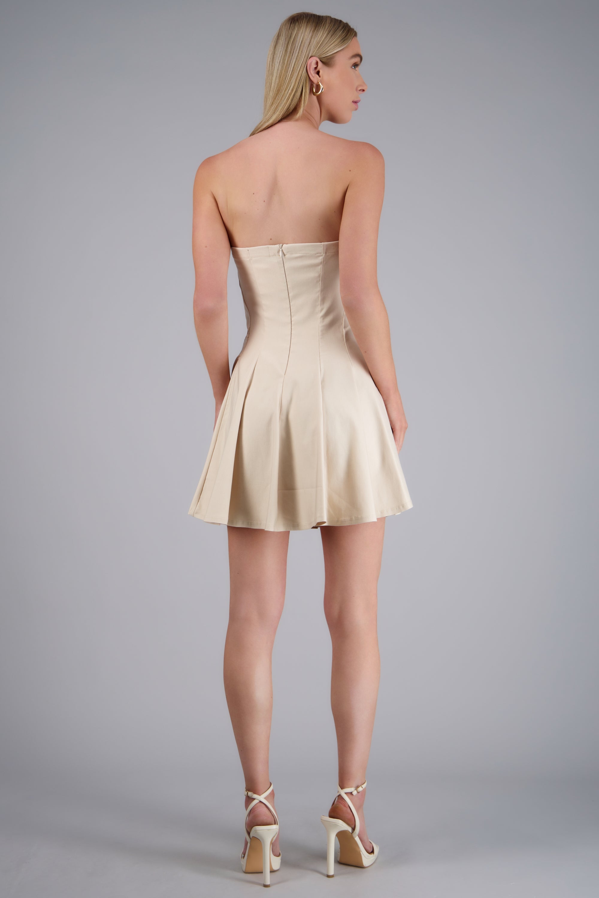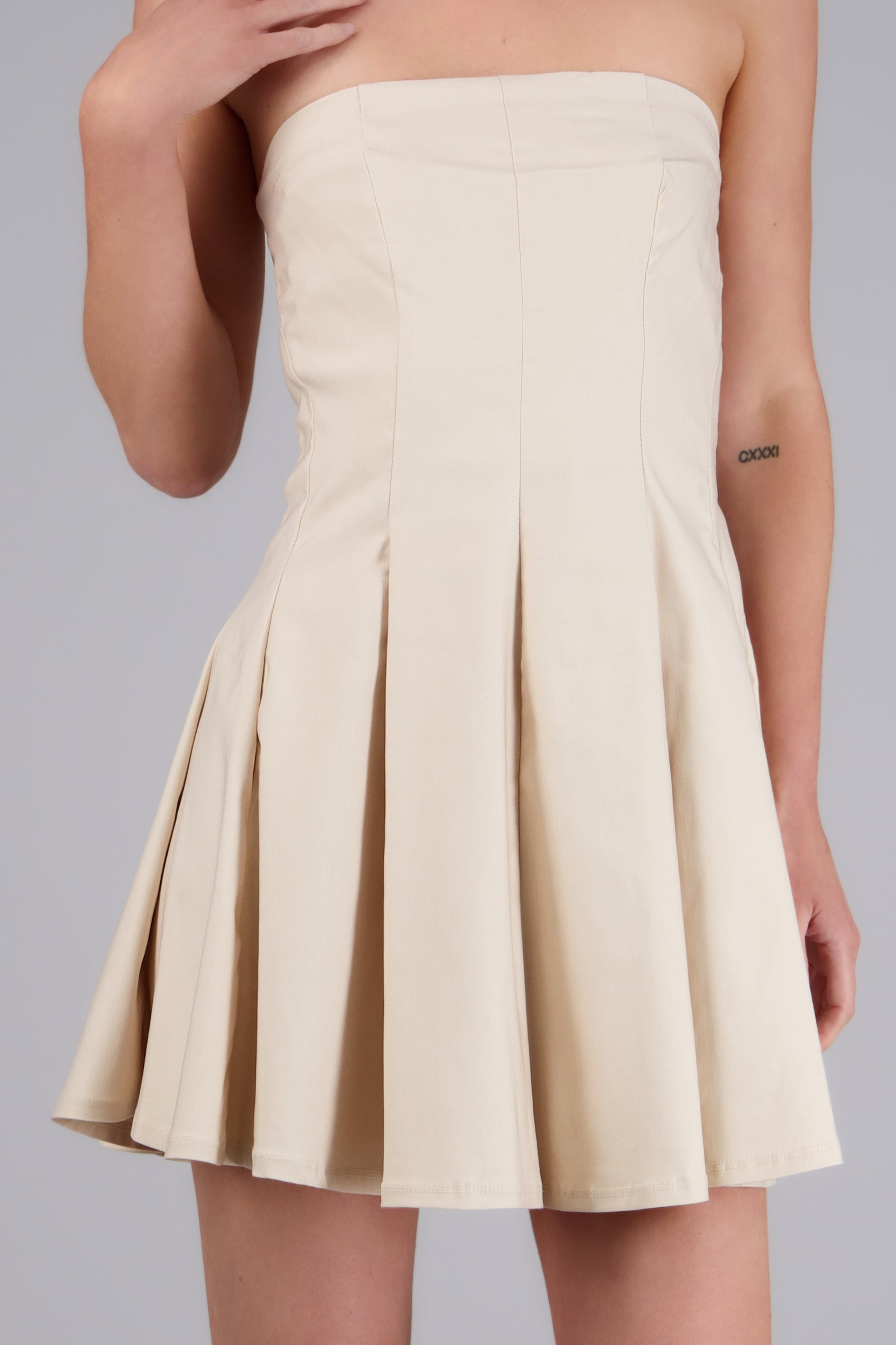 Vestido corto sin mangas de corte ajustado. Cierre trasero con cremallera.