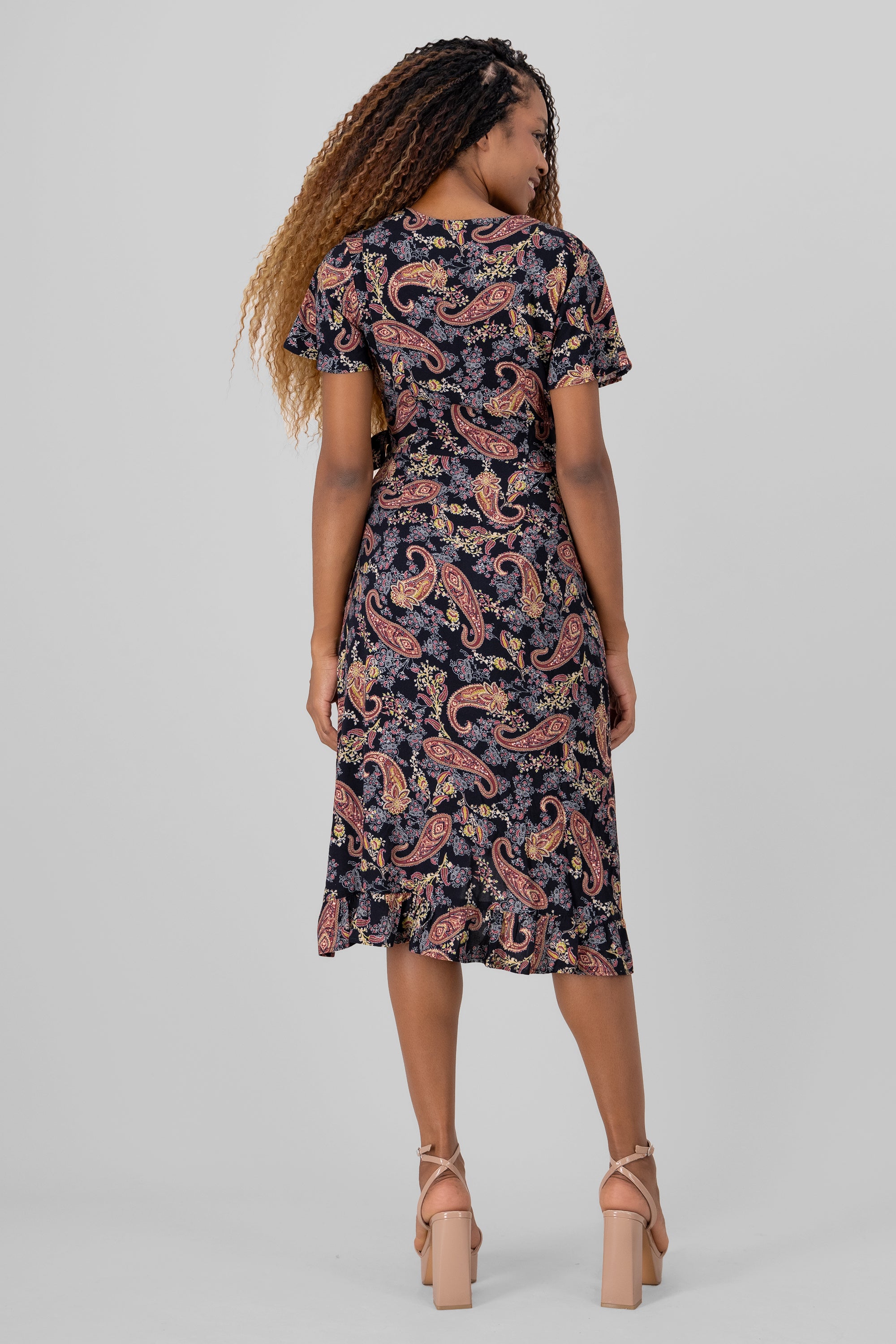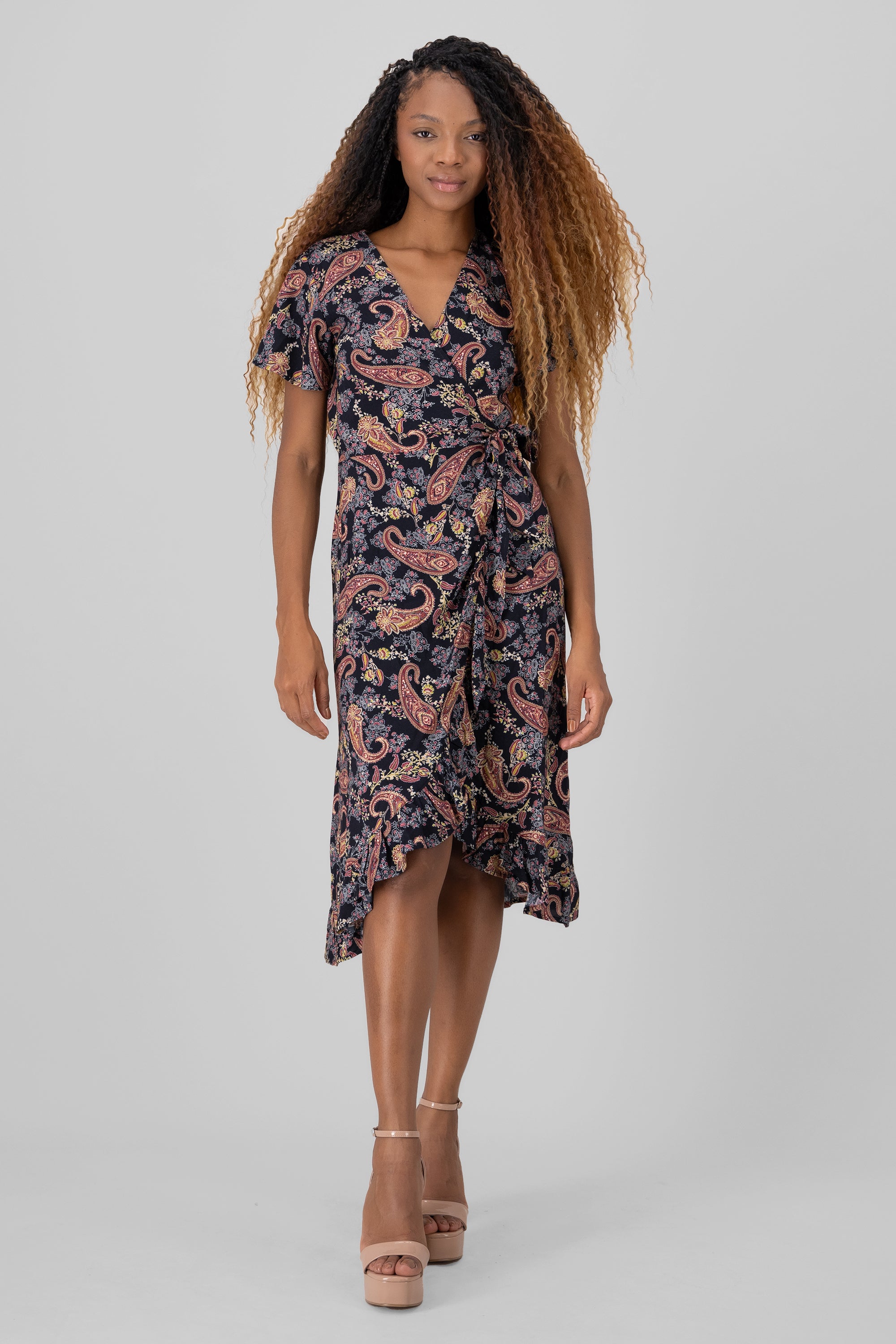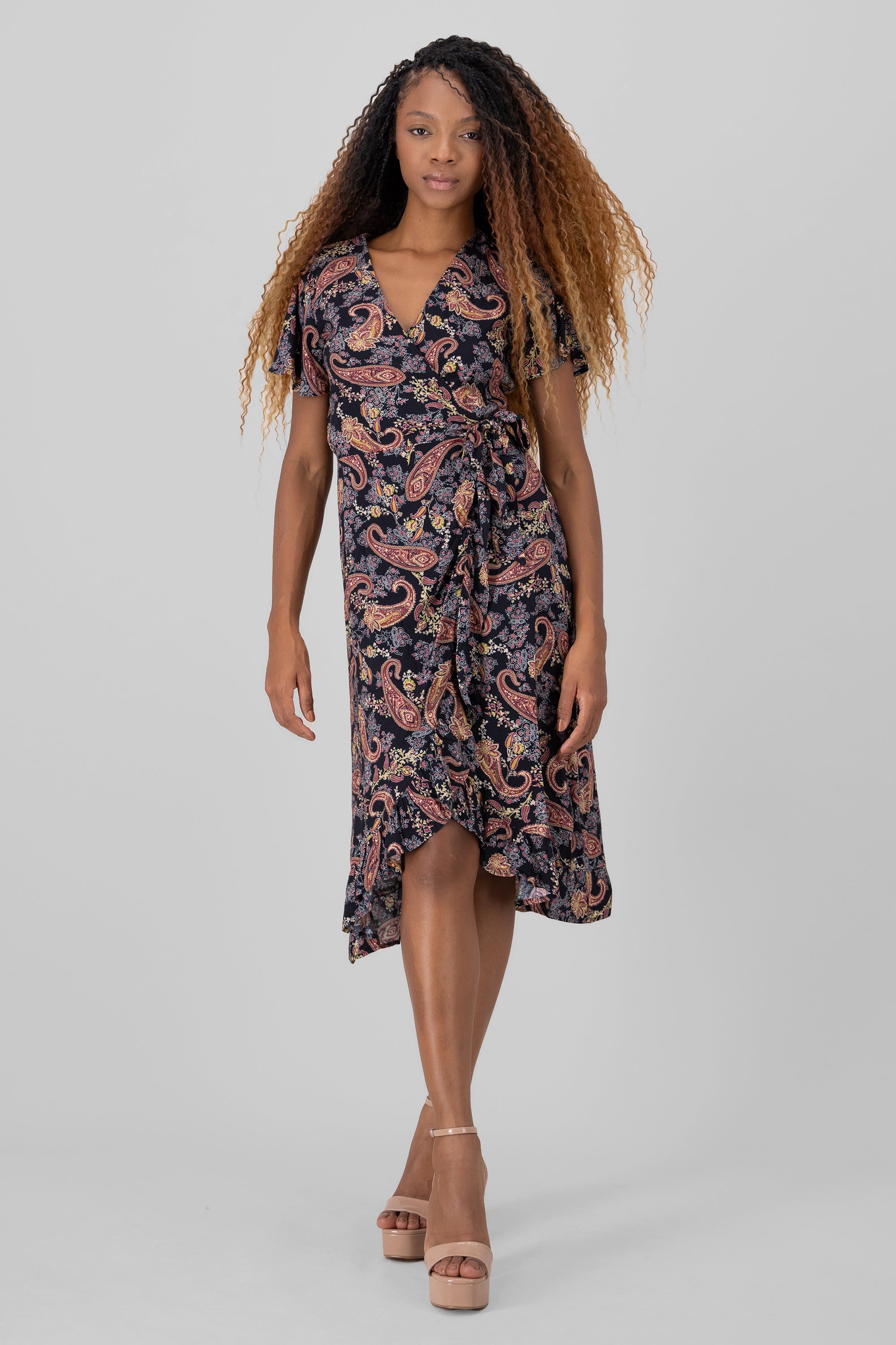Vestido cruzado manga corta paisley Hypsters