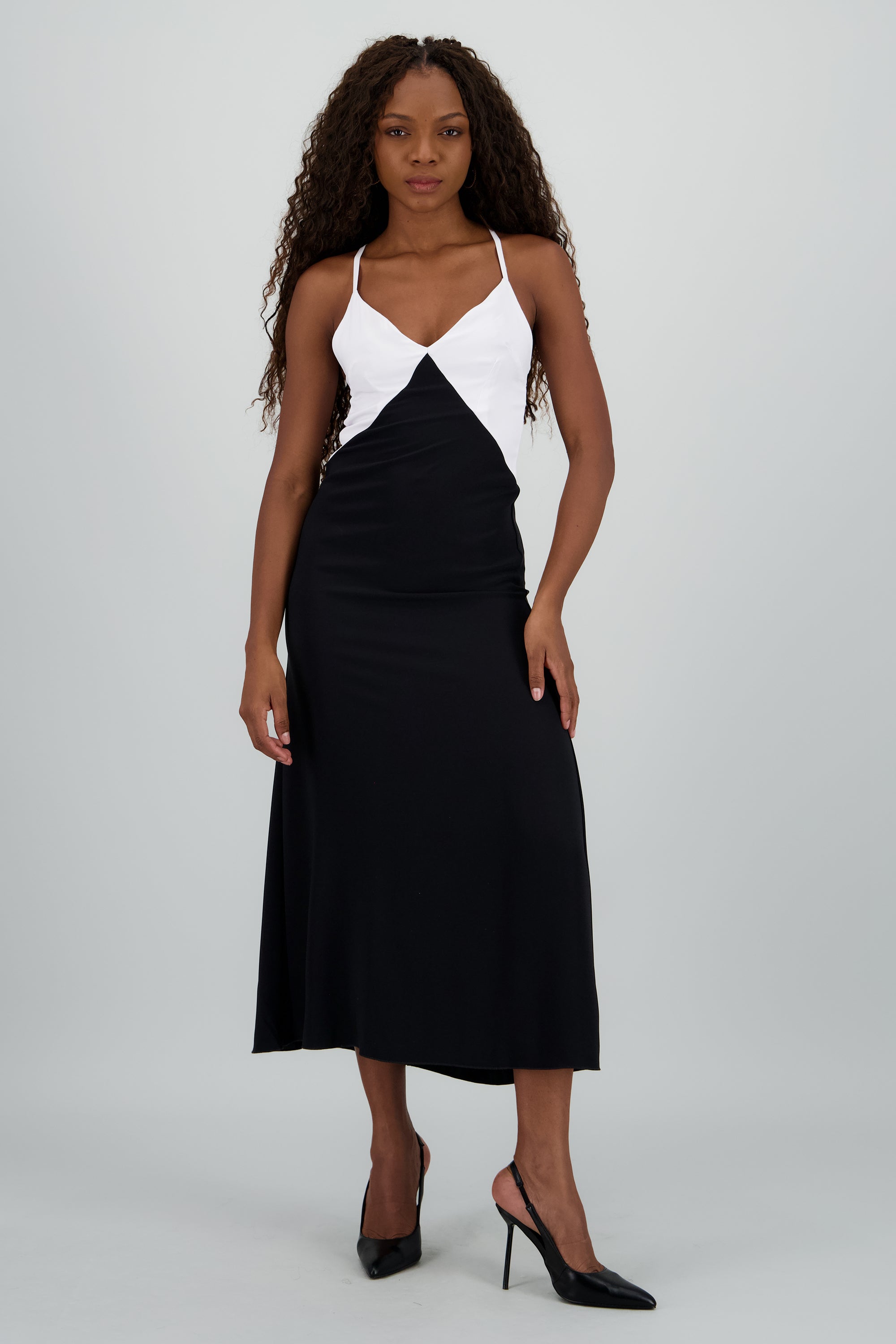 Vestido maxi bicolor espalda descubierta