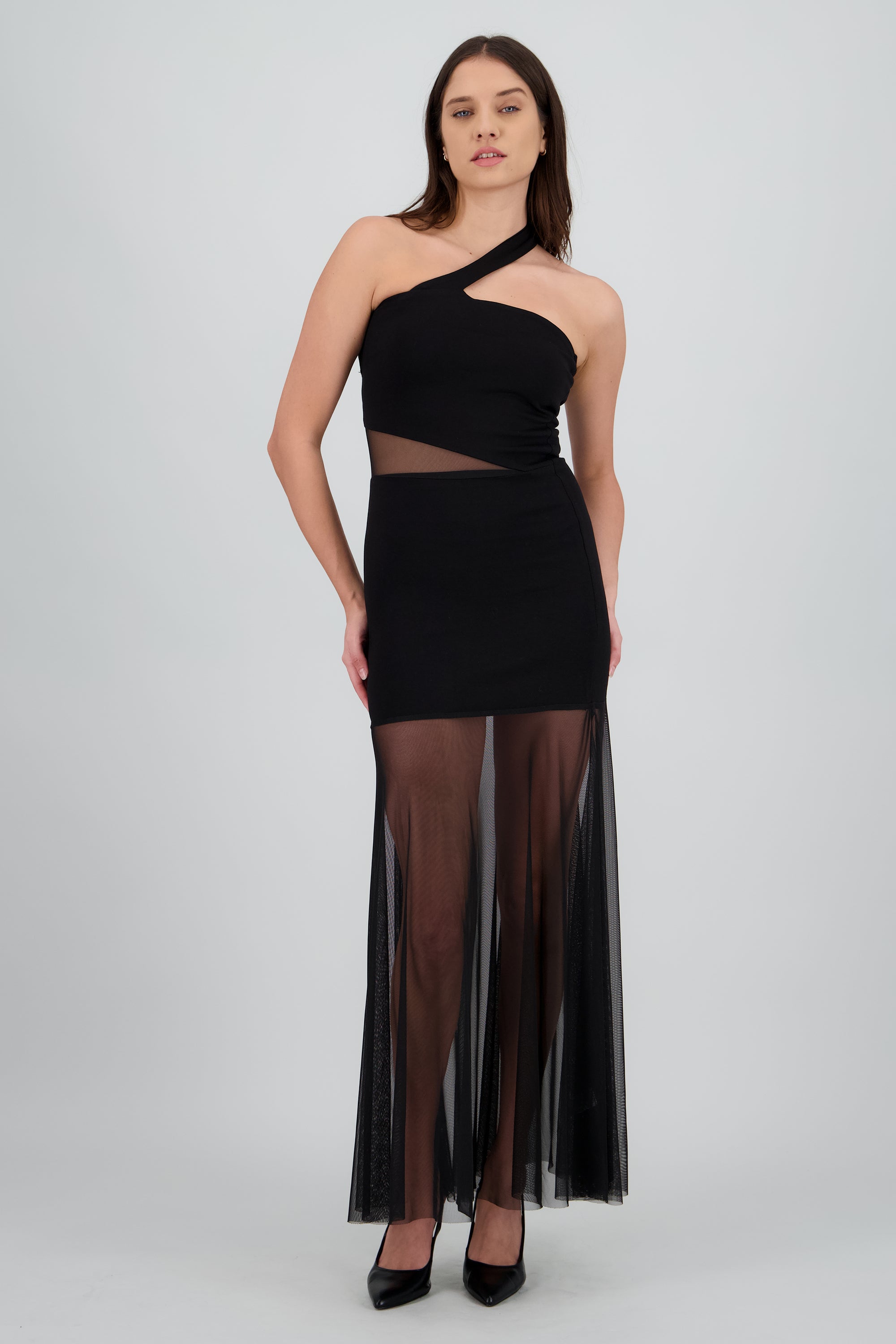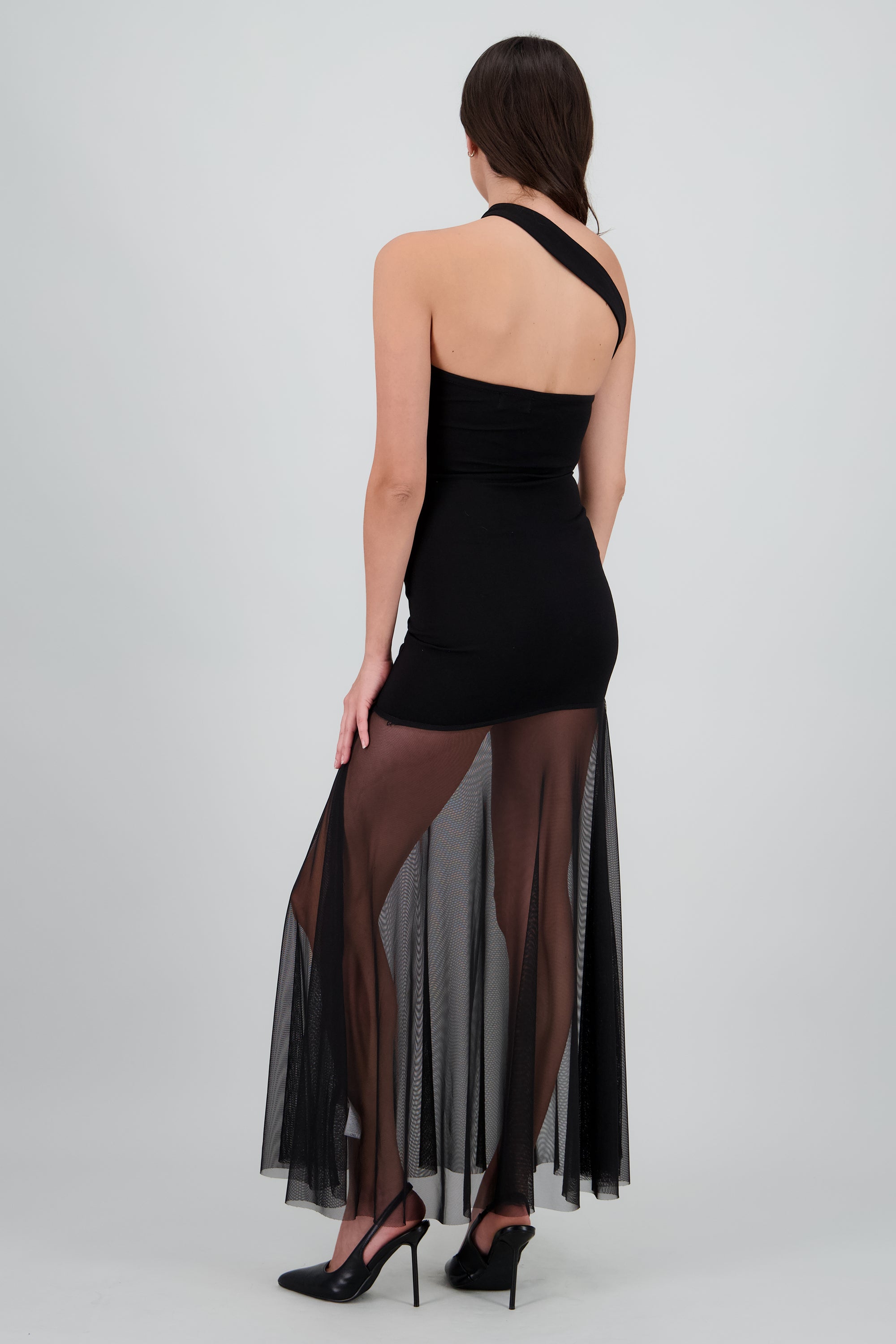 Vestido maxi cutouts mesh con cruce tirante