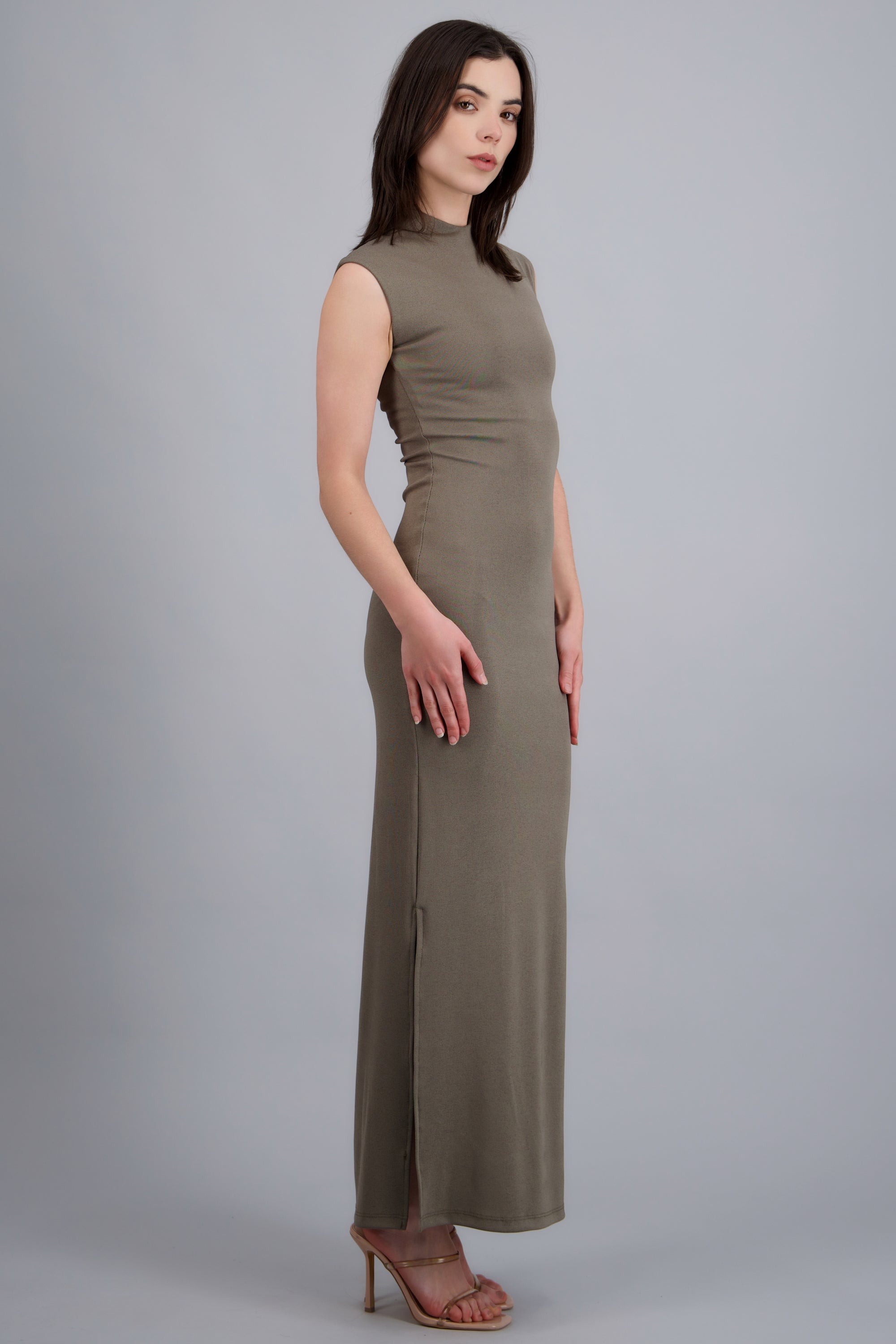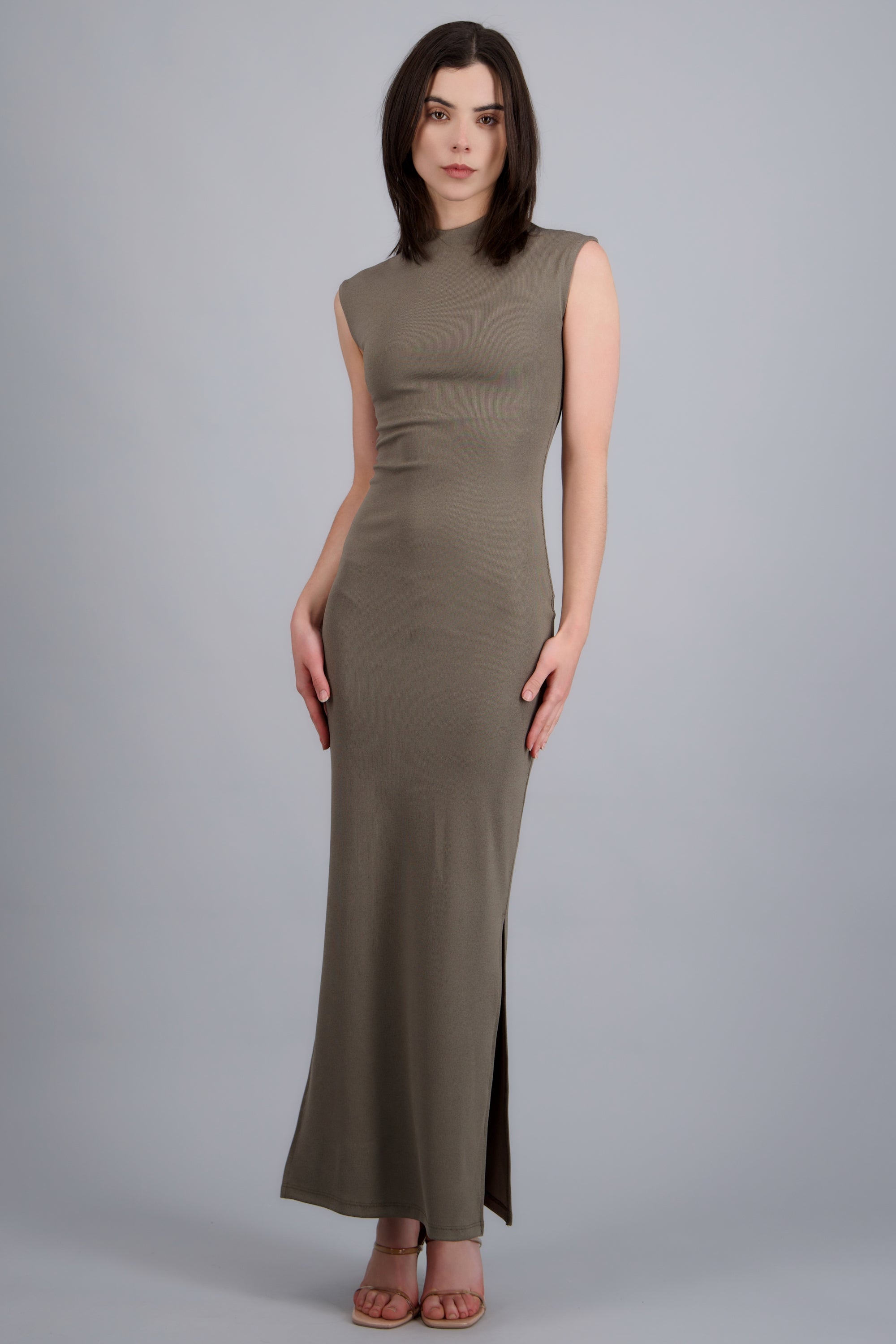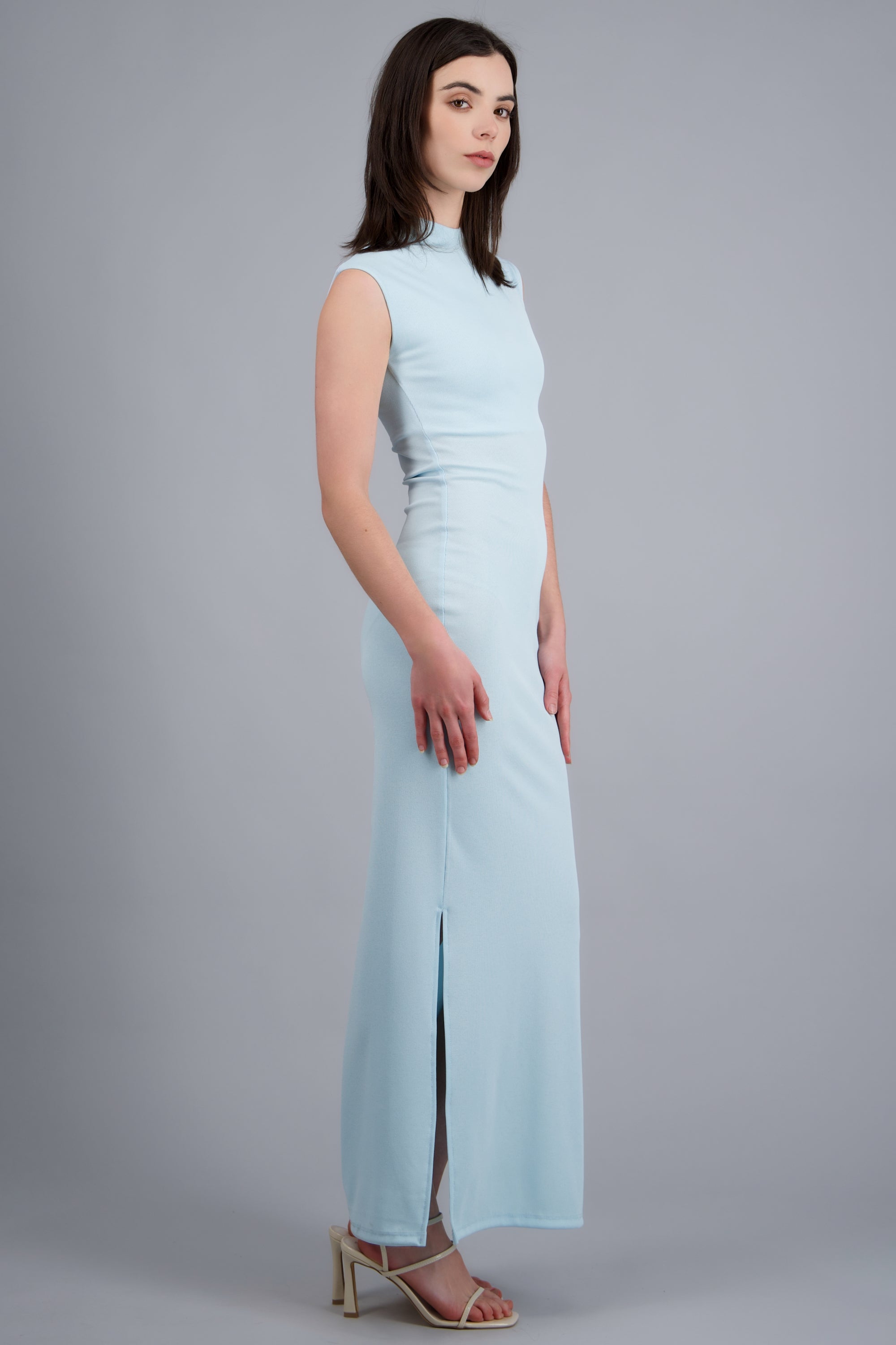 Vestido maxi rib con abertura lateral y manga corta.