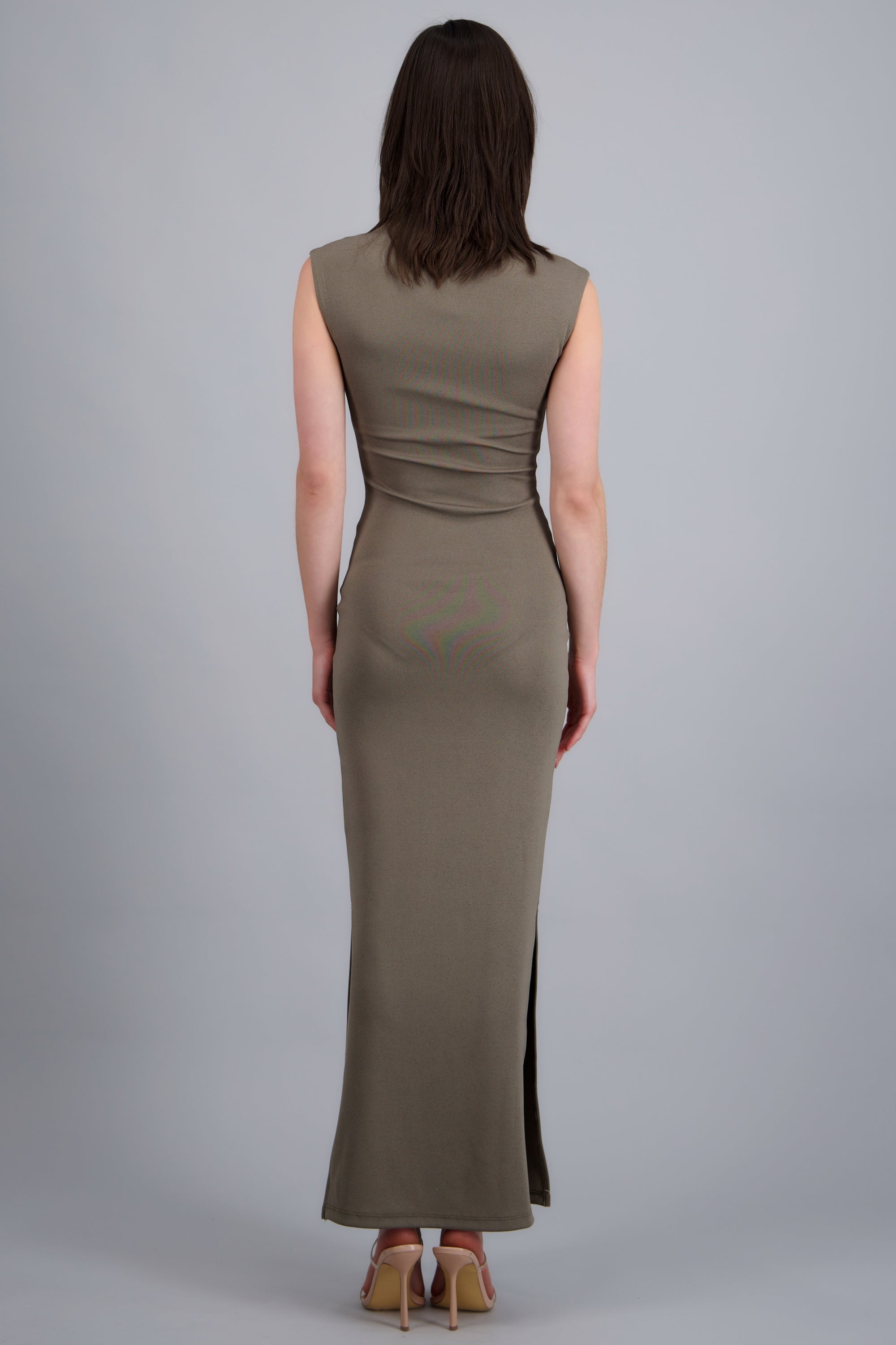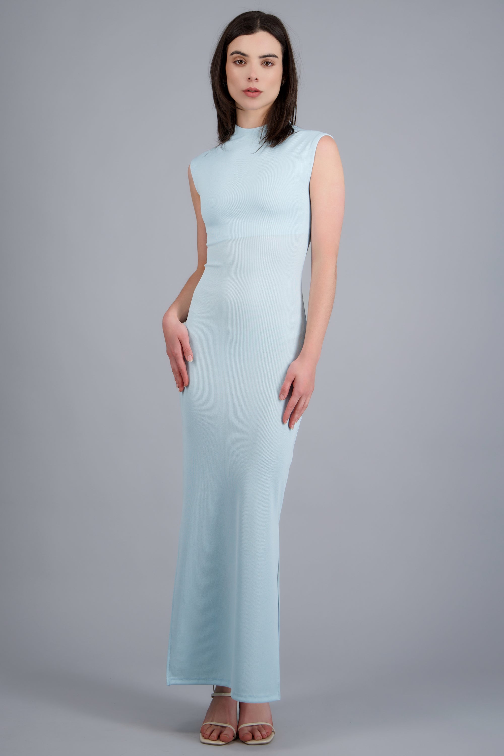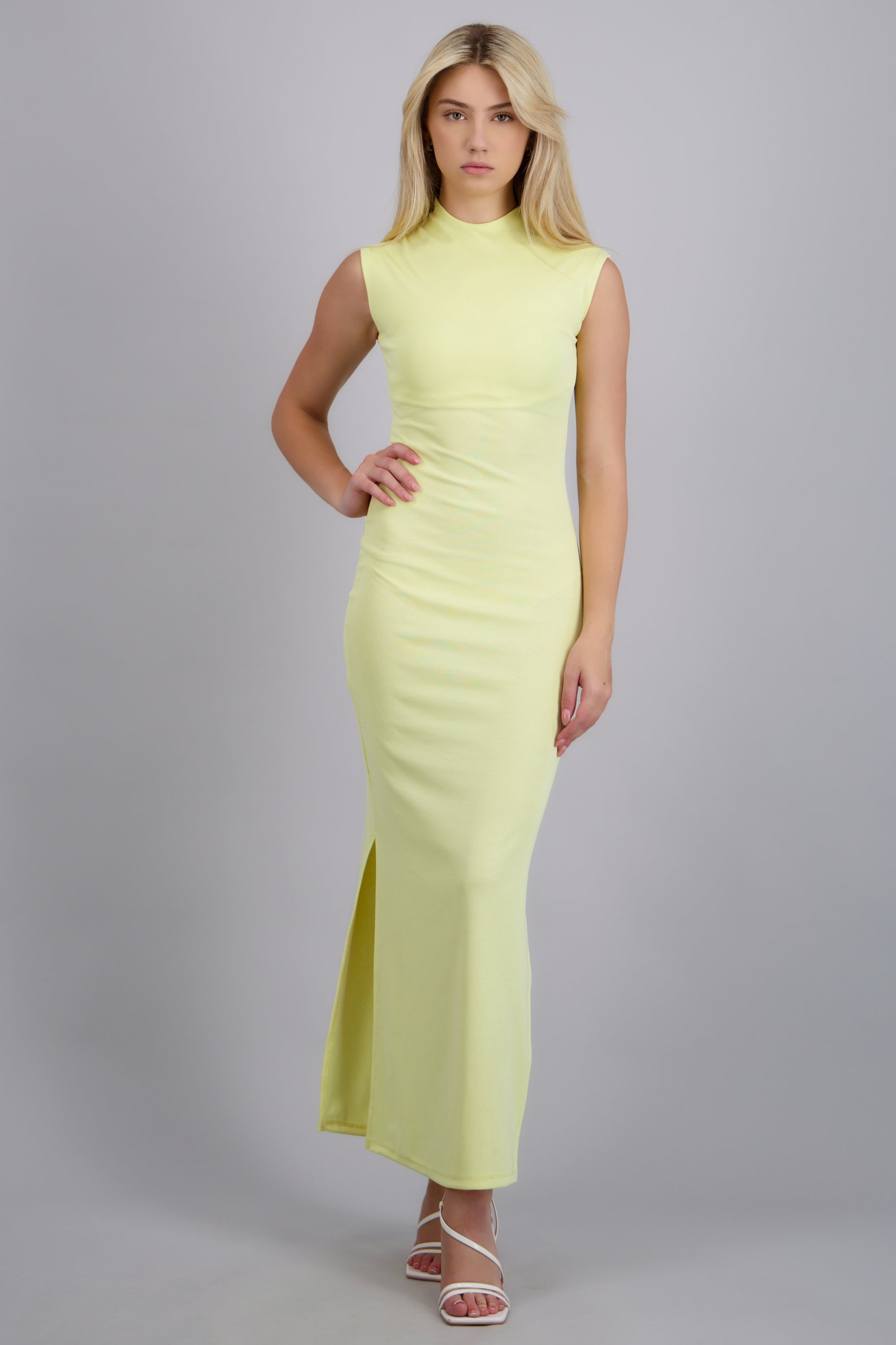 Vestido maxi rib con abertura lateral y manga corta.