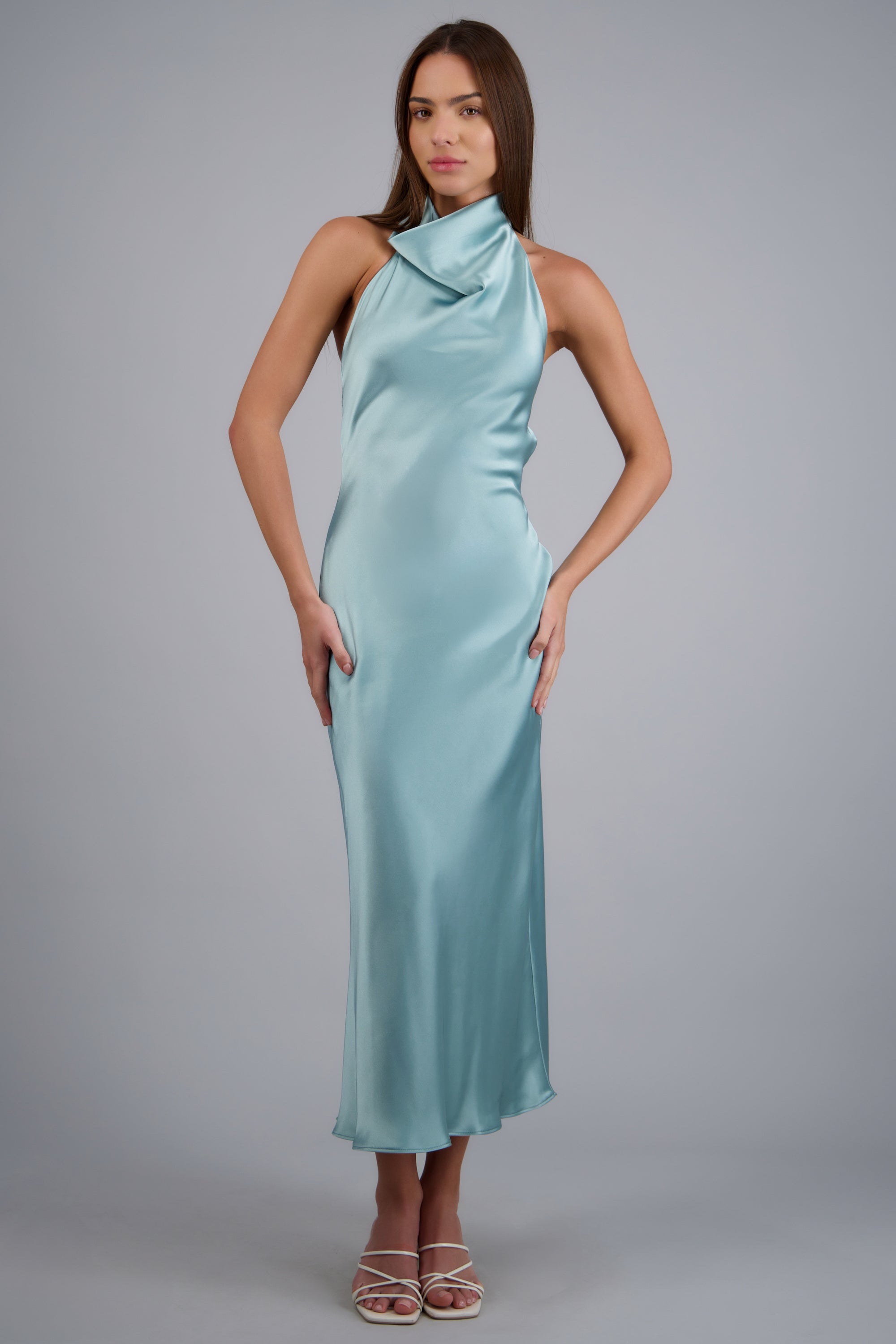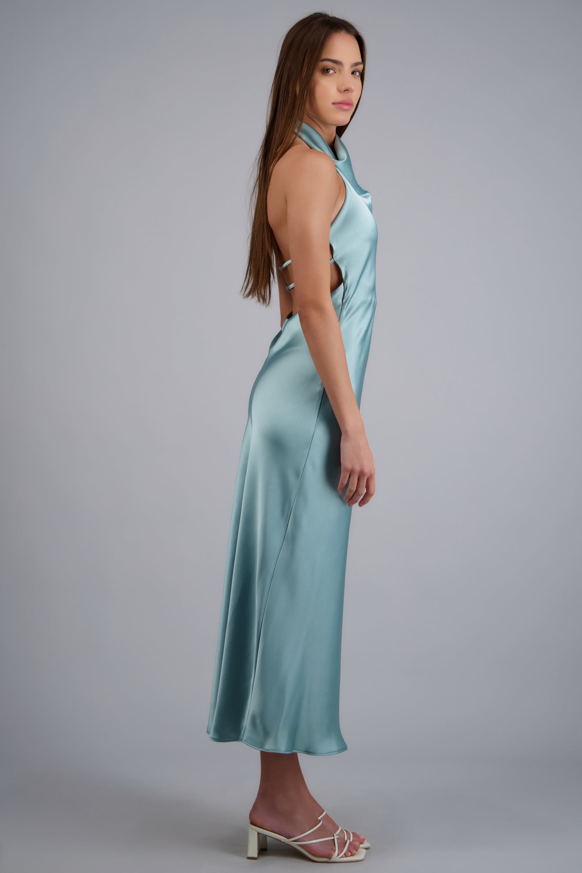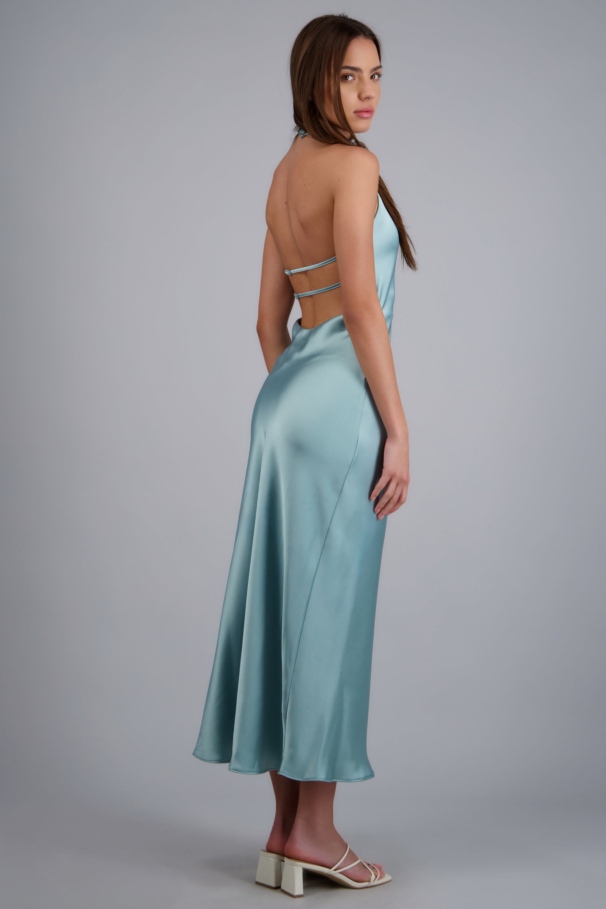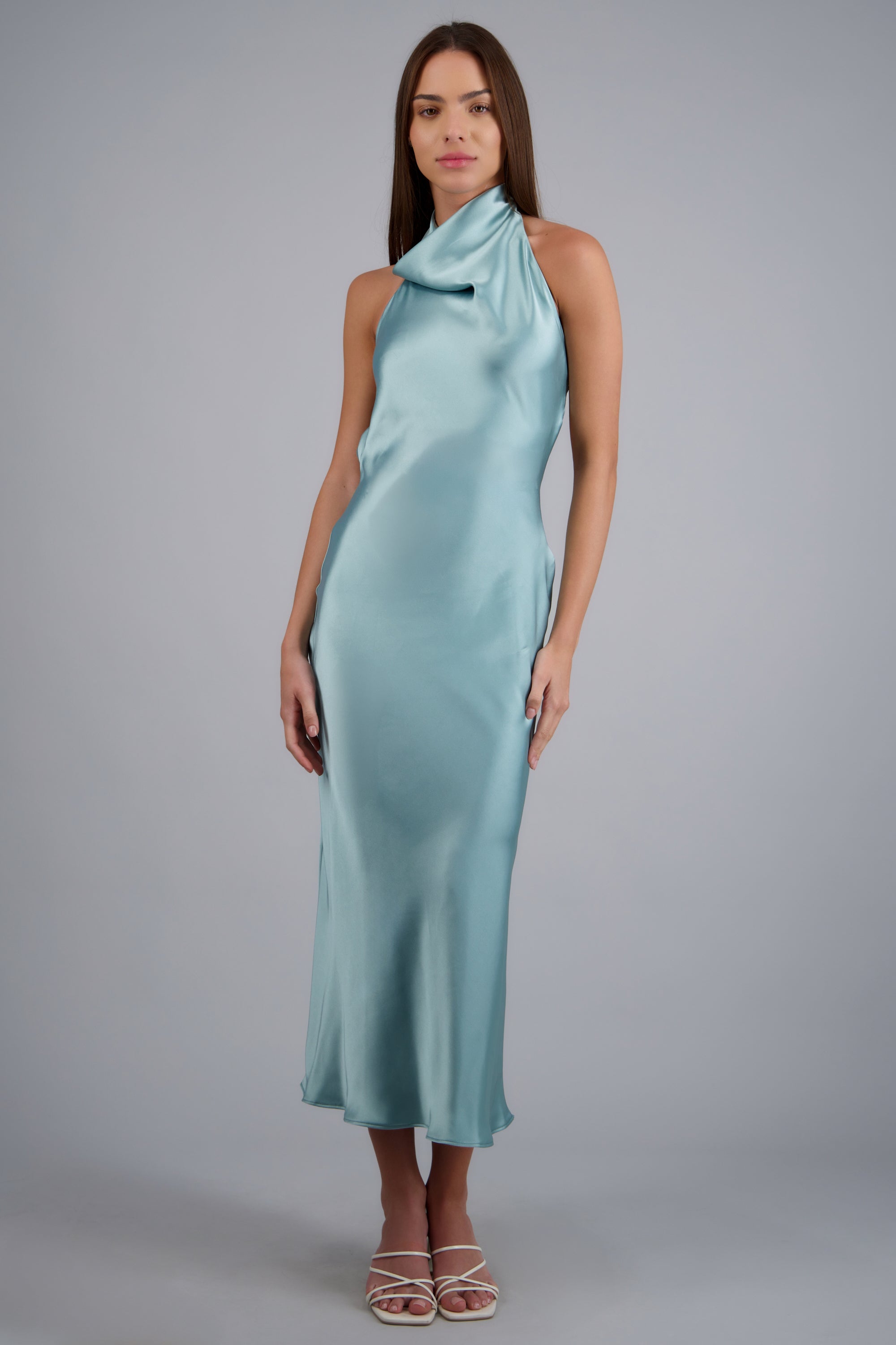 Vestido midi cuello alto espalda descubierta